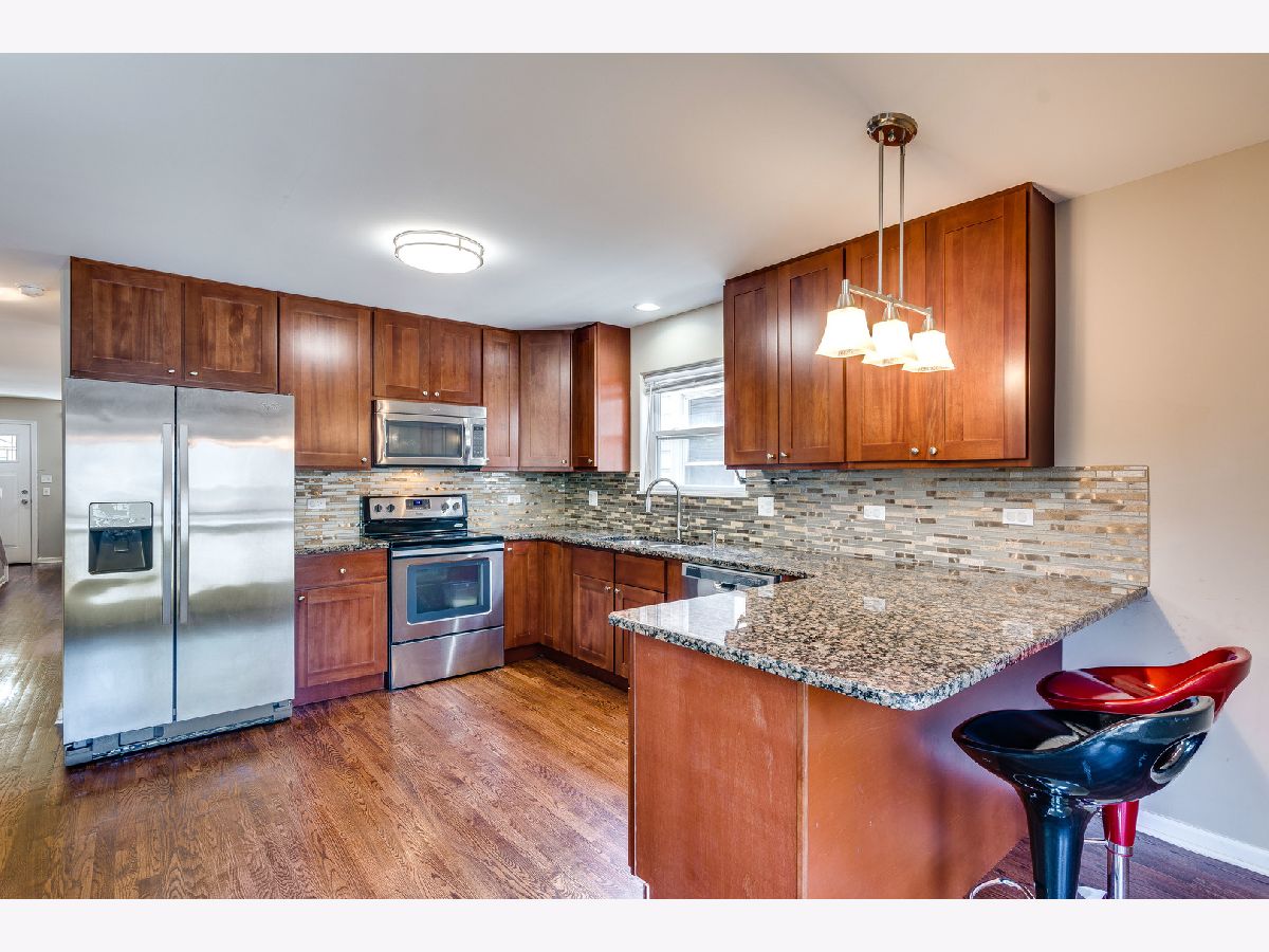 Rehabbed Two Story Newer Construction! Fantastic open layout on the main level and full floor hardwood flooring coverage. Modernized colors of flooring and paint bring the entrance appearance to a new level. Huge kitchen in the back of the main level with breakfast bar and sitting table space, 42 inch cherry oak cabinets, stainless steel appliances, and granite countertops. The kitchen also opens up to deck area and privacy fenced in yard giving you the perfect exterior set up for the warm seasons. Second level includes vaulted ceilings in two of the three bedrooms giving you a luxury feel like no other. Hall and master bathroom include customized vanities with granite tops as well. Master bedroom comes with giant jacuzzi and customized closet space perfect for all of your clothing. Finished basement with 9 ft ceilings, new carpet, 3rd full bathroom and 4th bedroom. You will love this home!