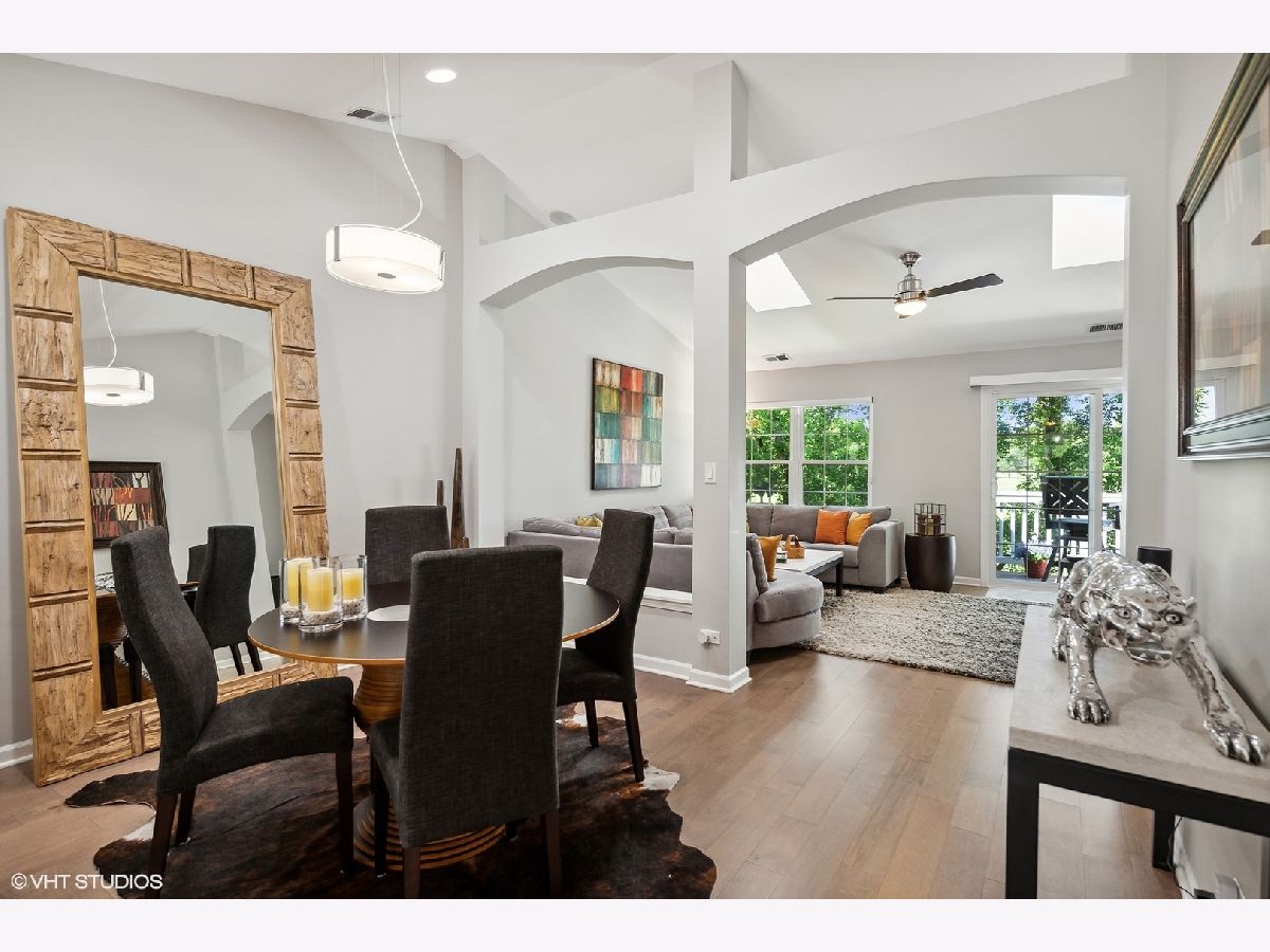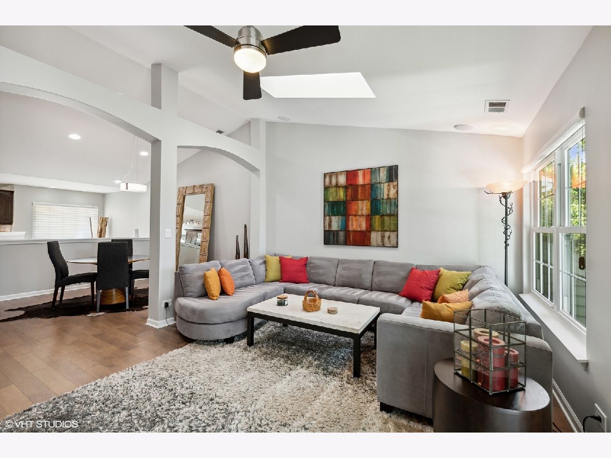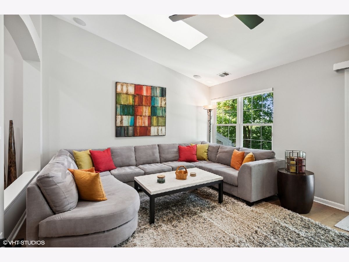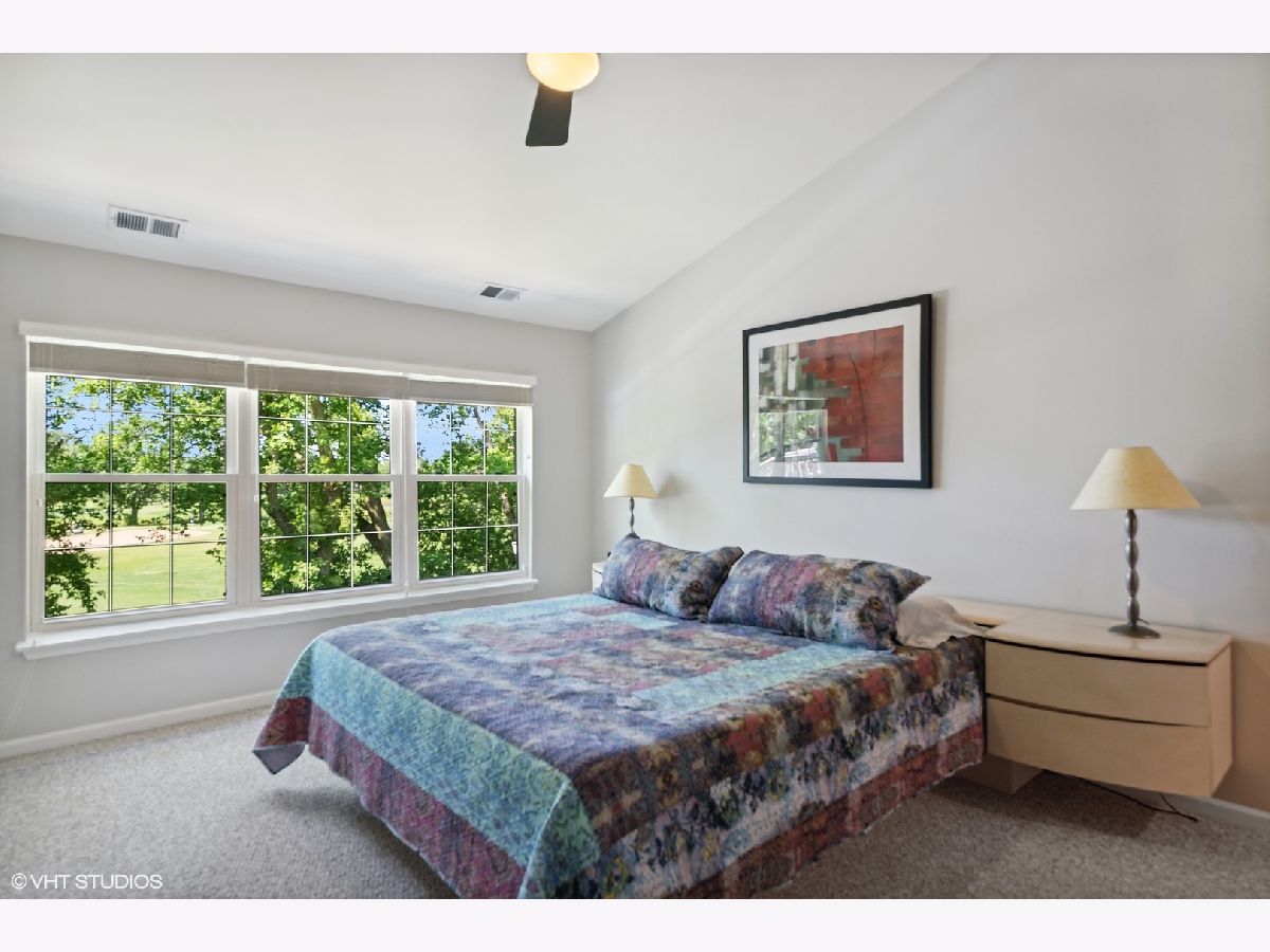 Stunningly immaculate second floor ranch townhome with vaulted ceilings and views of the Buffalo Grove Golf Club! The southern exposed Living and Dining Rooms are perfect examples of open concept modern living along with hardwood flooring, skylights, gas fireplace with porcelain surround, recessed lighting, arched doorways, built-ins and sliders to amazing balcony overlooking the golf course. Masterfully executed Kitchen with warm stained cabinetry, granite counters, stainless steel Samsung appliances, peninsula seating for two, pantry and Breakfast nook. Luxurious Primary Bedroom with neutral carpeting, volume ceilings, customized walk-in closet and sublime en suite with porcelain tiled flooring and wall surround, dual vanity sinks with quartz counters, two medicine cabinets, Kohler commode, stand along Jacuzzi tub and shower with rainfall shower head and two additional sprays. Secondary bedroom with ample closet space, ceiling light fan fixture and shares the Hall Bath featuring marble tiled flooring, tub/shower with glass doors and vanity with quartz countertop. Other highlights include: Office with hardwood flooring and French doors, Linen closet, Laundry Room with Samsung washer/dryer, built-in drying rack and cabinetry, Carrier HVAC with humidifier, two car attached garage with storage space, across the street from Willow Stream Park with pool and best of all - located in the highly rated Stevenson High School district. Just minutes to shopping, entertainment and dining!