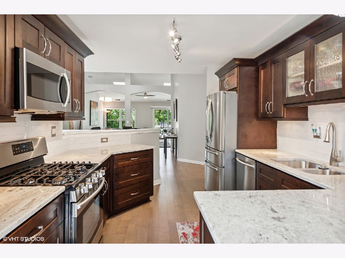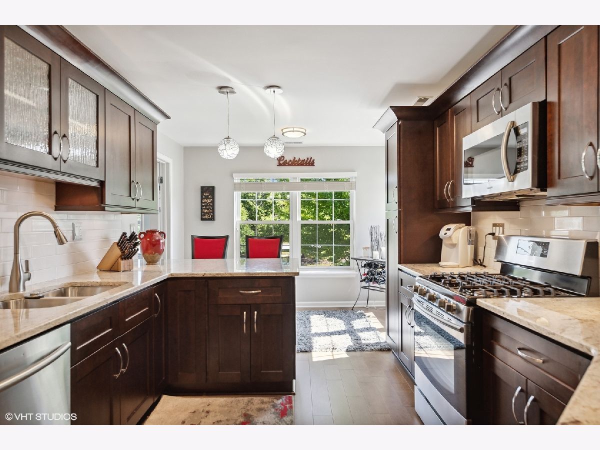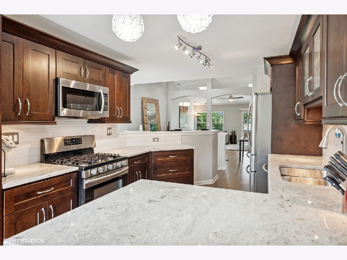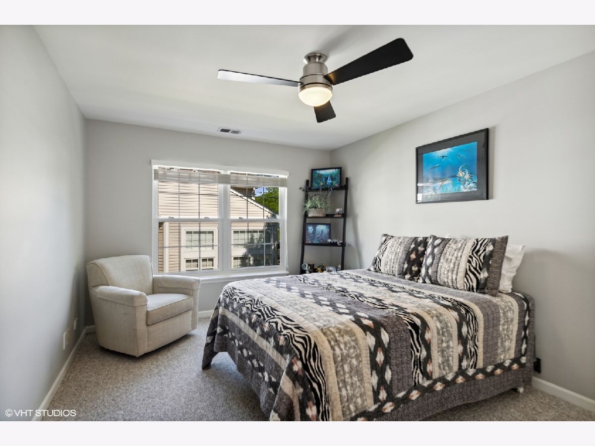 Stunningly immaculate second floor ranch townhome with vaulted ceilings and views of the Buffalo Grove Golf Club! The southern exposed Living and Dining Rooms are perfect examples of open concept modern living along with hardwood flooring, skylights, gas fireplace with porcelain surround, recessed lighting, arched doorways, built-ins and sliders to amazing balcony overlooking the golf course. Masterfully executed Kitchen with warm stained cabinetry, granite counters, stainless steel Samsung appliances, peninsula seating for two, pantry and Breakfast nook. Luxurious Primary Bedroom with neutral carpeting, volume ceilings, customized walk-in closet and sublime en suite with porcelain tiled flooring and wall surround, dual vanity sinks with quartz counters, two medicine cabinets, Kohler commode, stand along Jacuzzi tub and shower with rainfall shower head and two additional sprays. Secondary bedroom with ample closet space, ceiling light fan fixture and shares the Hall Bath featuring marble tiled flooring, tub/shower with glass doors and vanity with quartz countertop. Other highlights include: Office with hardwood flooring and French doors, Linen closet, Laundry Room with Samsung washer/dryer, built-in drying rack and cabinetry, Carrier HVAC with humidifier, two car attached garage with storage space, across the street from Willow Stream Park with pool and best of all - located in the highly rated Stevenson High School district. Just minutes to shopping, entertainment and dining!