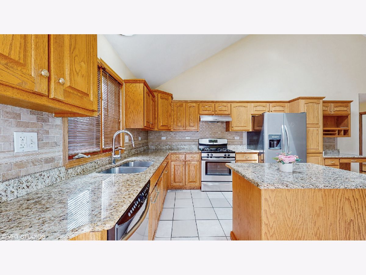 Take a look at this stunning all-brick split-level home, located on a peaceful residential street - ideal for a growing family! With four spacious bedrooms and a fully finished basement that includes a dedicated office, this home is packed with features. Gorgeous hardwood floors flow throughout the entire house, while the kitchen and basement are outfitted with stylish ceramic tile. The large kitchen boasts granite countertops and a built-in desk, plus it opens up to a huge cement patio through sliding doors. Additional highlights include soaring cathedral ceilings, a sprinkler system, and much more **New HVAC & Sum pum,