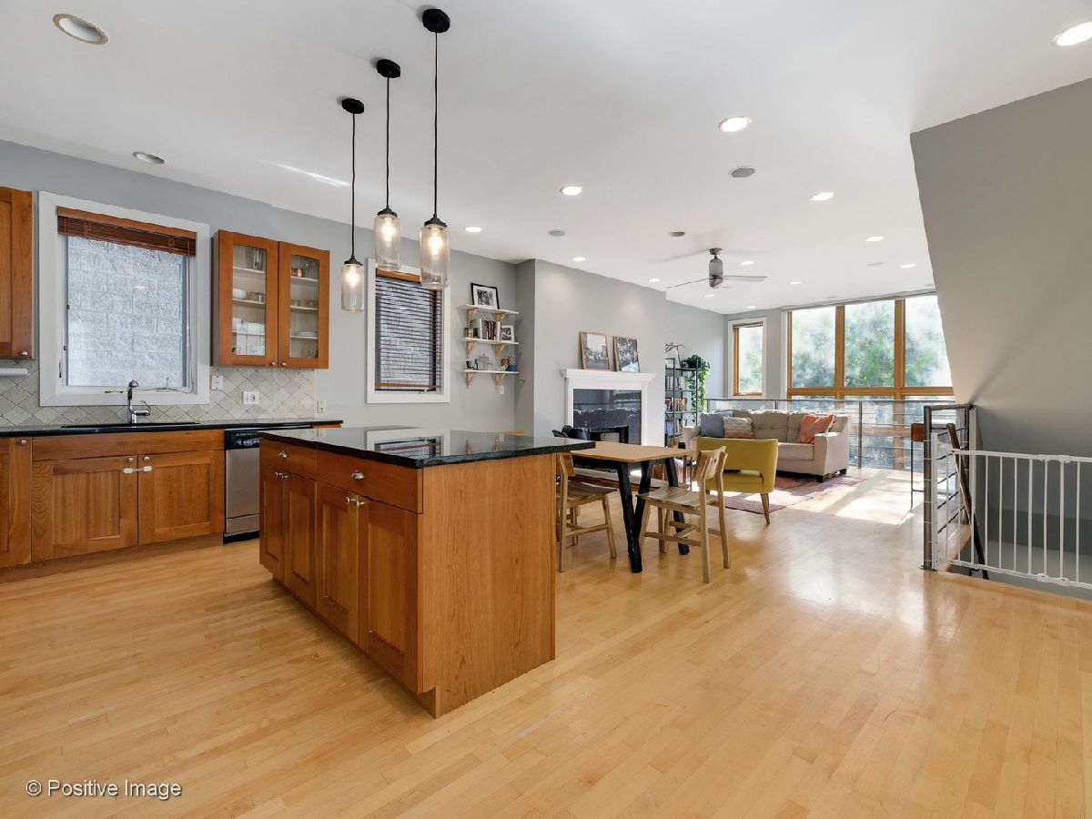 Be close to the action but away from the noise. Tucked on a quiet tree-lined street, this airy 3-bedroom, 2.5-bathroom duplex is just a short walk from parks, playgrounds, and the heart of Wicker Park. Natural light pours in from the giant west-facing windows and into the open living area with a wood burning fireplace. The spacious kitchen has a large granite island and stainless steel appliances. The giant primary bedroom features hardwood floors and a bathroom with marble floors, a glass shower with body sprays, and a separate whirlpool tub. The lower level has radiant heated floors, a family room for entertaining and two large bedrooms that can easily be repurposed as an office or workout room. Grillmasters and sunbathers take note: The condo has two outdoor spaces and a courtyard so you can enjoy the fresh air. If you like new things, you'll be happy to know the condo has new stairs (2020), new water heater (2015), new roof (2014), and new sump pump (2014). The entire unit has been freshly painted and the building has recently been sealed. A commuter's dream, you can pull your car from the garage and get downtown in less than 10 minutes or you can walk 8 minutes to the Division Blue Line stop.