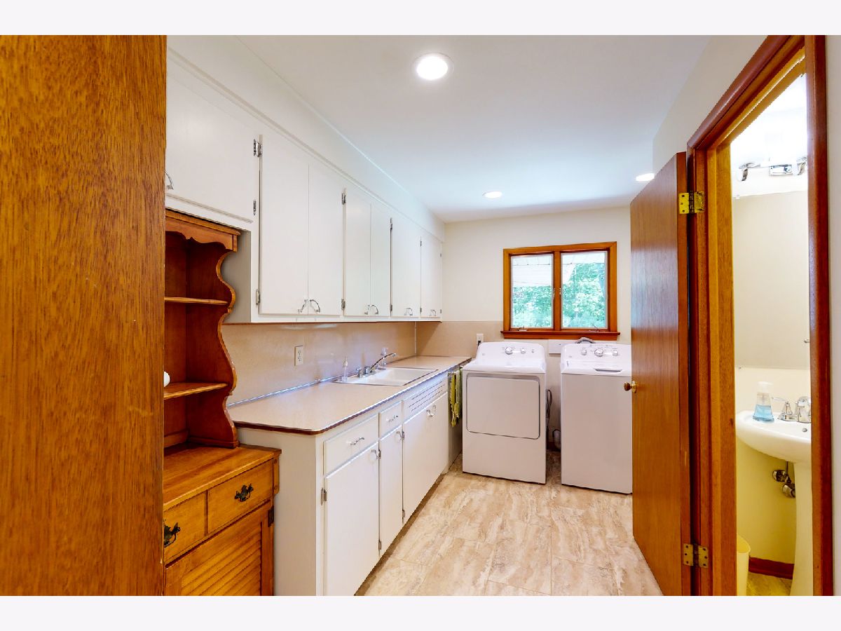 THIS ONE-OF-A-KIND "MODERN MID-CENTURY GEM" IS NESTLED ON A .7 ACRE PARK-LIKE SETTING WITHIN A CUL-DE-SAC LOCATION... A RARE FIND INDEED! Mid-century modern lovers, do not lose this opportunity! All brick sprawling 2,216 sq. ft. ranch was updated in 2018 with the purpose of retaining and honoring an era gone by. All new flooring throughout including solid oak, appealing light fixtures and a light interior color scheme await you! Newly poured walk way and brick paver front patio invite you into this immaculate and stunning Sycamore home. The Living Room welcomes you with a beautifully cased gas fireplace embraced by custom built-in bookcases, while taking in the view of the well-groomed and professionally landscaped front lawn through 4 glass windows. Elegant Dining Room has a beautiful chrome chandelier; perfect for special gatherings. The white sun-filled 3-season back porch with louvre glass windows, slate flooring and white ceiling-light fan is a favorite living space. The Kitchen showcases authentic Coppes-Napanee cabinetry and Westinghouse built-in electric oven. Pretty green ceramic subway tile back-splash - commissioned and fired by out-of-state Artisans specifically for this home. Quartz counter-tops, all new hardware, lighting, and furnishings were hand-selected with care to truly reflect the mid-century modern era. Original dovetail and pull out drawers, enclosed bread box, display shelving, stainless steel Samsung appliances and breakfast nook with 3 windows and viewing window complete the heart of this home! Cast iron double sink, original counter-top/back-slash, numerous cabinets, washer, dryer and walk-in Mud Room with a pocket door, create a convenient and spacious Laundry Suite! New 1/2 bath powder room displays a pedestal sink. 5 semi-flush classy hallway light fixtures, additional oak flooring and built-in linen drawers and cabinet add style and convenience for your everyday living. The Primary Bedroom features side-by-side closets with upper storage. There is a future provision to provide direct access from the Primary Bedroom into the beautiful newly remodeled full bath, hosting 2 sinks, glass shower doors, flared faucet fixtures and eye-catching light bars. Another updated full bath offers a white vanity with soft close drawers and gorgeous chrome fixtures... more touches of sparkle and class! Basement comes equipped with a 96.1 Goodman energy efficient furnace, 50-gallon hot water heater, 200 amp updated electrical service, epoxied floor, water softener, storage room and a bonus brick wood burn fireplace. Enjoy the backyard retreat with the expanded 37'x12' patio, shed with roll up door, underground water gutter system, stone landscape accents, gorgeous park-like mature trees on .7 acres, in town! New Kohler residential stand-by power generator, 2 1/2 car garage with tongue and groove wood detail and glass block windows and circular entry stairs make this home unique and valuable!