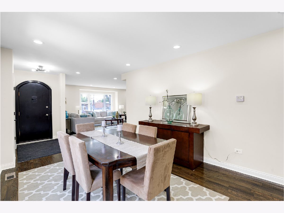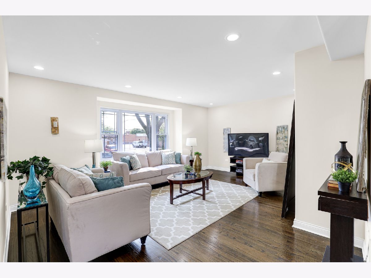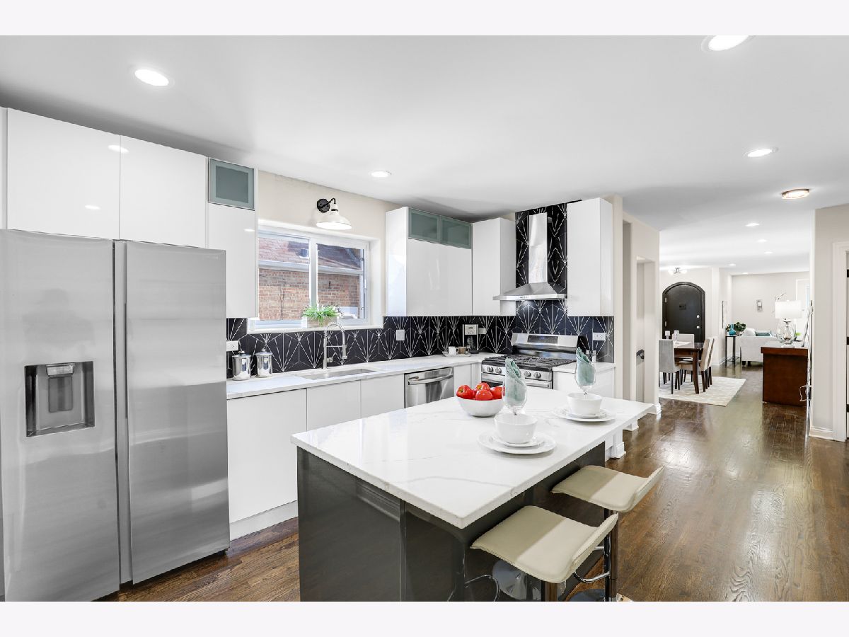 Spectacular craftsmanship and high end Millwork. Gorgeous open floor plan, rounded drywall corners, oakwood floors, new windows, roof, electric, plumbing, and HVAC. City of Chicago permits and Inspections approved. Formal Living Room/Dining Room space, gourmet chef's kitchen with quartz counter tops, Shaker self-closing cabinets, marble tile backsplash, and custom Samsung appliances. Rear mud Room and recessed lighting throughout. Master Bedroom Suite with unique skylights, spa bath with double quartz sinks, and Vanity Area. Finished basement, Recreation Open Space with electric fireplace. New bathroom, new garage, new front and rear landscaping, and gated A/C unit. Nestled on oversized lot. Spacious rear yard. Too many features to list, you must see for yourself! A must see! Easy to show. Immediate occupancy.