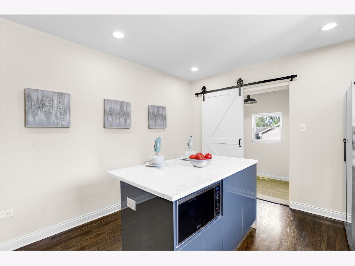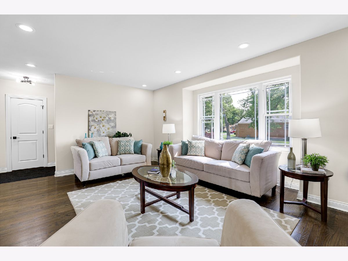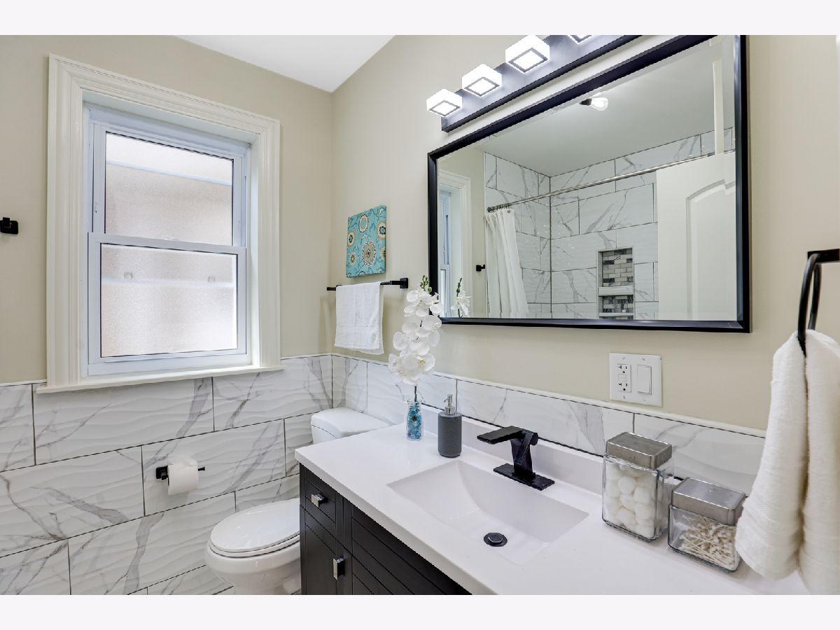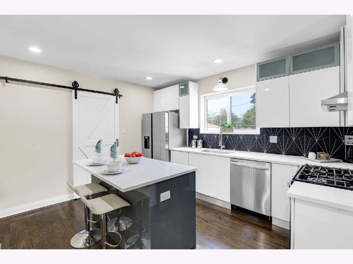 Spectacular craftsmanship and high end Millwork. Gorgeous open floor plan, rounded drywall corners, oakwood floors, new windows, roof, electric, plumbing, and HVAC. City of Chicago permits and Inspections approved. Formal Living Room/Dining Room space, gourmet chef's kitchen with quartz counter tops, Shaker self-closing cabinets, marble tile backsplash, and custom Samsung appliances. Rear mud Room and recessed lighting throughout. Master Bedroom Suite with unique skylights, spa bath with double quartz sinks, and Vanity Area. Finished basement, Recreation Open Space with electric fireplace. New bathroom, new garage, new front and rear landscaping, and gated A/C unit. Nestled on oversized lot. Spacious rear yard. Too many features to list, you must see for yourself! A must see! Easy to show. Immediate occupancy.