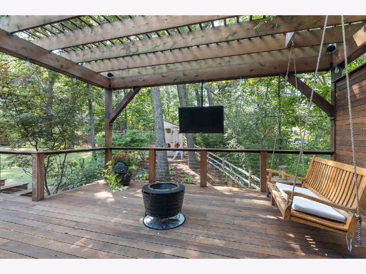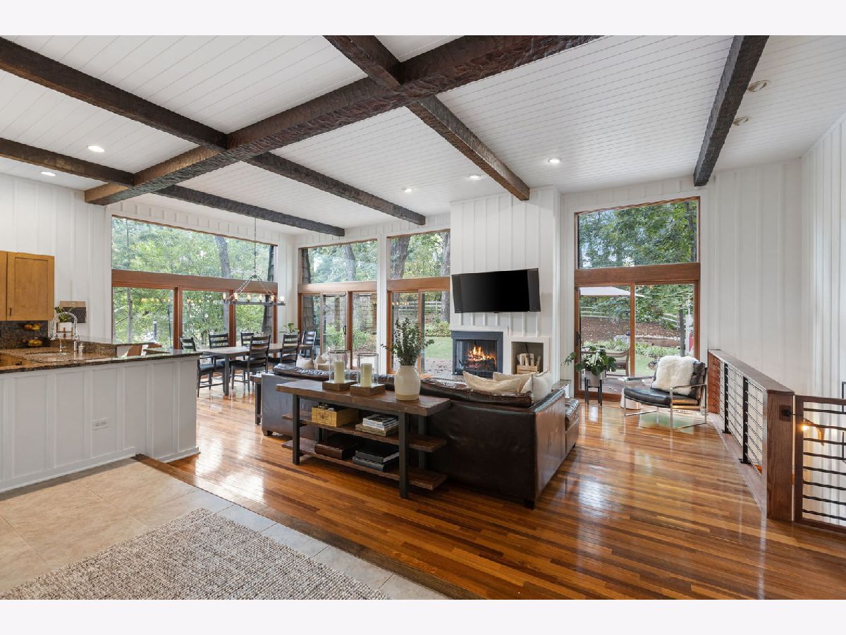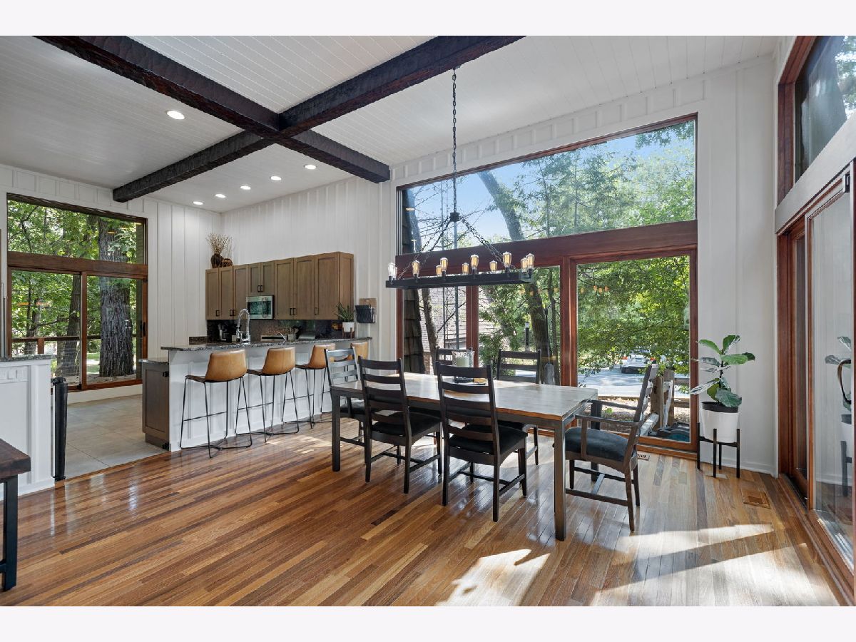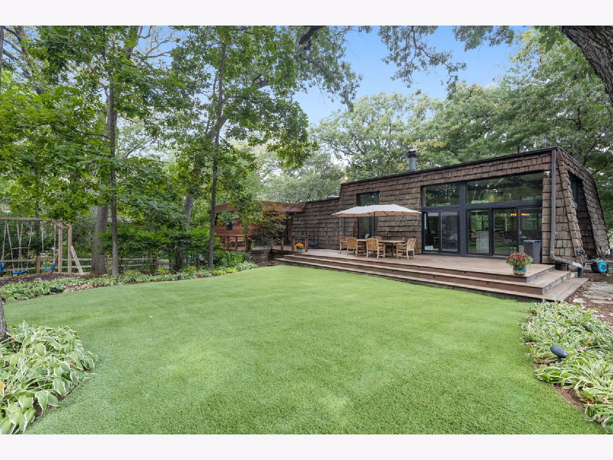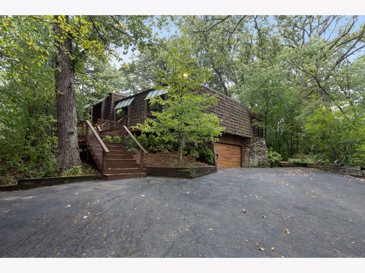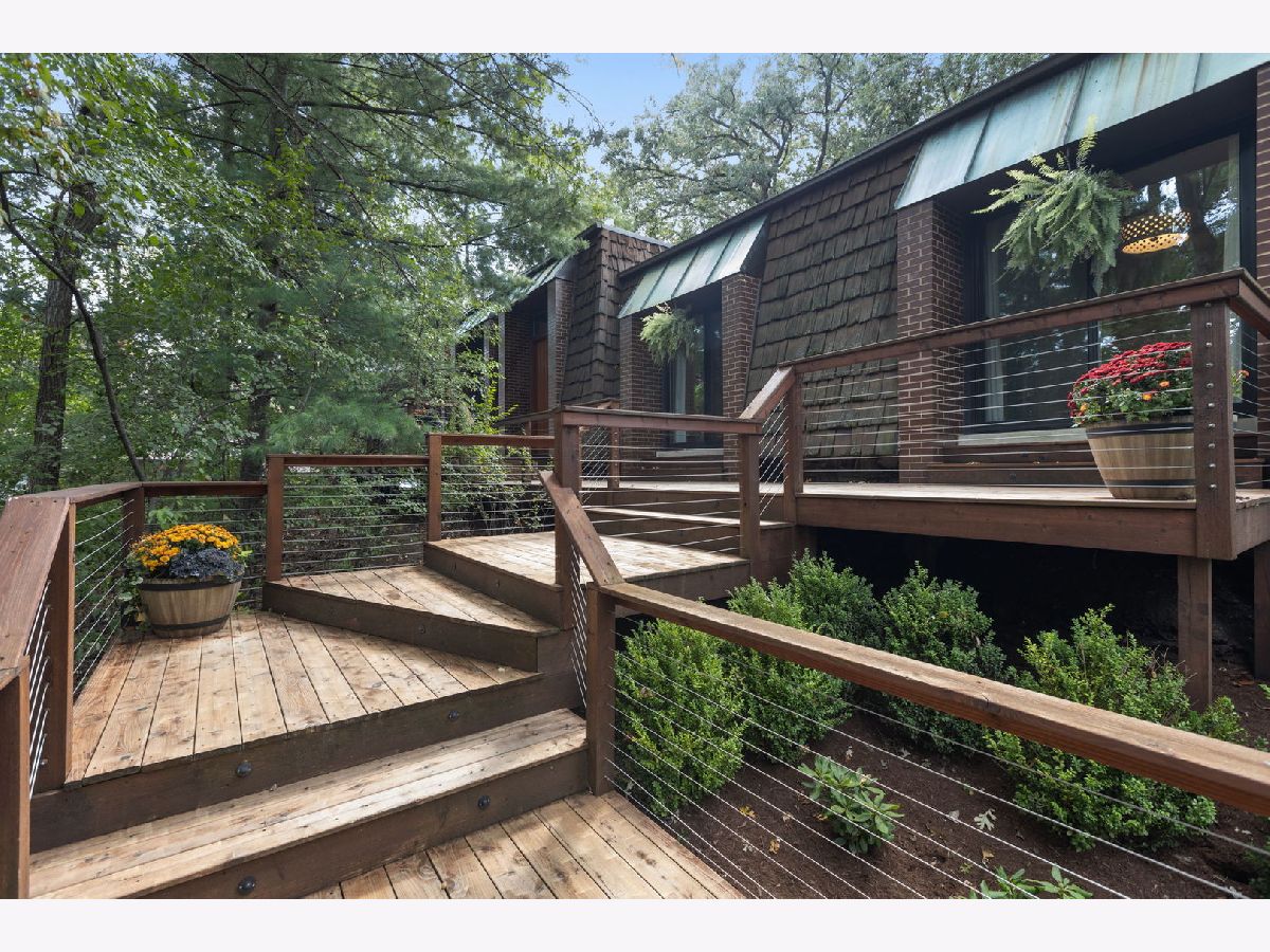 A Palos Park Stunner! Beautifully landscaped Ranch home, with floor to ceiling windows all the way around (replaced in 2019) and a wrap around deck. Enjoy viewing all that mother nature has to offer right in the comfort of your own home. It doesn't get any better than this. The home is located on quiet a Cul de sac with a three car garage. Once inside, notice the 12 foot exposed beamed ceilings through out the open main living area along with the tasteful wainscoting. The wood burning fireplace is so welcoming. The floors are covered in exotic hardwood through out and the house has been newly painted, it is move in ready for you. The kitchen has all stainless appliances, custom cabinets and gorgeous granite counter tops and an eat in bar. The hallway and main bath have beautiful skylights. The house features a total of 4 bedrooms and 3 full baths. The Master bedroom is a true sanctuary, it looks out on to new Pergola. The Walk in Closet features a custom built in vanity. The Master Bath boasts, travertine flooring, a steam shower and amazing Roburn mirrors. The 2nd bedroom has built in custom closet storage. The beautiful basement features custom built in bookcases and a wet bar. The basement is a walk out to the garage/driveway with a mudroom. This home has everything your heart desires. Come see it for your self.