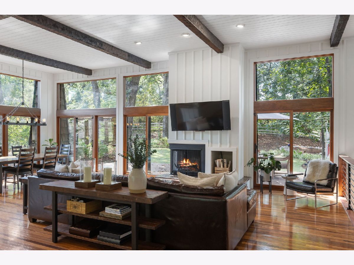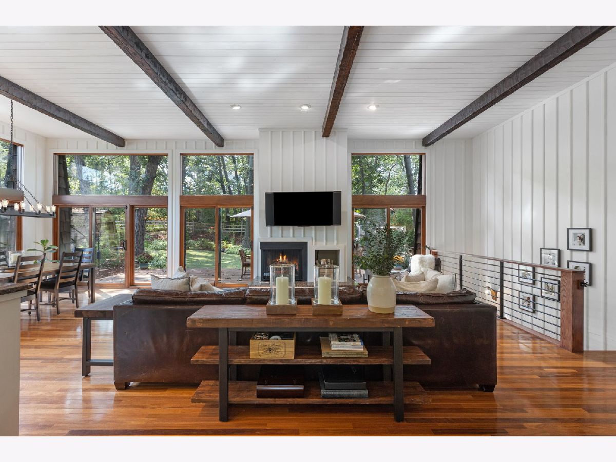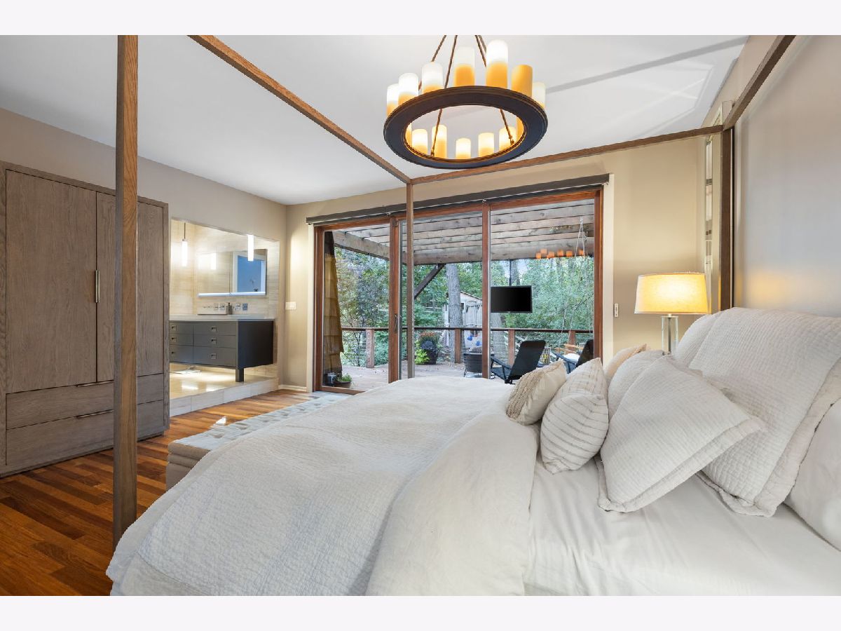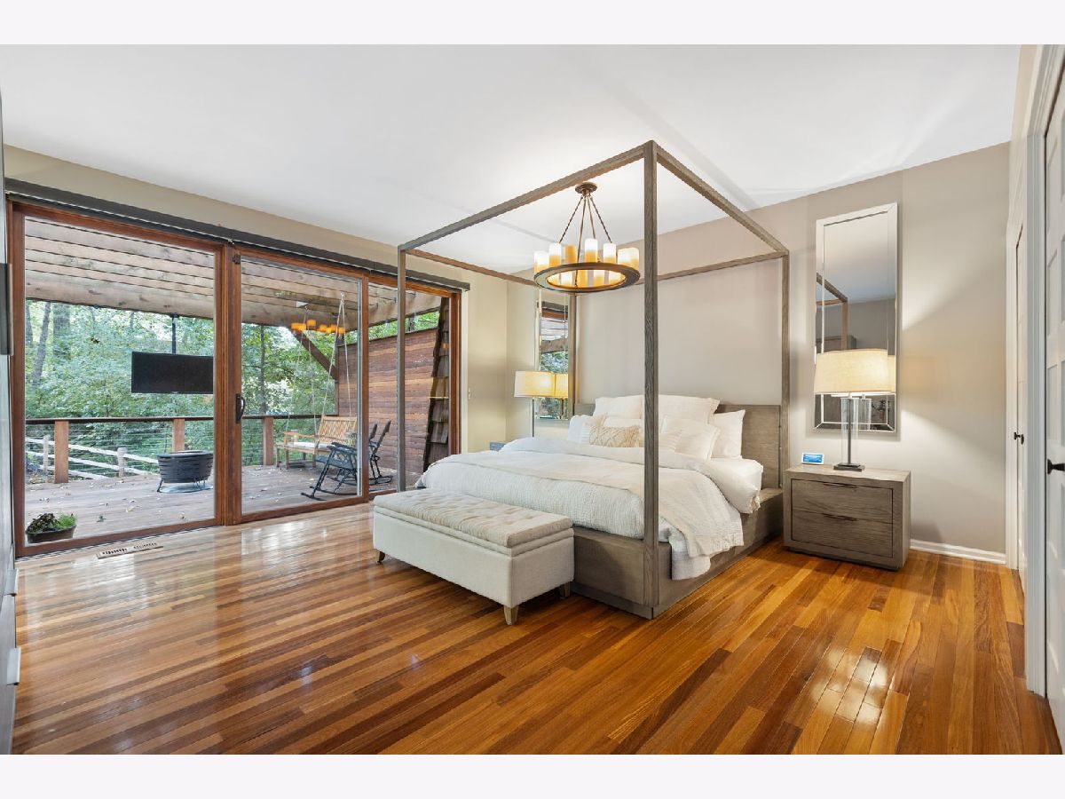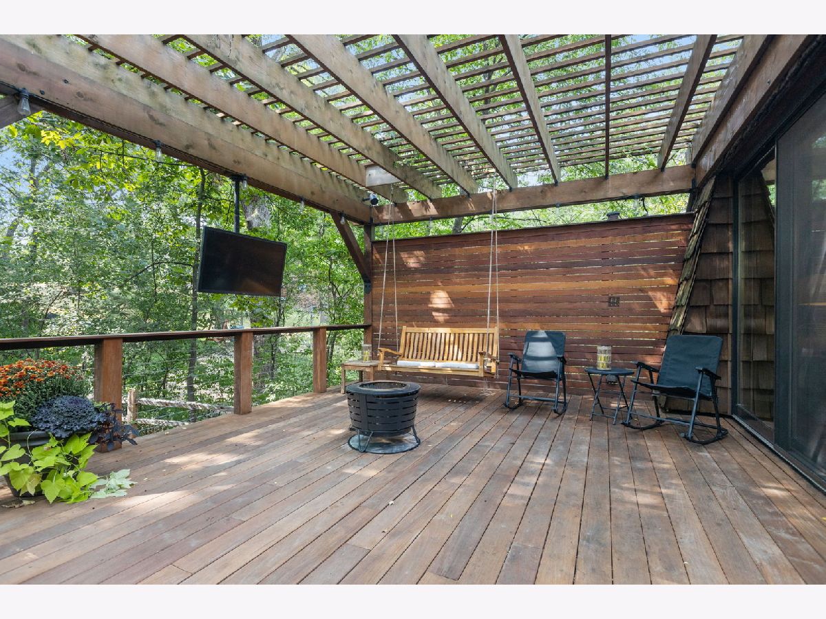 A Palos Park Stunner! Beautifully landscaped Ranch home, with floor to ceiling windows all the way around (replaced in 2019) and a wrap around deck. Enjoy viewing all that mother nature has to offer right in the comfort of your own home. It doesn't get any better than this. The home is located on quiet a Cul de sac with a three car garage. Once inside, notice the 12 foot exposed beamed ceilings through out the open main living area along with the tasteful wainscoting. The wood burning fireplace is so welcoming. The floors are covered in exotic hardwood through out and the house has been newly painted, it is move in ready for you. The kitchen has all stainless appliances, custom cabinets and gorgeous granite counter tops and an eat in bar. The hallway and main bath have beautiful skylights. The house features a total of 4 bedrooms and 3 full baths. The Master bedroom is a true sanctuary, it looks out on to new Pergola. The Walk in Closet features a custom built in vanity. The Master Bath boasts, travertine flooring, a steam shower and amazing Roburn mirrors. The 2nd bedroom has built in custom closet storage. The beautiful basement features custom built in bookcases and a wet bar. The basement is a walk out to the garage/driveway with a mudroom. This home has everything your heart desires. Come see it for your self.