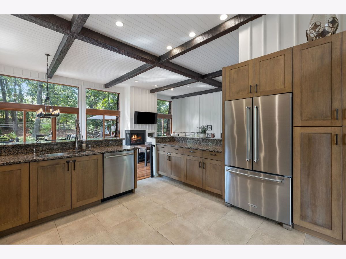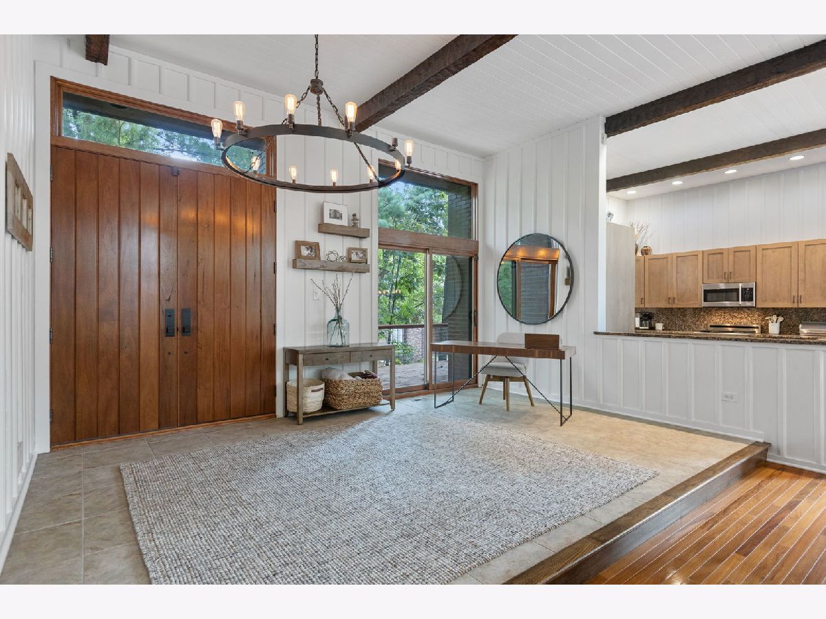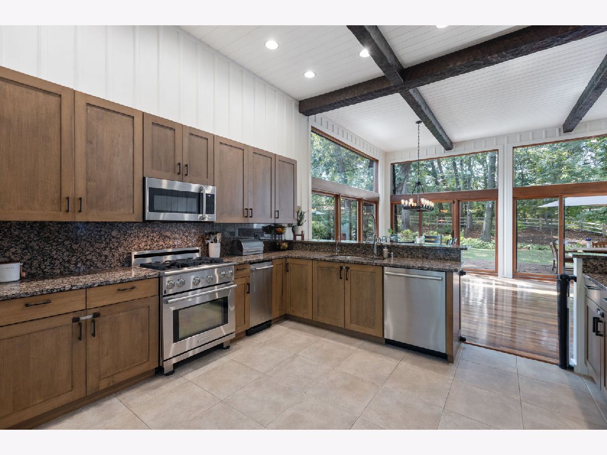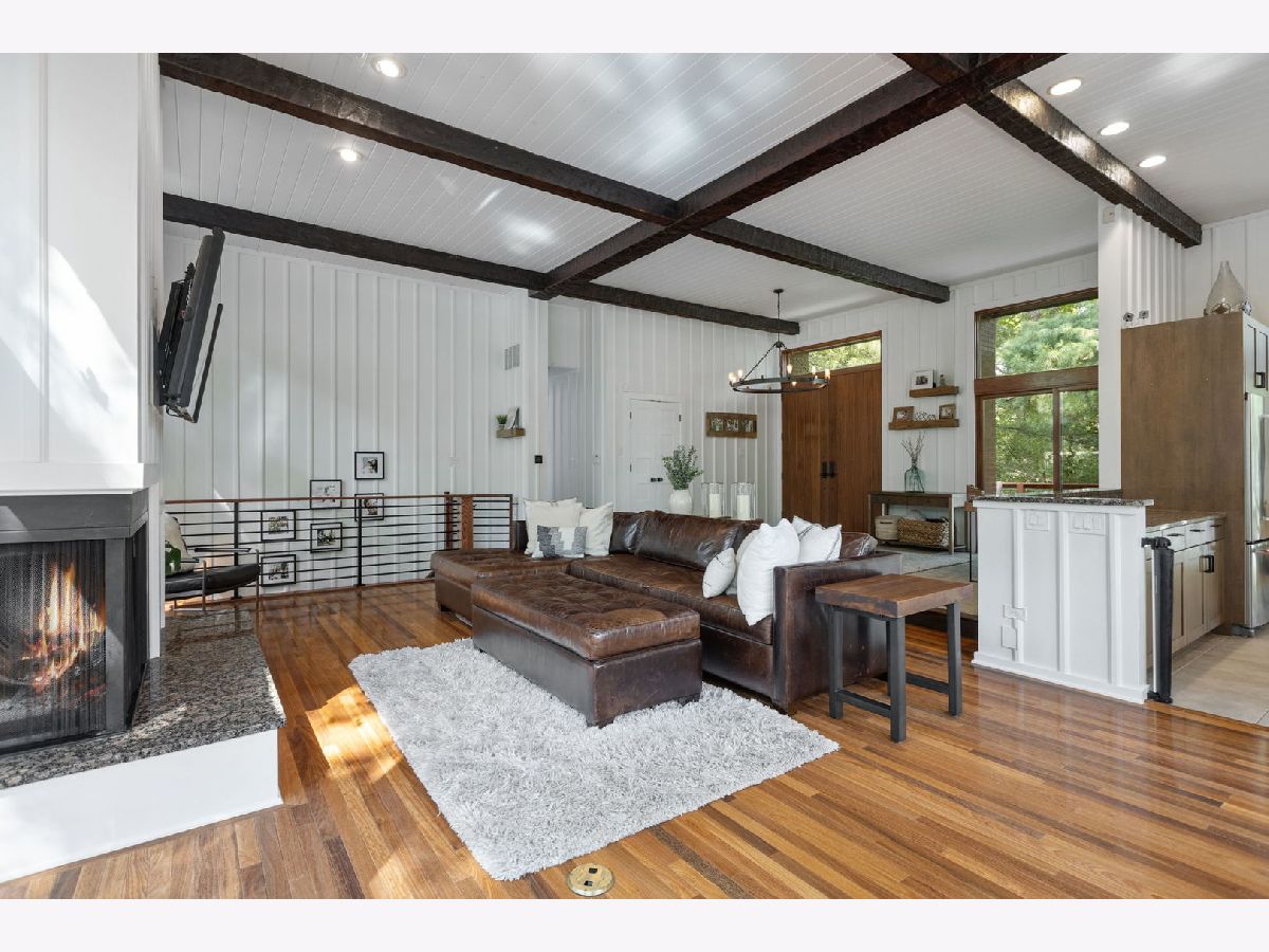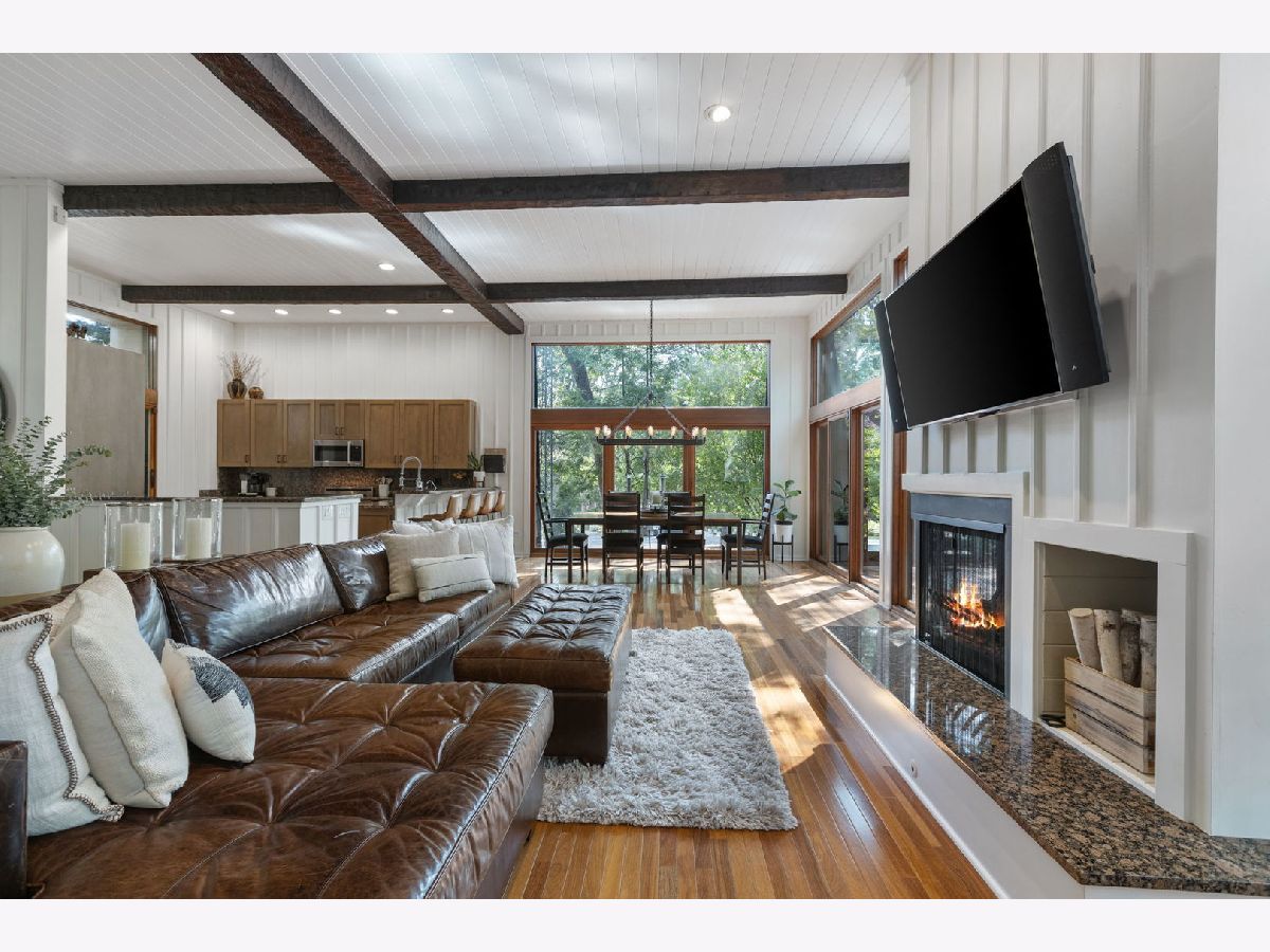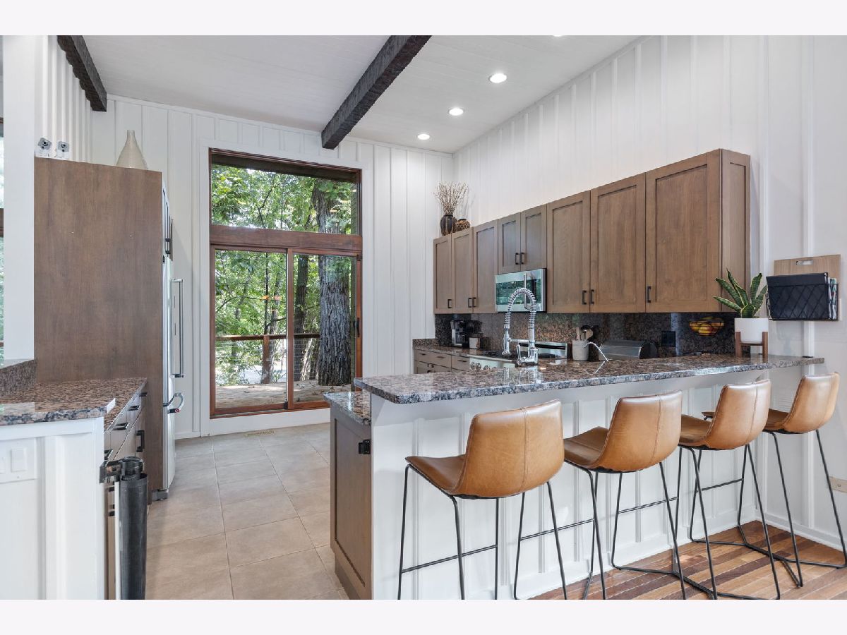 A Palos Park Stunner! Beautifully landscaped Ranch home, with floor to ceiling windows all the way around (replaced in 2019) and a wrap around deck. Enjoy viewing all that mother nature has to offer right in the comfort of your own home. It doesn't get any better than this. The home is located on quiet a Cul de sac with a three car garage. Once inside, notice the 12 foot exposed beamed ceilings through out the open main living area along with the tasteful wainscoting. The wood burning fireplace is so welcoming. The floors are covered in exotic hardwood through out and the house has been newly painted, it is move in ready for you. The kitchen has all stainless appliances, custom cabinets and gorgeous granite counter tops and an eat in bar. The hallway and main bath have beautiful skylights. The house features a total of 4 bedrooms and 3 full baths. The Master bedroom is a true sanctuary, it looks out on to new Pergola. The Walk in Closet features a custom built in vanity. The Master Bath boasts, travertine flooring, a steam shower and amazing Roburn mirrors. The 2nd bedroom has built in custom closet storage. The beautiful basement features custom built in bookcases and a wet bar. The basement is a walk out to the garage/driveway with a mudroom. This home has everything your heart desires. Come see it for your self.