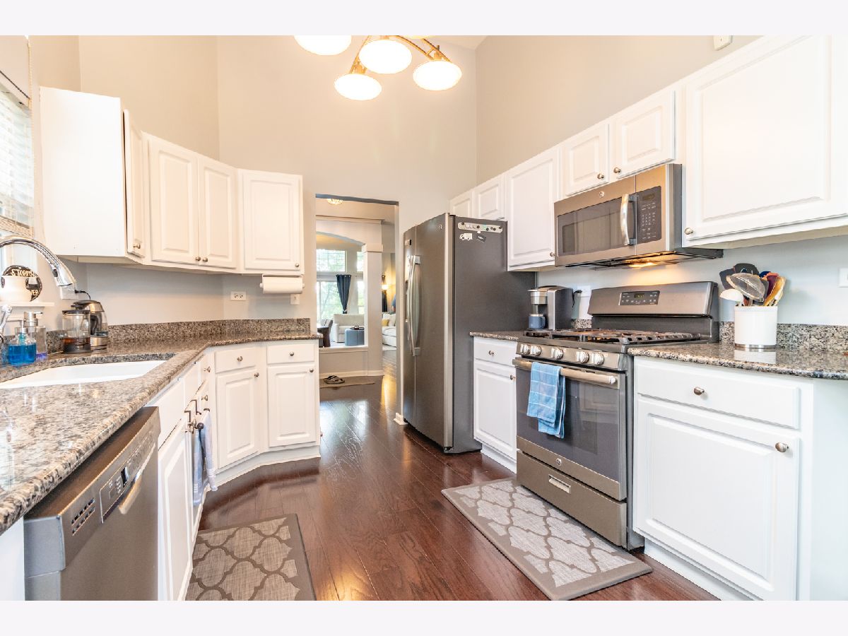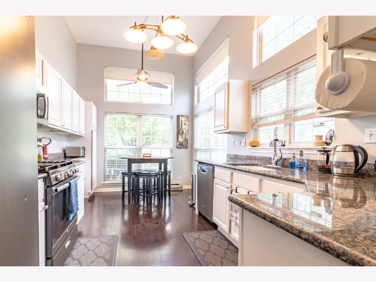 Amazing updated end unit townhome located in award-winning Stevenson High School district with stunning golf course views! This stunning home offers gorgeous hardwood floors throughout and an open floor plan with sunny and bright rooms. Spacious two-story living room appointed with floor-to-ceiling windows and patio access. Gourmet kitchen graced with high ceilings, sunny eating area, stainless steel appliances, and granite countertops. Dining room located between the kitchen and living room, perfect for hosting dinner parties. Main level bedroom can be used as a guest bedroom or office space! Shared full bath with new porcelain floor and laundry room complete the first floor. Second floor loft overlooks the living room and can be converted into an office space or additional living space. Retreat away to your master suite with spacious walk-in closet and ensuite with whirlpool tub, dual vanity sink and walk-in shower. Second bedroom and completely renovated shared bath adorn the second level. Enjoy the outdoors in your professionally landscaped yard and large patio! Located near the heart of Buffalo Grove and close to shopping, restaurants and so much more!