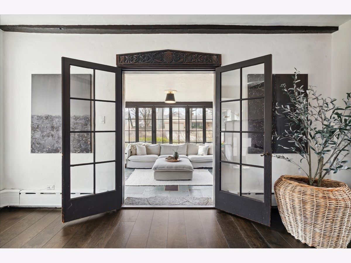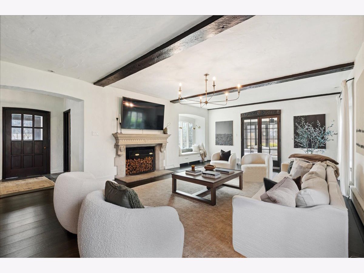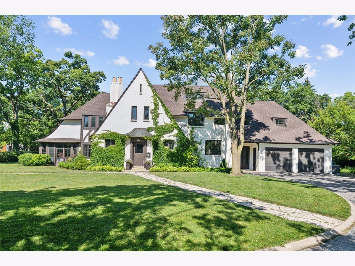 Vintage charm meets modern luxury in this beautifully updated 5 bedroom, 4.5 bath English Tudor home in the heart of Ravina. So many tasteful and thoughtful design elements throughout this stunning home, sitting on a double lot that's over a 1/2 an acre. Large entry foyer with double doors, original slate floors and mudroom with built-in lockers just off the entryway. Foyer opens into incredible living/family room with high ceilings, wood beams, limestone fireplace and flooded with light. Amazing 4 seasons sunroom off the family room with custom built-ins. Family room leads to large dining room with beautiful historic mouldings and bay window. Newly remodeled kitchen with high-end appliances, quartz counters and lovely light-filled breakfast room with additional cabinetry and counter space. The second floor boasts a gorgeous primary suite with newly remodeled bath with double vanities and large shower and huge walk-in closet with custom wood built-ins. 2 generous bedrooms share a remodeled jack/jill bath & a junior suite with a private bath opens to the hallway for the back 5th bedroom to share. The bright, spacious third floor rec/play room could also be used as a 6th bedroom/office and has a full bath. Basement with rec/workout room, art room, laundry and tons of storage space. So many amazing updates made to this magnificent home including all new wide-plank hardwood floors throughout the first and second floors, updated kitchen and breakfast room, new primary and jack & jill bathrooms, new light fixtures throughout, new roof, new boiler, mostly new windows throughout, new electrical and plumbing, new washer & dryer, interior and exterior painting and more! Fabulous location close to Ravinia, parks, beach, transportation and downtown Highland Park. This home has been completely transformed to a stunning masterpiece and is not to be missed!