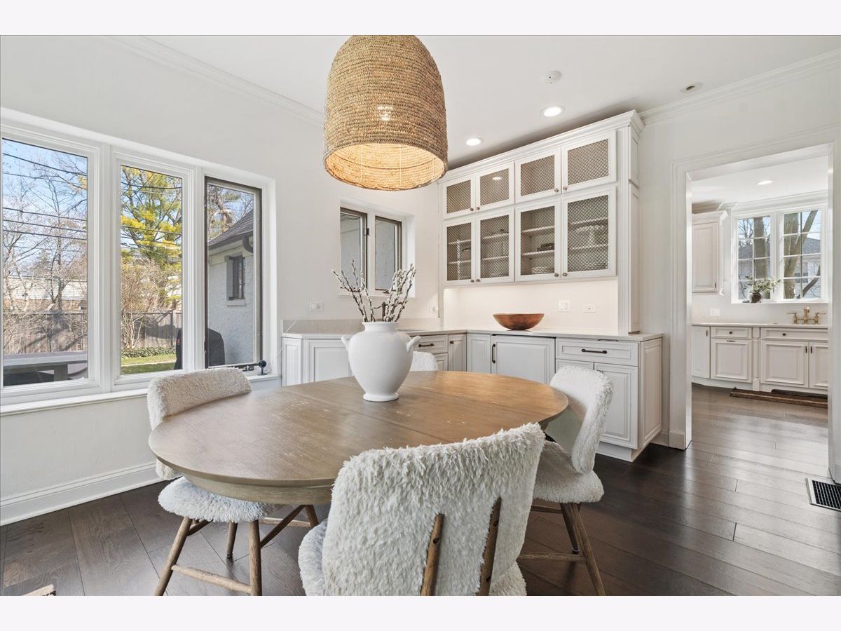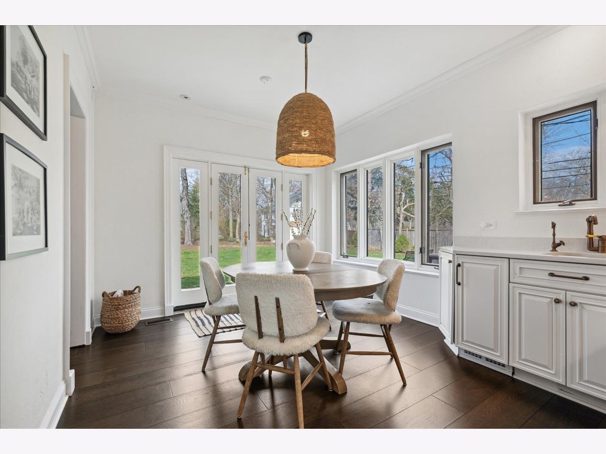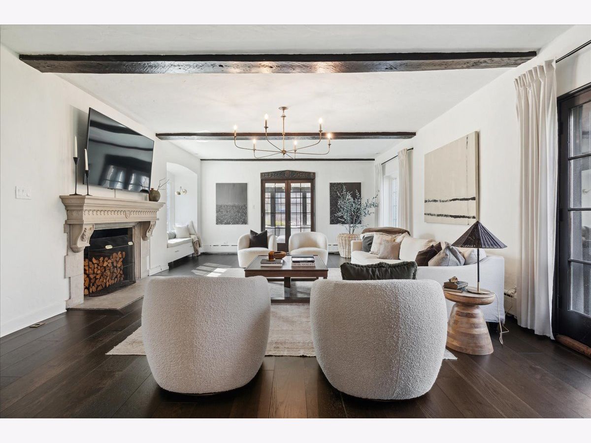 Vintage charm meets modern luxury in this beautifully updated 5 bedroom, 4.5 bath English Tudor home in the heart of Ravina. So many tasteful and thoughtful design elements throughout this stunning home, sitting on a double lot that's over a 1/2 an acre. Large entry foyer with double doors, original slate floors and mudroom with built-in lockers just off the entryway. Foyer opens into incredible living/family room with high ceilings, wood beams, limestone fireplace and flooded with light. Amazing 4 seasons sunroom off the family room with custom built-ins. Family room leads to large dining room with beautiful historic mouldings and bay window. Newly remodeled kitchen with high-end appliances, quartz counters and lovely light-filled breakfast room with additional cabinetry and counter space. The second floor boasts a gorgeous primary suite with newly remodeled bath with double vanities and large shower and huge walk-in closet with custom wood built-ins. 2 generous bedrooms share a remodeled jack/jill bath & a junior suite with a private bath opens to the hallway for the back 5th bedroom to share. The bright, spacious third floor rec/play room could also be used as a 6th bedroom/office and has a full bath. Basement with rec/workout room, art room, laundry and tons of storage space. So many amazing updates made to this magnificent home including all new wide-plank hardwood floors throughout the first and second floors, updated kitchen and breakfast room, new primary and jack & jill bathrooms, new light fixtures throughout, new roof, new boiler, mostly new windows throughout, new electrical and plumbing, new washer & dryer, interior and exterior painting and more! Fabulous location close to Ravinia, parks, beach, transportation and downtown Highland Park. This home has been completely transformed to a stunning masterpiece and is not to be missed!