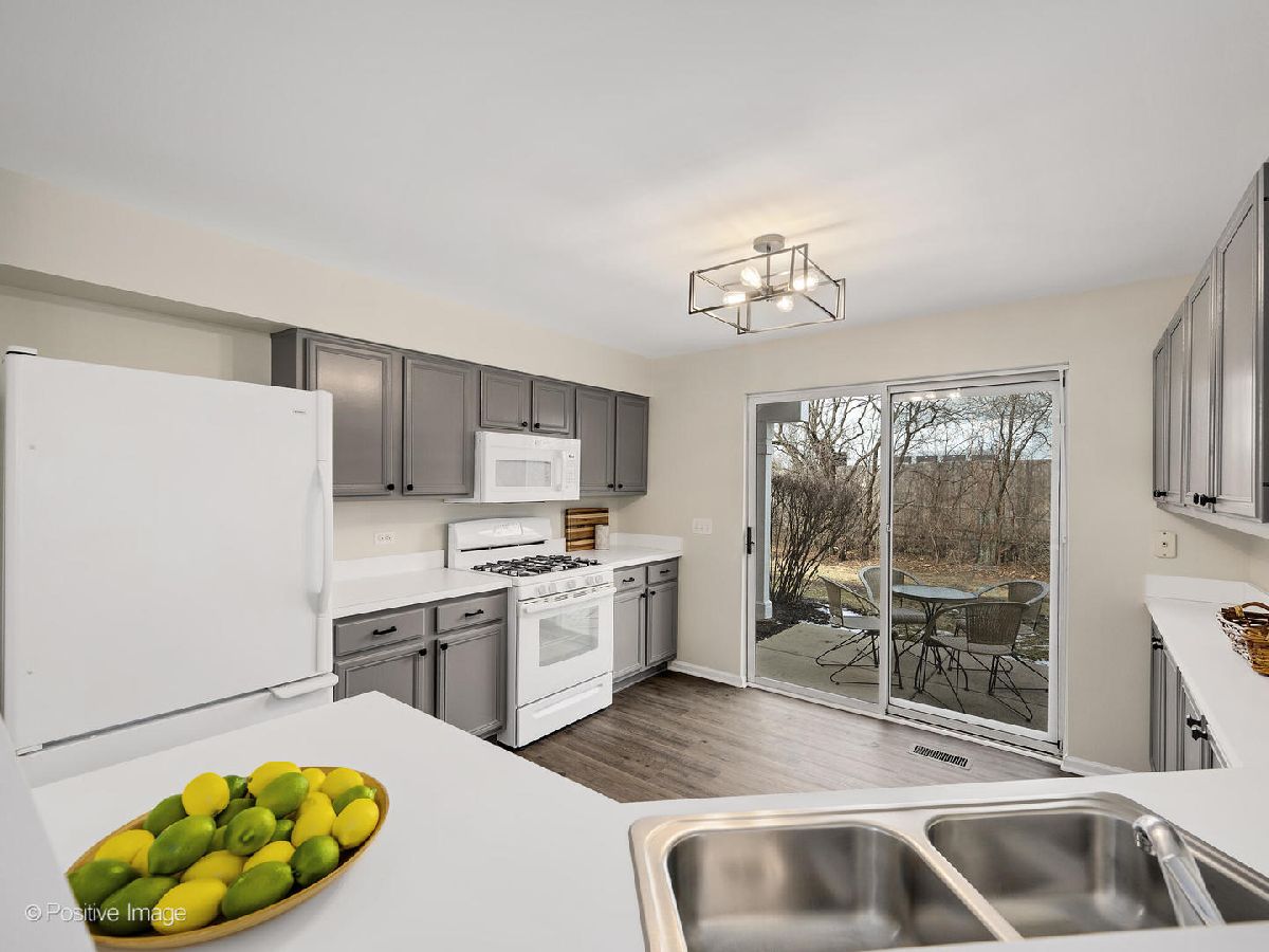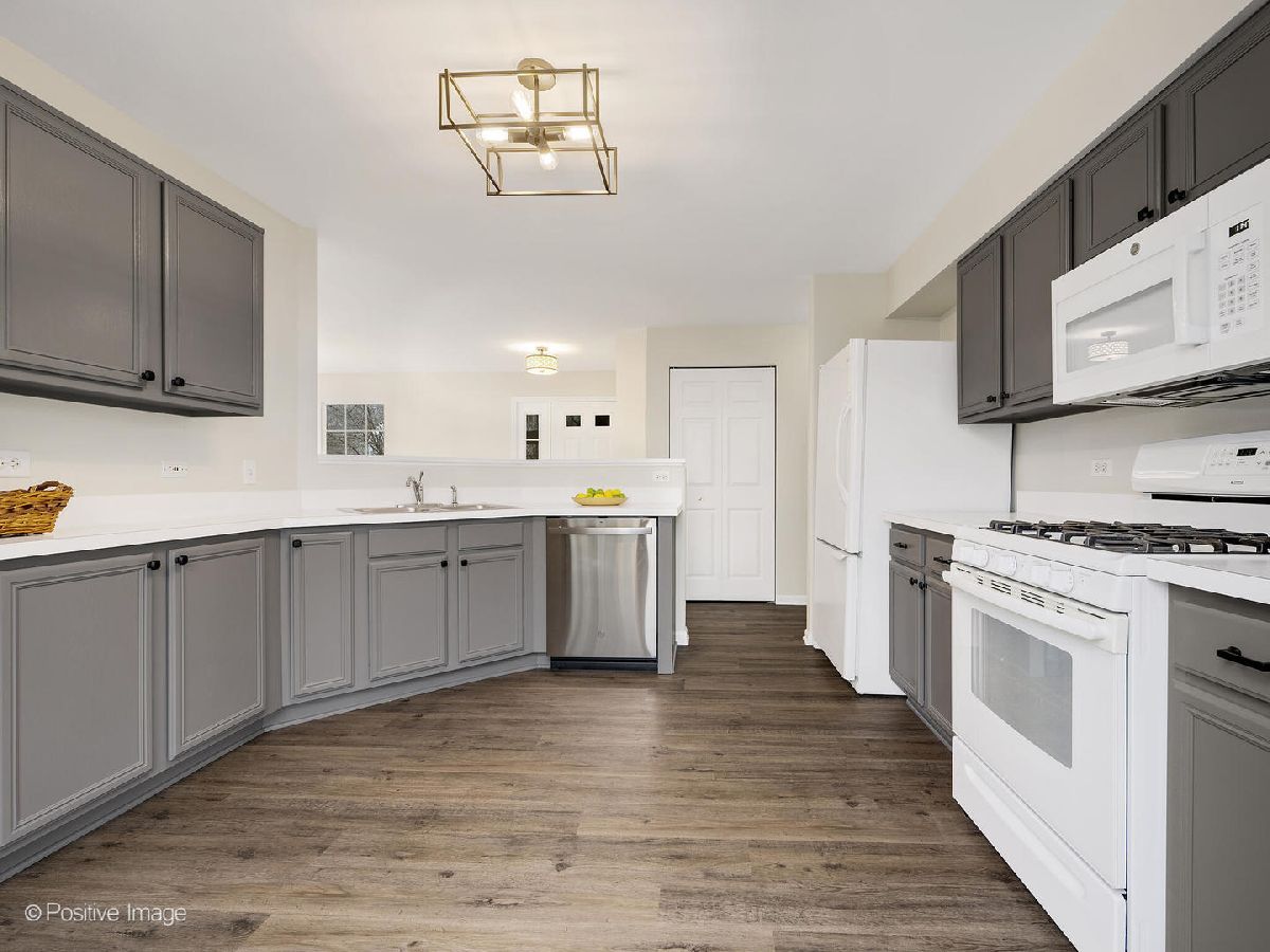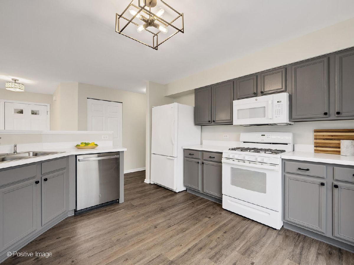 Beautiful highly sought after Concord Pointe ranch unit. Private cul-de-sac with guest parking. Sunshine filled end unit with many windows, some new. Large Living room with vaulted ceiling. Generously sized dining area can fit a buffet and large table. Updated eat-in kitchen with lots of cabinets (owner had a movable island w/ stools in the center.) Nicely updated bathroom with tiled tub surround and large double vanity. Spacious primary bedroom with a big walk in closet. Gorgeous new waterproof luxury vinyl plank flooring throughout the home. Entire unit freshly painted with neutral colors. All light fixtures have been replaced with new modern lighting. Utility room with new washer and dryer-11/22. Raised panel doors. Furnace and CAC-2020. Microwave and dishwasher-11/22. Garbage disposal-2018. Nice private patio that backs up to lush green space. Attached garage with storage, garage door serviced in 10/22. Convenient location, close to restaurants and shopping. Glen Ellyn schools. Truly nothing to do but move in and enjoy this lovely home. (Please note that this home is located in Carol Stream, per the mailing address and tax assessor but in google maps it comes up incorrectly as Glendale Heights. The directions will take you to the correct property but the town comes up wrong)