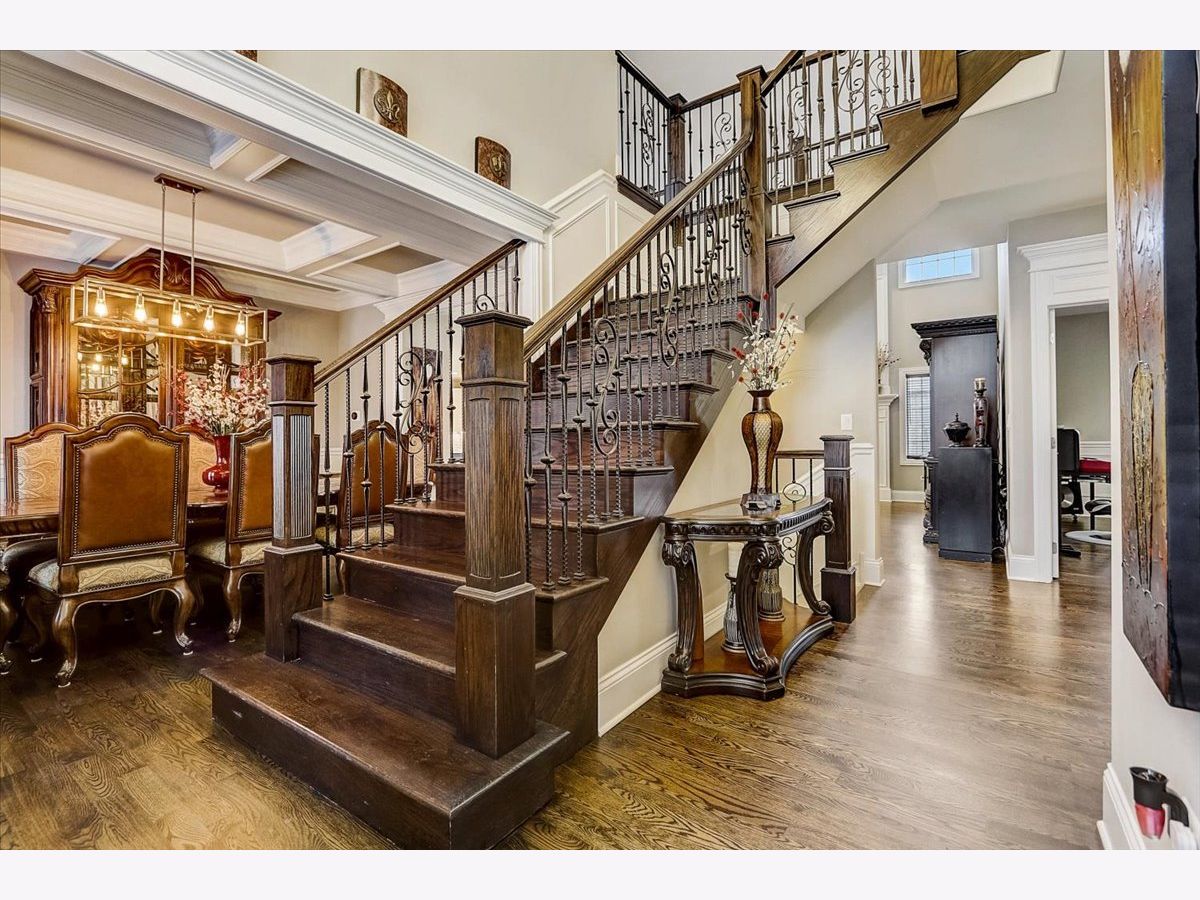 Stunning 5 bedroom, 3.5 bathroom home in desired Stone Creek in Frankfort. Two years young home built in 2019! Smart home includes video doorbell, outdoor cameras, WiFi controlled sprinkler system, nest thermostats and alarm system. Thick white trim, door pediment heading, neutral colors and natural light throughout the home. Dining room with coffered ceiling, oak hardwood floors and wainscoting. Living room with crown molding and oak hardwood floors. Open concept family room with two story ceilings, fireplace and oak hardwood flooring. Kitchen with white tiered cabinetry and crown molding, recessed lighting, neutral backsplash, stainless steel appliances, oak hardwood flooring, pantry, and quartz countertops. Main floor room with wainscoting can be used as an extra bedroom, office, or play room. First floor combination laundry and mud room includes extra cabinetry and utility sink leads to three car garage. Large owner's suite includes french door entry, tray ceiling, ceiling fan, recessed lighting, large walk-in closet, and owner's en suite bathroom with quartz countertop double sink vanity, water closet, standing shower, and soaker tub. Three additional bedrooms on second level with custom ceiling upgrades and ceiling fans and an additional two full bathrooms with quartz countertop vanities. Exterior features upgraded landscaping and concrete patio. Chelsea Elementary, Hickory Creek Middle, and Lincoln-Way East High School.