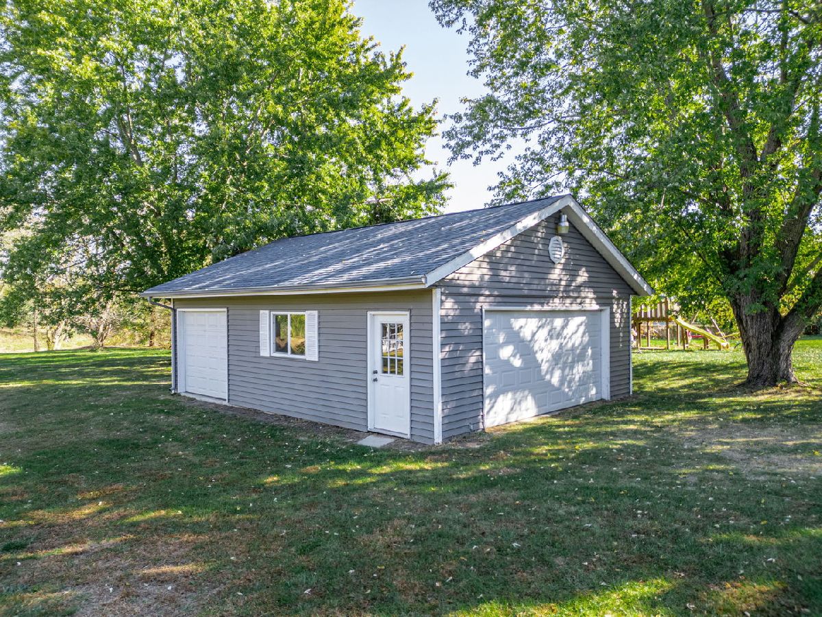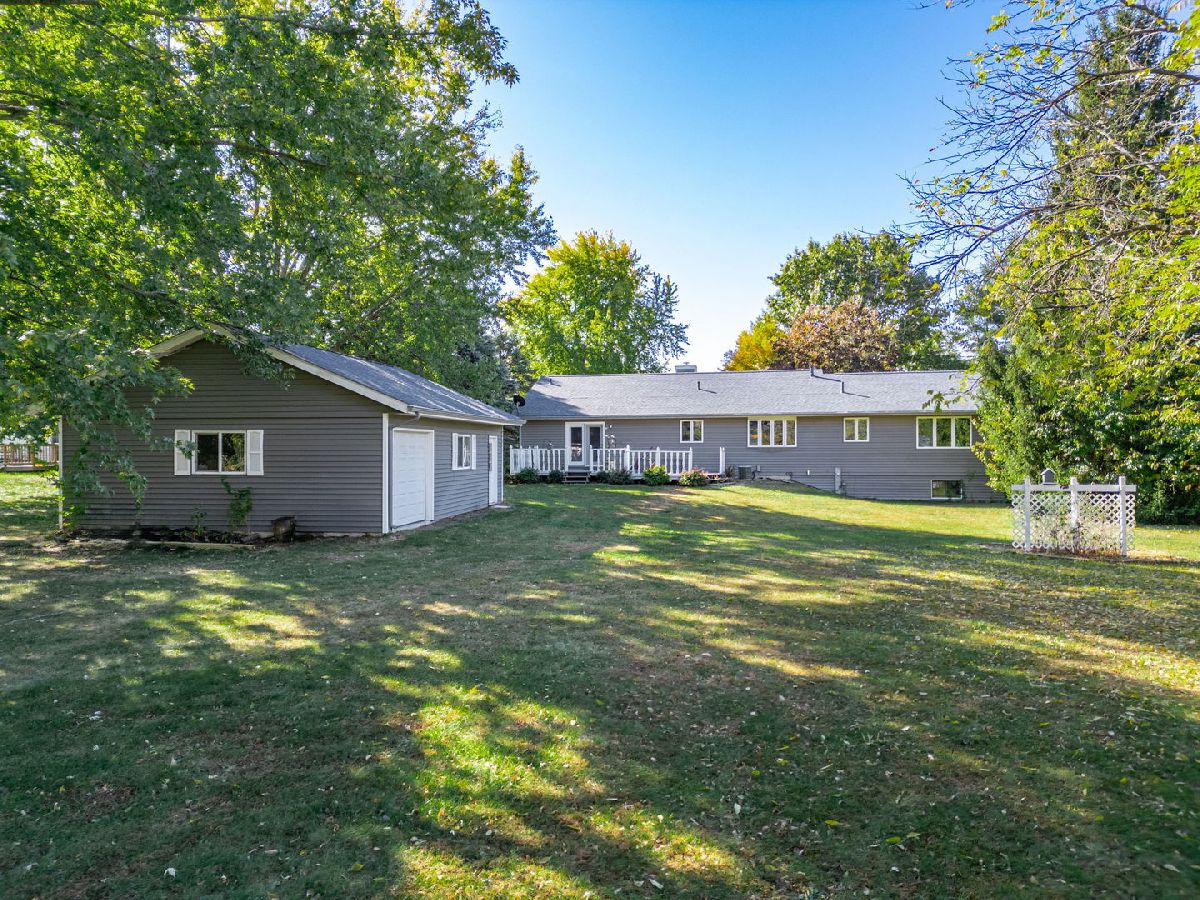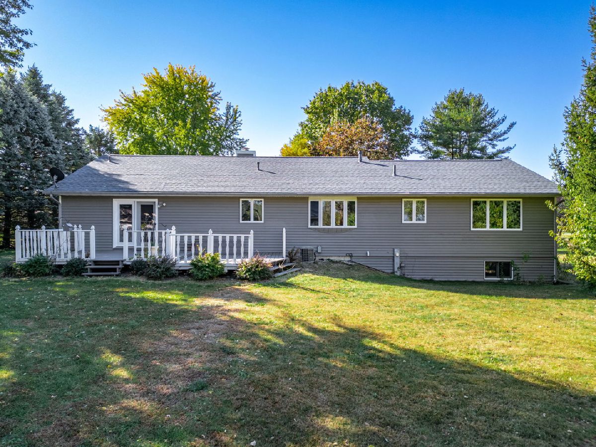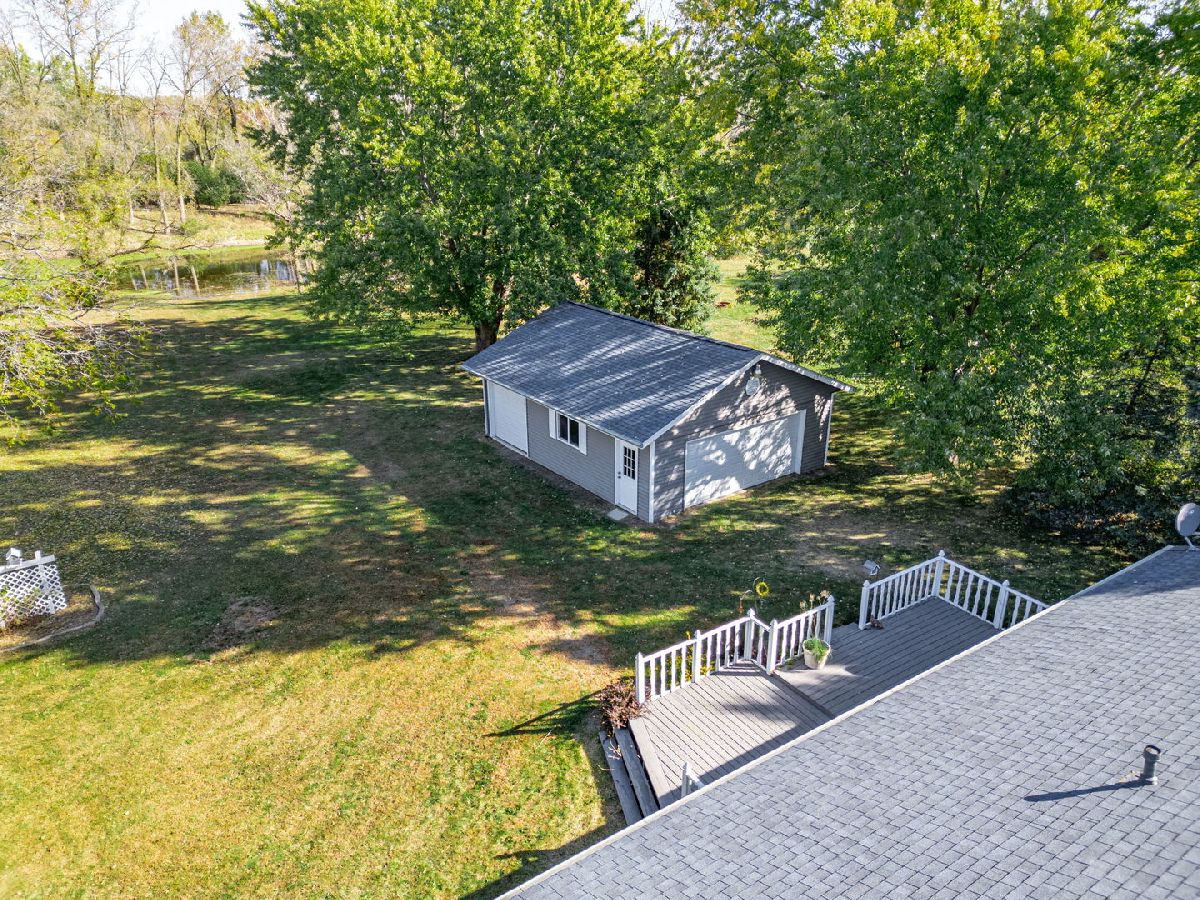 Serene Ranch Retreat with Expansive Garage Space and tranquil pond views. Welcome to this charming ranch home nestled in a picturesque rural setting. This spacious property is perfect for those seeking peace, privacy, and plenty of room to roam. The beautiful stone wall and cozy wood-burning fireplace in the great room create a warm and inviting atmosphere, flowing seamlessly into the dining area. The generously-sized galley kitchen offers ample cabinetry and countertop space, newer flooring is perfect for cooking and entertaining. The kitchen opens to a sunny dining area and a sitting space with sliders leading to a large deck, making it an ideal spot for relaxing or outdoor gatherings. There is also the convenience of a main-floor laundry room. The three spacious bedrooms include a primary suite with a private ensuite bath. The full basement offers an office space, plenty of storage, and endless possibilities for customization to suit your needs. A 2 1/2 car attached garage provides convenient parking, while the additional detached 3-car garage and large shed with a covered porch area add even more versatility. This is a rare find for those seeking a blend of rural charm, modern amenities, and exceptional space.