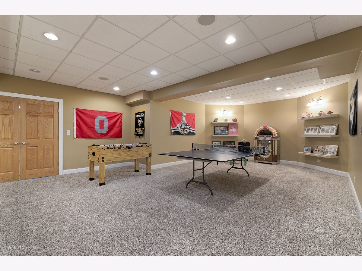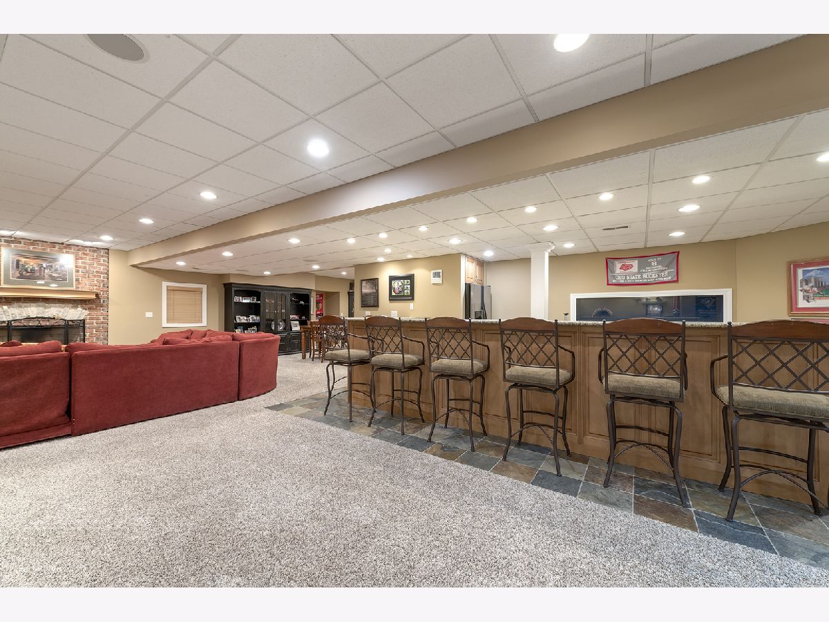 Welcome to this exceptional brick and stone home in Carriage Hill. An entertainer's dream inside and out! The spacious floor plan is perfect for everyday living as well as hosting a crowd. The stunning two story foyer leads to the spacious formal living room and dining room. The dramatic 2-story family room is open to the kitchen and features one of the four fireplaces in the home. The spacious kitchen has custom mill work, cabinetry, granite counters, high end stainless steel appliances, massive island, walk-in pantry and easy access to the mud/laundry room as well as the sun room. Don't miss the first floor bedroom/office and full bath. Take the second staircase to the additional 4 bedrooms and 3 bathrooms. The large primary suite features a fireplace, 2 walk-in closets and an ensuite bathroom with double sinks and soaking tub. Hang out in the finished basement that has a media center, game room, full bathroom and well equipped bar/kitchen area. Lots of storage in the basement as well as in the 3 car heated garage. Outstanding wooded backyard with brick patio, perennial garden and koi pond. So much to see in this spacious home! First floor freshly painted with designer chosen color. New, updated lighting in kitchen and dining room.