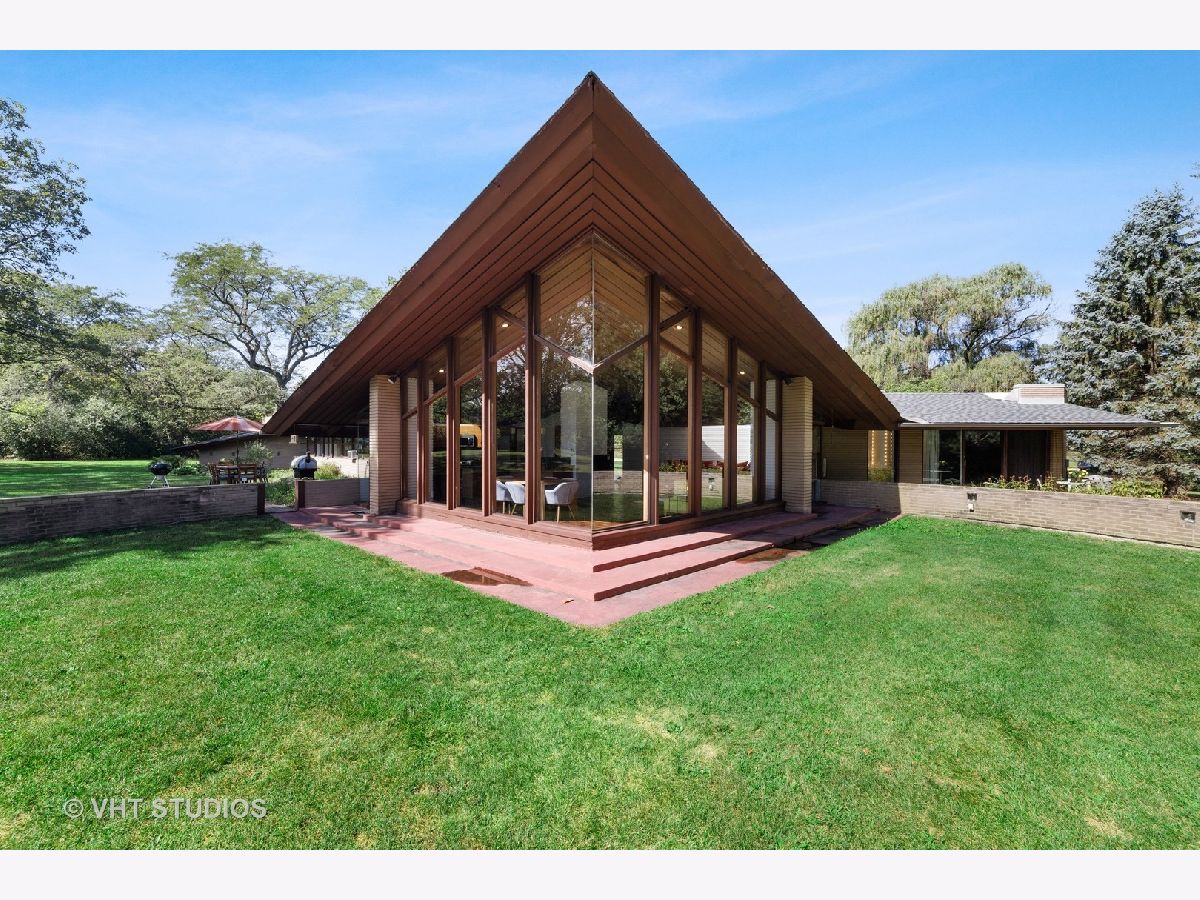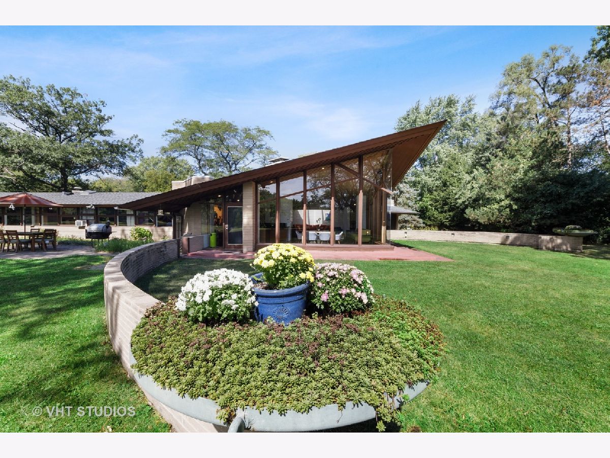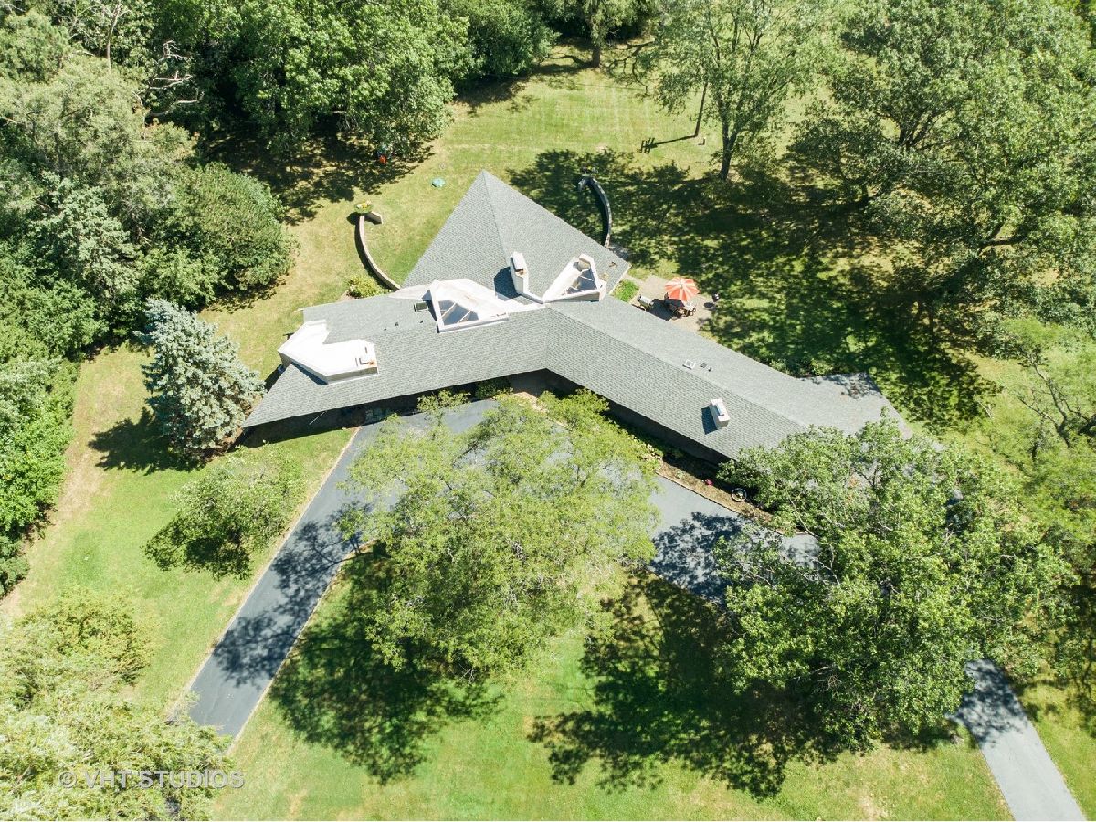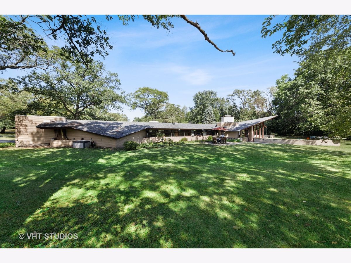 The opportunity is here once again. The current owners have been offered a job opportunity moving to Europe which allows this home to become available way sooner than they wanted! The iconic Frank Lloyd Wrights' influence shines bright in his apprentice Don Erickson's Mid-Century Modern design which was artfully crafted for his father right here in Inverness. Situated on a 1.6 acre lot adorned with mature trees and rolling views, this home takes advantage of all the magnificent sight lines created in the design features. New septic system installed 2021 too! The artistic elements which are hallmarks include horizontal raked mortar joints, the ceilings are lap-straked redwood planks and the diamond cut windows stretch 15' upwards to give you the most dramatic and awe-inspiring ever changing views. This home can entertain parties in grand scale whether inside or outside on the expansive lawn. The horizontal lines of windows, organic materials with exposed brick on the interior, natural wood, radiant heated floors and slightly sloping roof with generous overhangs are the calling cards of Wright designs. The Great Room has angular windows which take in the extremely private treed lot, the Kitchen was completely remodeled with fixtures from the Merchandise Mart, granite counters, SS appliances & Neff cabinetry with soft close drawers. One wing of the home has the Primary Bedroom Suite with a wall of built in closets & shelving, the Bedroom has a fireplace and sliding doors to private patio and the Primary Bath has a separate whirlpool tub and full wall vanity with floor to ceiling window. The opposite wing houses the additional 3 bedrooms which includes a 2nd Primary Bedroom suite with cozy fireplace and it's own bath. The additional bedrooms have angular rooms, built in shelving and cabinets and horizontal window lines. The Master Wing has a basement underneath (great for media room!) and has forced air gas and central air. The remainder of the home has baseboard hot water heat and radiant heated floors and newly installed "Mitsubishi Split Units" allowing for extremely efficient modern air conditioning! The garage is offset and can house 2+ autos (smaller sports car or motorcycles) in addition to two cars. The dual semi-circular brick walls set off the backyard area. Tons of space to spread out, top notch schools, short drive to Metra and I90 and yet you still have a neighborhood with expansive lots and rolling land. A treasure of sought after and historic design all wrapped up in an easy living Ranch home.
