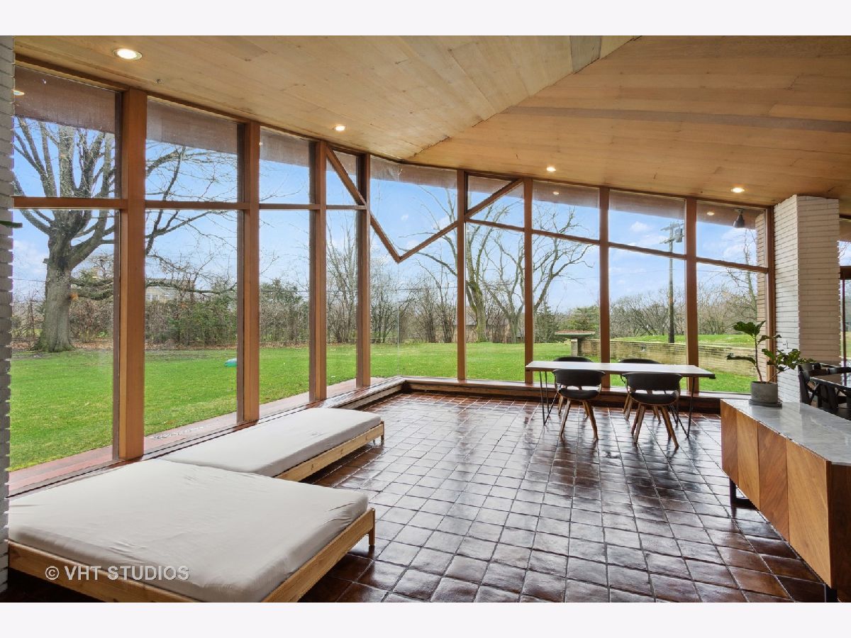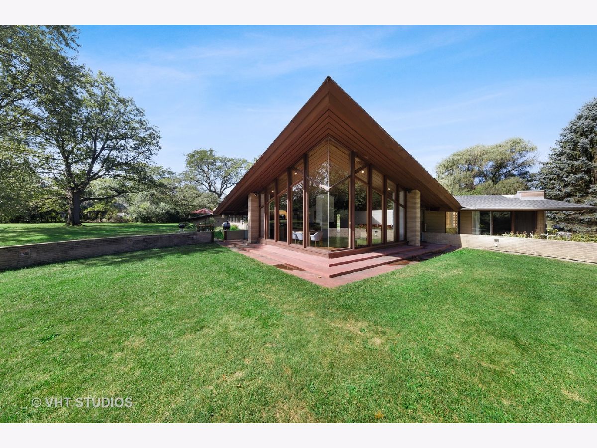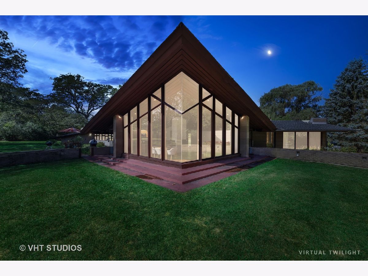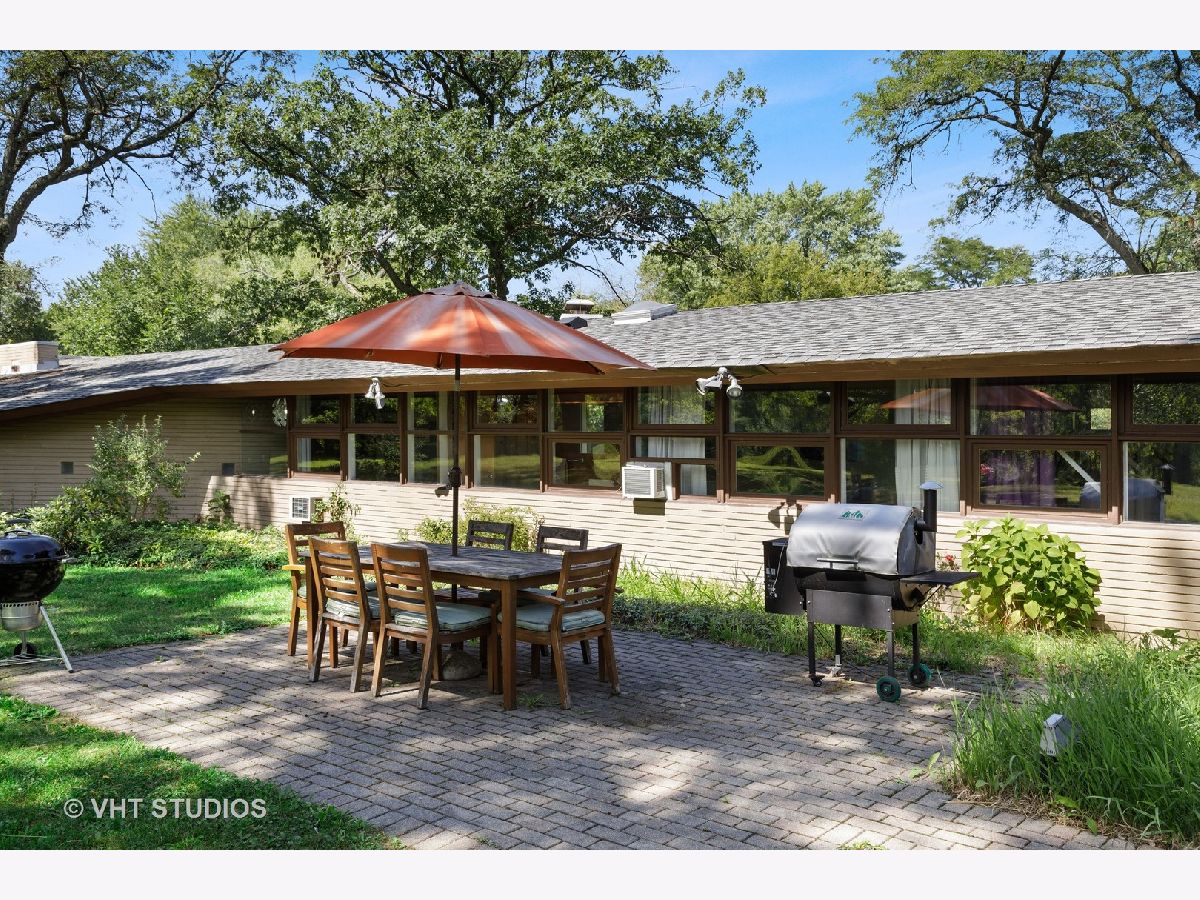 The opportunity is here once again. The current owners have been offered a job opportunity moving to Europe which allows this home to become available way sooner than they wanted! The iconic Frank Lloyd Wrights' influence shines bright in his apprentice Don Erickson's Mid-Century Modern design which was artfully crafted for his father right here in Inverness. Situated on a 1.6 acre lot adorned with mature trees and rolling views, this home takes advantage of all the magnificent sight lines created in the design features. New septic system installed 2021 too! The artistic elements which are hallmarks include horizontal raked mortar joints, the ceilings are lap-straked redwood planks and the diamond cut windows stretch 15' upwards to give you the most dramatic and awe-inspiring ever changing views. This home can entertain parties in grand scale whether inside or outside on the expansive lawn. The horizontal lines of windows, organic materials with exposed brick on the interior, natural wood, radiant heated floors and slightly sloping roof with generous overhangs are the calling cards of Wright designs. The Great Room has angular windows which take in the extremely private treed lot, the Kitchen was completely remodeled with fixtures from the Merchandise Mart, granite counters, SS appliances & Neff cabinetry with soft close drawers. One wing of the home has the Primary Bedroom Suite with a wall of built in closets & shelving, the Bedroom has a fireplace and sliding doors to private patio and the Primary Bath has a separate whirlpool tub and full wall vanity with floor to ceiling window. The opposite wing houses the additional 3 bedrooms which includes a 2nd Primary Bedroom suite with cozy fireplace and it's own bath. The additional bedrooms have angular rooms, built in shelving and cabinets and horizontal window lines. The Master Wing has a basement underneath (great for media room!) and has forced air gas and central air. The remainder of the home has baseboard hot water heat and radiant heated floors and newly installed "Mitsubishi Split Units" allowing for extremely efficient modern air conditioning! The garage is offset and can house 2+ autos (smaller sports car or motorcycles) in addition to two cars. The dual semi-circular brick walls set off the backyard area. Tons of space to spread out, top notch schools, short drive to Metra and I90 and yet you still have a neighborhood with expansive lots and rolling land. A treasure of sought after and historic design all wrapped up in an easy living Ranch home.