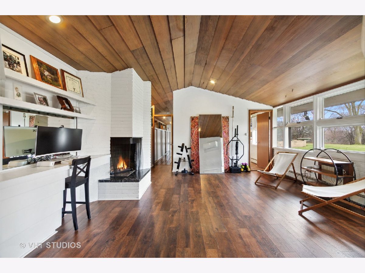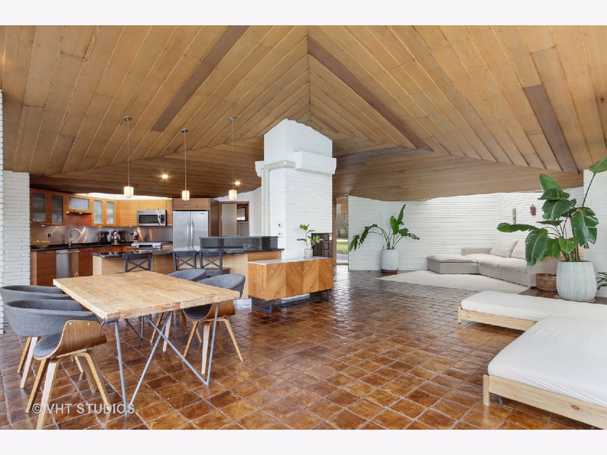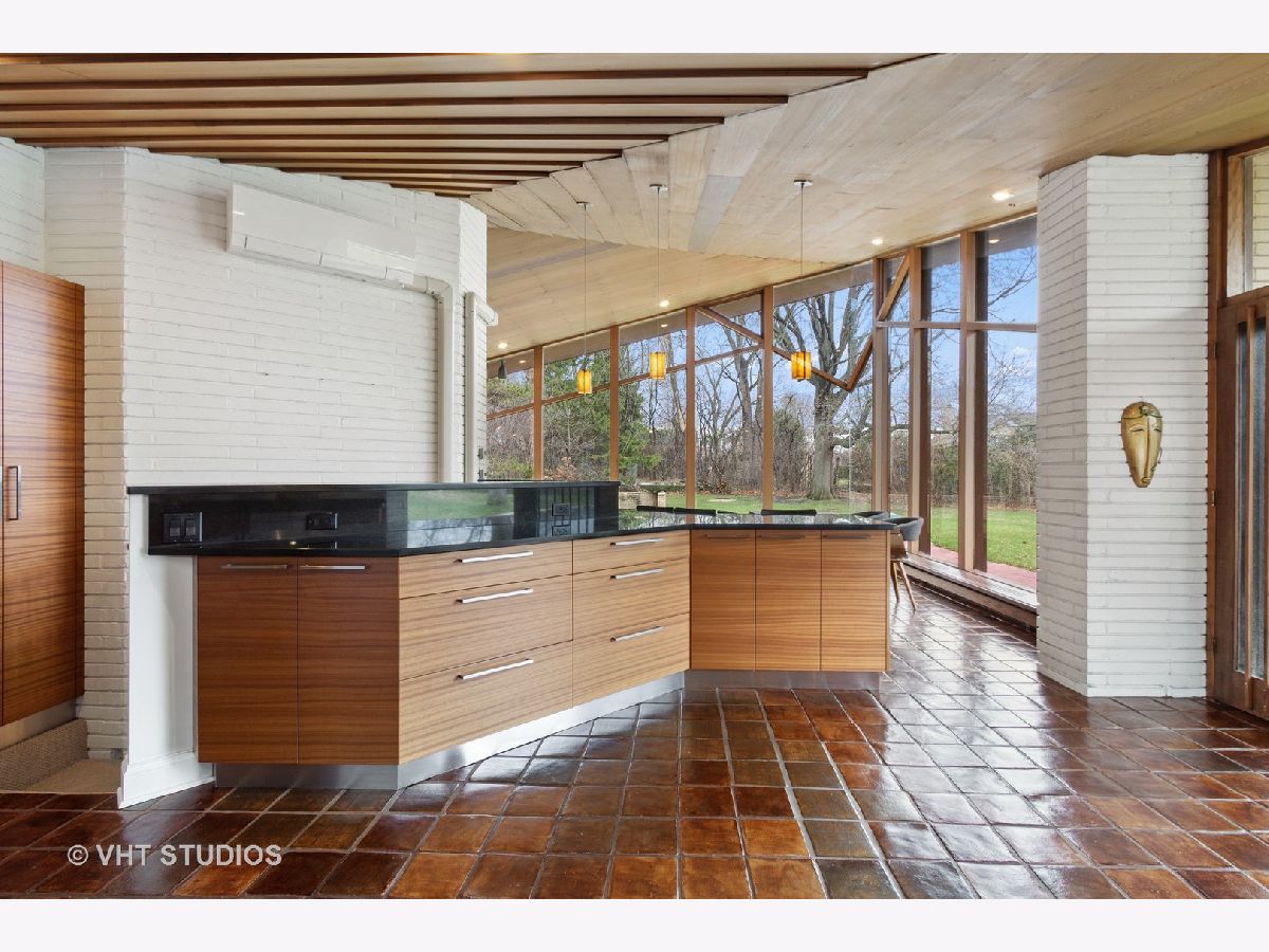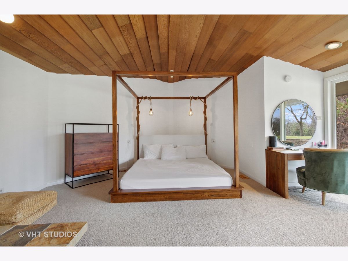 The opportunity is here once again. The current owners have been offered a job opportunity moving to Europe which allows this home to become available way sooner than they wanted! The iconic Frank Lloyd Wrights' influence shines bright in his apprentice Don Erickson's Mid-Century Modern design which was artfully crafted for his father right here in Inverness. Situated on a 1.6 acre lot adorned with mature trees and rolling views, this home takes advantage of all the magnificent sight lines created in the design features. New septic system installed 2021 too! The artistic elements which are hallmarks include horizontal raked mortar joints, the ceilings are lap-straked redwood planks and the diamond cut windows stretch 15' upwards to give you the most dramatic and awe-inspiring ever changing views. This home can entertain parties in grand scale whether inside or outside on the expansive lawn. The horizontal lines of windows, organic materials with exposed brick on the interior, natural wood, radiant heated floors and slightly sloping roof with generous overhangs are the calling cards of Wright designs. The Great Room has angular windows which take in the extremely private treed lot, the Kitchen was completely remodeled with fixtures from the Merchandise Mart, granite counters, SS appliances & Neff cabinetry with soft close drawers. One wing of the home has the Primary Bedroom Suite with a wall of built in closets & shelving, the Bedroom has a fireplace and sliding doors to private patio and the Primary Bath has a separate whirlpool tub and full wall vanity with floor to ceiling window. The opposite wing houses the additional 3 bedrooms which includes a 2nd Primary Bedroom suite with cozy fireplace and it's own bath. The additional bedrooms have angular rooms, built in shelving and cabinets and horizontal window lines. The Master Wing has a basement underneath (great for media room!) and has forced air gas and central air. The remainder of the home has baseboard hot water heat and radiant heated floors and newly installed "Mitsubishi Split Units" allowing for extremely efficient modern air conditioning! The garage is offset and can house 2+ autos (smaller sports car or motorcycles) in addition to two cars. The dual semi-circular brick walls set off the backyard area. Tons of space to spread out, top notch schools, short drive to Metra and I90 and yet you still have a neighborhood with expansive lots and rolling land. A treasure of sought after and historic design all wrapped up in an easy living Ranch home.