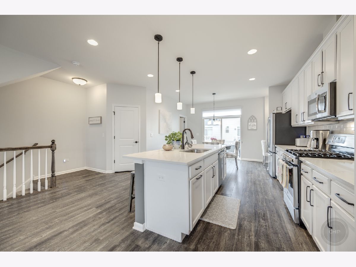 Absolutely Gorgeous Bright & Sunny North Facing Ontario End Unit Located with Premium Courtyard Open View! Like New Beautifully Upgraded w 5" Wide Plank Laminate Flooring in All Rooms Except 1st Floor Den/Office & Guest Br. 9' Ceils w Transom Windows, Upgraded White 2 Panel Doors & White Trim, Upgraded 42" White Kitchen Cabinets with Upgraded Crown Molding. Large Center Island with Sink & Breakfast Seating + 3 Stools Included. Additional Planning Desk Cabinetry Added + Large Pantry. Private Deck off Dinette w Grill Incl. Recessed Lighting on Main Level. First Den on Main Entry Level Carpeted. Upstairs Loft features Recessed Lights, Perfect for Desk & or Exercise Equip. Spacious Vaulted Ceiling Main Suite with Recessed Lighting & Chandelier + Transom Windows, Private Bath with Dual Sinks, Quartz Counters & Oversized Shower featuring Ceramic Tile Surround + Ceramic Tile Floor + Large Closet with Organizers! Guest Suite is Across from Full Hall Bath. Convenient Laundry on 2nd Floor w Washer & Dryer, Additional Upgrades Include: 2X6 Wall Construction, Upgraded Lighting, and Window Treatments + 12-year warranty still remains. Ring Doorbell, High Efficiency HVAC & Water Heater, Water Softener + Epoxy'd Garage Floor! Green Energy Features! Truly Shows like a Model Home, Just Move-In! Stunning!!