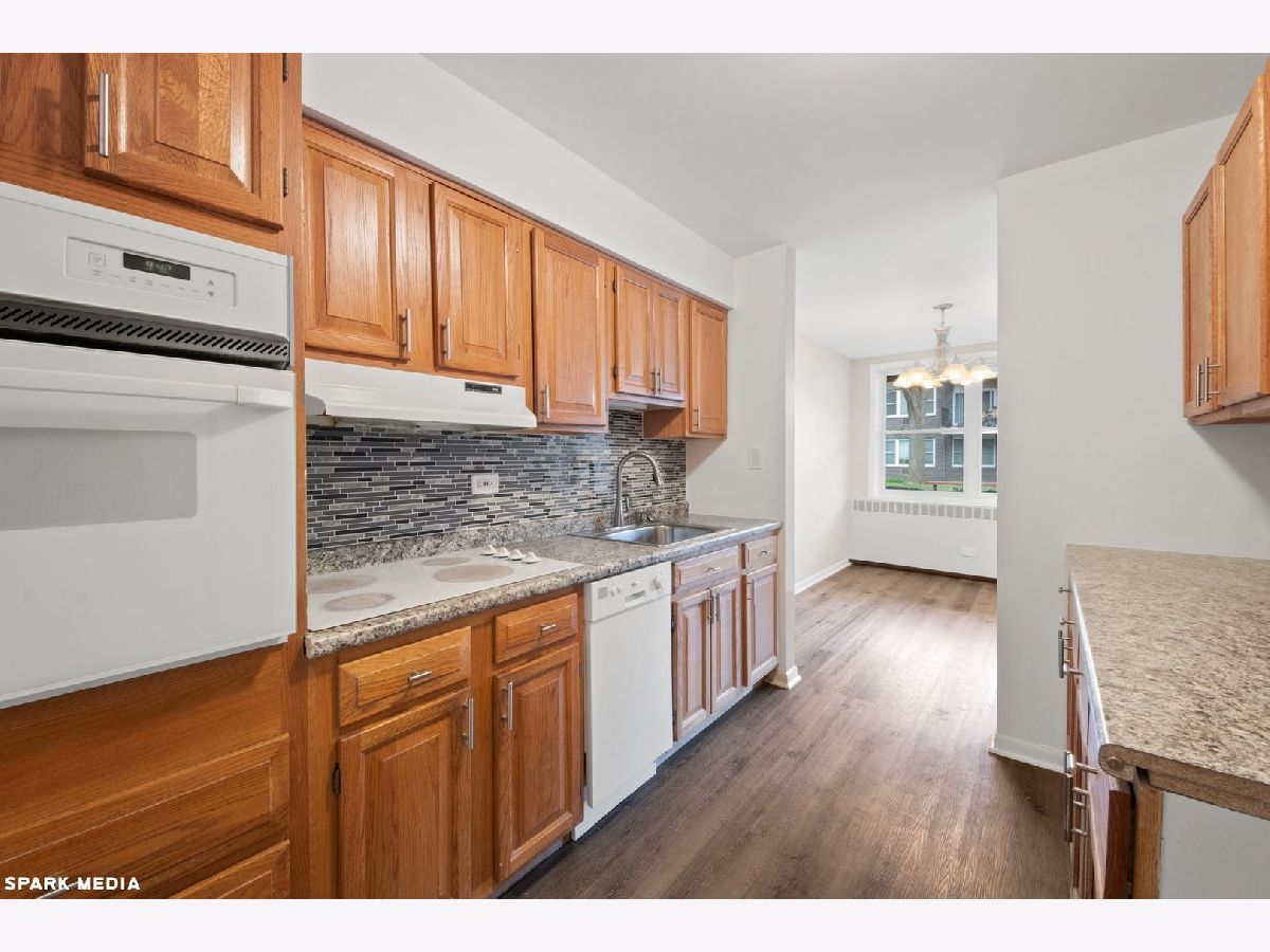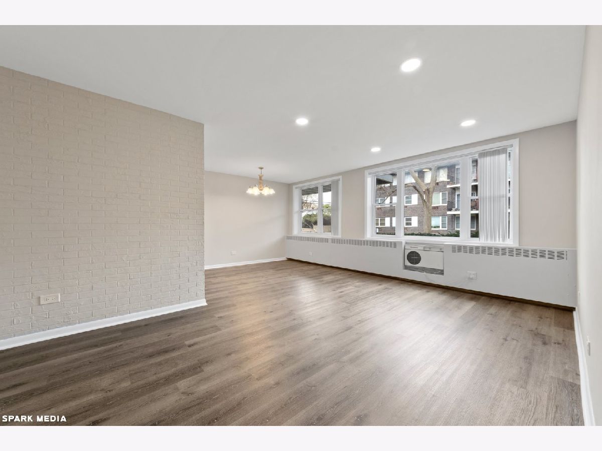 This bright 1st floor updated unit in Skokie Terrace has everything you need with brand new floors throughout. Bright and spacious unit has been freshly painted and is move in ready with new windows and updated baths. Kitchen has ample cabinets, new countertops & backsplash. Master bedroom suite offers large walk-in closet and master bath. Laundry and Storage locker in basement along with 1 assigned parking space. Association fee covers heat, water, garbage, snow removal and lawn care. Walking distance from Skokie Yellow Line. Special Assessment has been FULLY PAID by the seller.