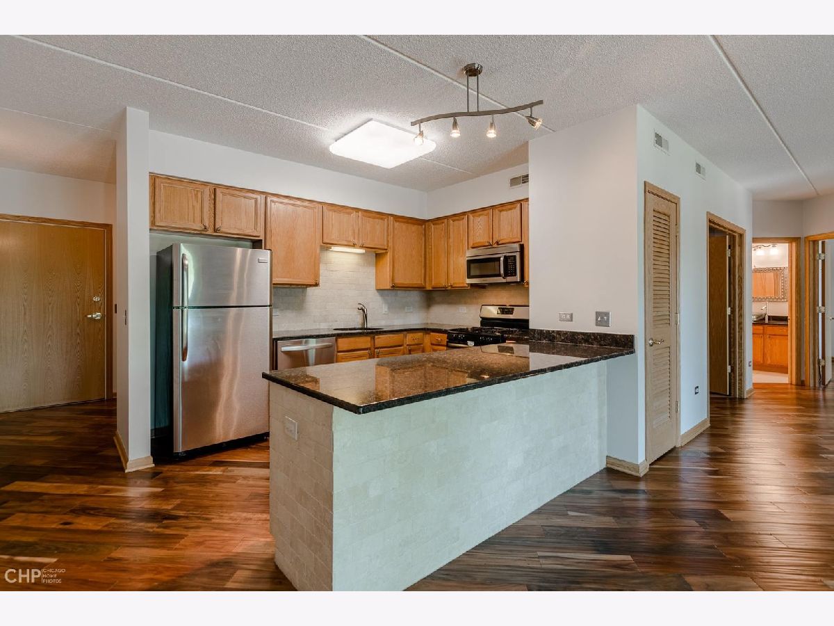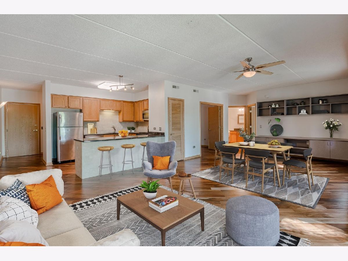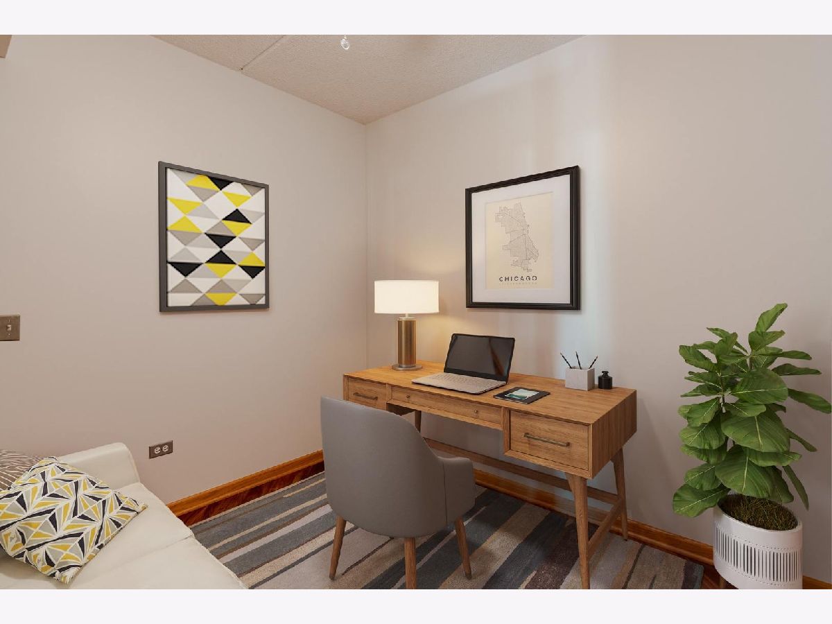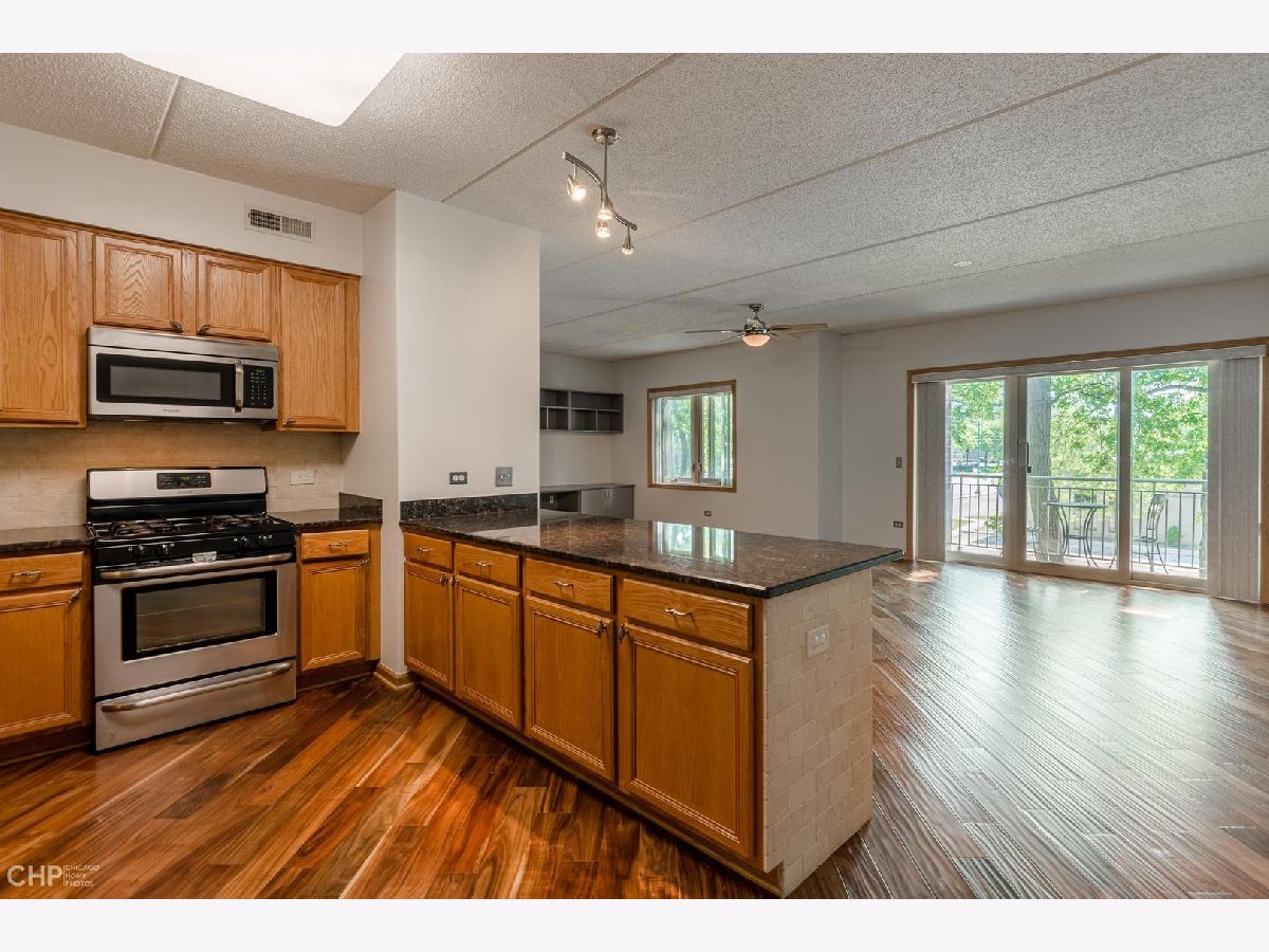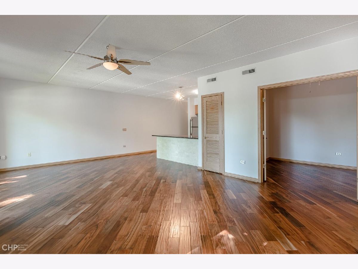 Gorgeously Remodeled 1 Bedroom +1 Den in Ideal Bryn Mawr Place. Open Concept Living. Beautiful Kitchen with Granite Counters Opens to a Huge Great Room (Living/Dining). Gorgeous Engineered Hardwood Flooring. Grill Out on the Spacious Covered Balcony. Master Suite with Walk-In Closet with Custom Organizers. Den, Ideal Home Office, Could be Used 2nd Bedroom. In-Unit Laundry Room (Washer, Dryer & Utility Sink). New A/C Condensor (2020). Heated Garage Space (#11) and Private Storage Room. Bike Room Perfect for Adjacent Forest Preserves. Newer, High-End Windows. Gas is Included in the Assessment. Close to B-Line El Train (Cumberland Stop), Expressways, and O'Hare Airport. Virtual Floor Plan.