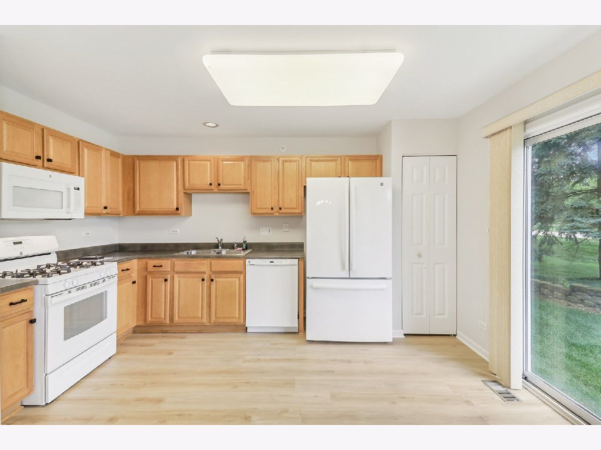Welcome to low-maintenance living at 874 March Street! Enjoy a hassle-free lifestyle with snow removal and lawn maintenance provided by the HOA. As you enter this home, you'll be impressed by the new vinyl plank flooring and freshly painted walls throughout. The home is bright and airy, with ample natural light in every room and modern light fixtures that enhance its charm. The thoughtful layout features an open floor plan, with the main living, kitchen, and dining areas all in one central space-ideal for entertaining. The cozy living area includes a gas fireplace, perfect for cozy winter nights. The eat-in kitchen boasts plenty of cabinets, catering to even the most discerning home chef. The home offers two generously sized bedrooms, including a primary suite with an en-suite bathroom featuring a double vanity and a spacious walk-in closet. A spacious den or office is located off the living room. The full basement, which is roughed in for an additional bathroom, provides abundant storage or the potential for extra living space. Situated in the charming community of Lake Zurich, this home is conveniently located near award-winning schools, shopping, restaurants, and parks. Contact us today-this opportunity won't last long!