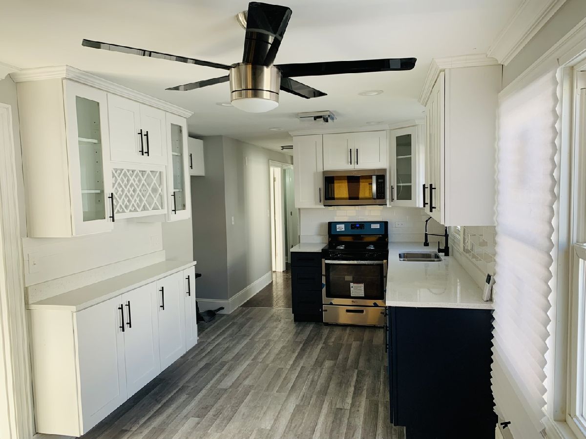 Welcome home to this newly updated one story ranch! Here is a description of this total rehab throughout freshly painted with new stainless steel appliances, new kitchen cabinets with quartz countertops, all 3 bedrooms updated with hardwood flooring, 1.5 bathrooms with jacuzzi tub/body sprayer and blue tooth speakers in both mirrors. New light fixtures throughout the home, new ceiling fan, new floors include ceramic tile, laminate, vinyl, porcelain, and new carpet in basement bedroom. All new doors including Front/side door, new roof/gutters, new wood fence, new siding on garage, and new double hung windows. This home has a full finished basement with a bedroom, rec area, utility room and storage space. Vacant lot next to home not included.