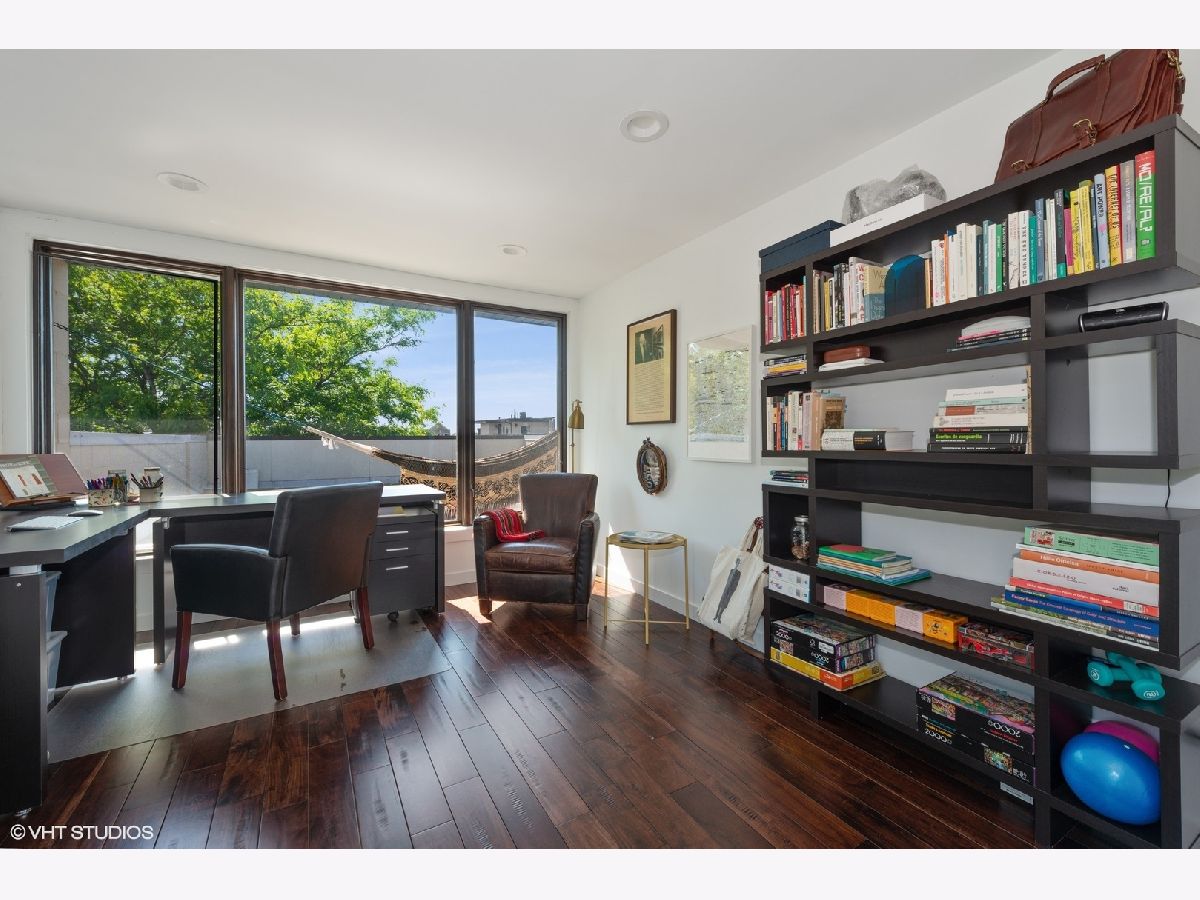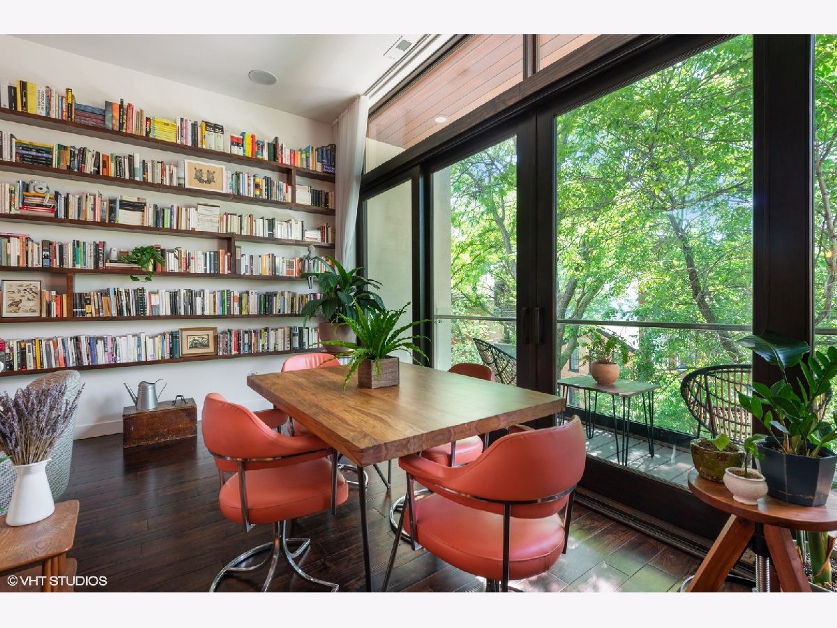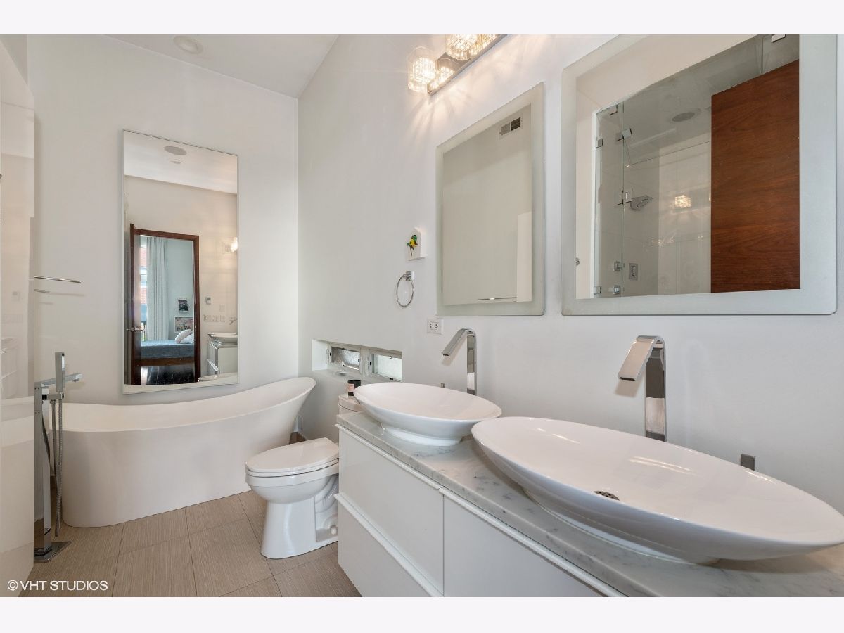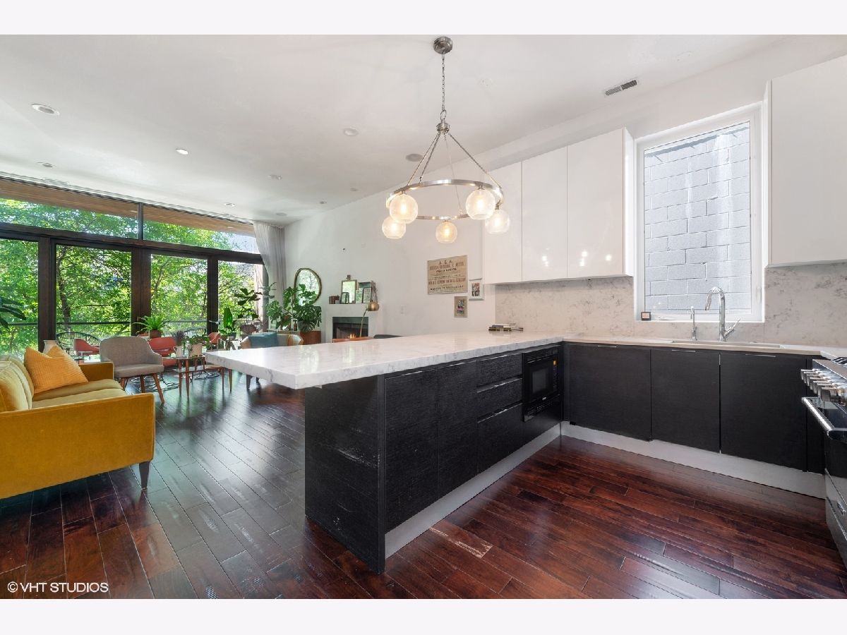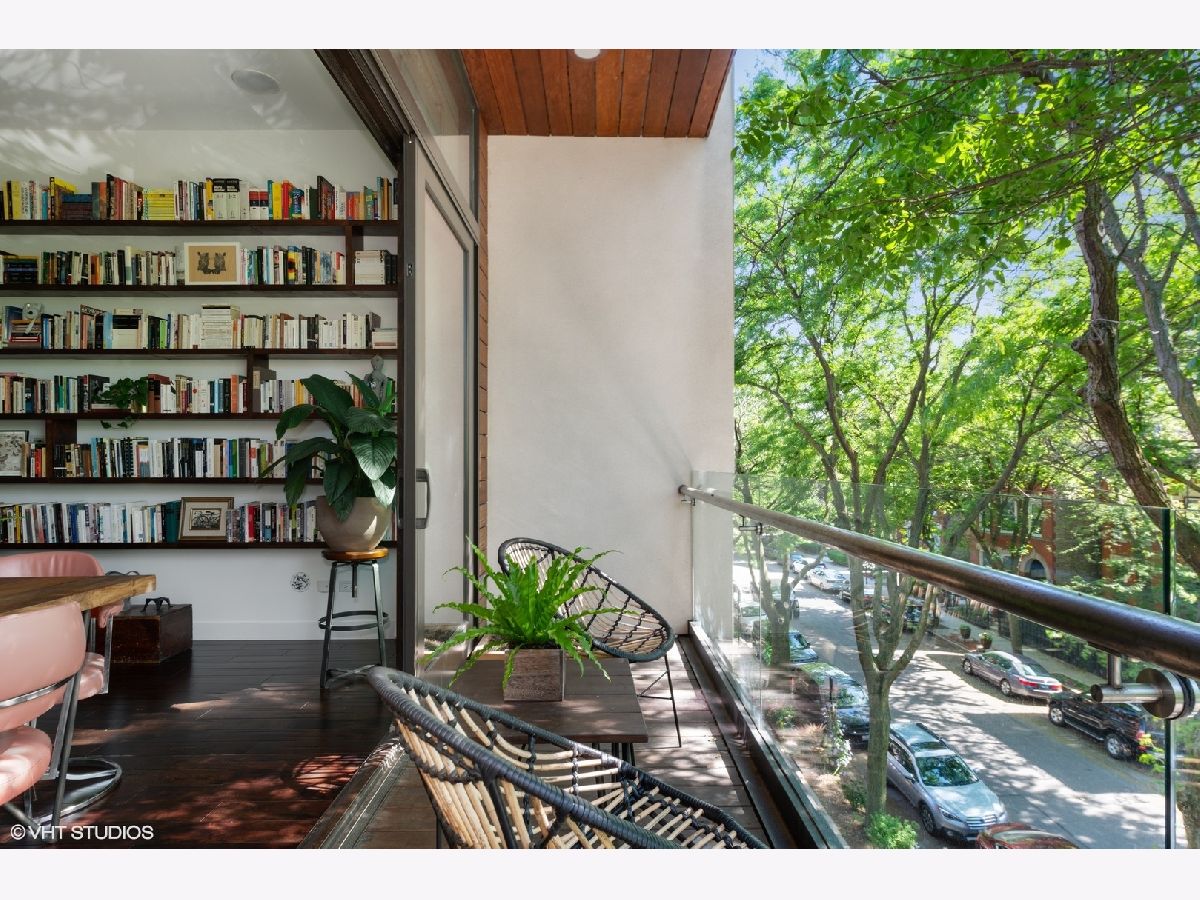 Don't miss out on this East Village stunner. Penthouse unit features 3 beds, 2 baths and three private outdoor spaces. The well appointed living space is not only open but well lit by beautiful floor to ceiling front windows. Custom shelves span the entire living room wall, open the sliding doors to the front balcony and have an outdoor extension of living space. Sleek and modern kitchen with thick quartz countertop and matching full slab backsplash overlooks the living/dining room making it a perfect space for entertaining. Down the hall will find the 2nd bedroom and guest bath ending with master suite. Spacious master is complete with a walk in closet and private balcony. Spa caliber master bath has dual vanities, XL steam shower and separate soak tub. Upstairs find third bed/flex space that can easily double as an office with direct access to a full rooftop deck. This rooftop oasis features skyline views, a built in wet bar, flower beds for gardening, and a separate stairway leading to the lower master bedroom balcony. A+ Location on tree lined street is steps to the dining/nightlife on both Chicago and Division plus easy blue line access.