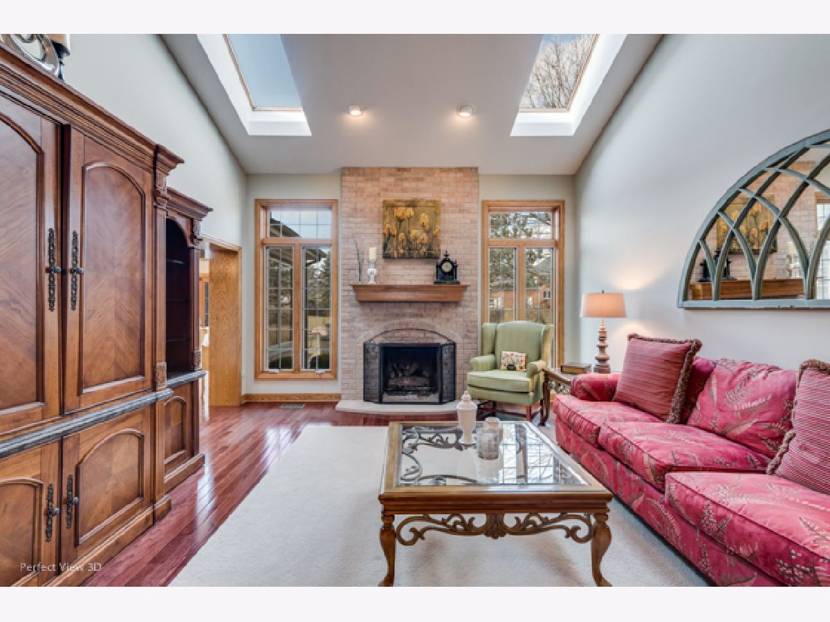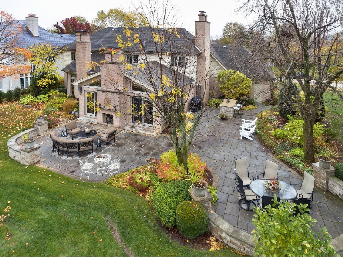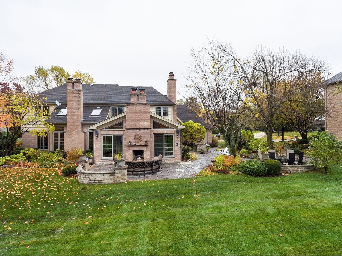 This universally appealing brick and cedar home welcomes guests with lush landscaping and impeccable attention to detail. New designer light fixtures offer a chic vibe throughout. The remodeled cook's kitchen overlooks the recently-added hearth room, which features vaulted wood ceilings, walls of windows, a fireplace, and access to the expansive bluestone patio. This hearth room has evolved into a cozy, comforting sanctuary to relax and refresh at day's end. Other features on the first floor include an office, and a family room with skylights, plus the traditional formal living and dining rooms, providing versatility and an open floor plan. The master suite has a fireplace, a large spa bathroom with excellent counter space and storage, and an expansive walk-in closet. Three more bedrooms and an additional full bath round out the 2nd floor. Downstairs is an entertainer's delight: a wide-open space anchored by a fireplace features a large sitting area, a pool table/game area, and a bar with both beverage and wine fridges. A full bathroom and additional bedroom room are ideal for inlaws or guests to enjoy their own private oasis. Outside boasts a newer bluestone paver patio with a built-in grill and outdoor fireplace, where unobstructed views in the backyard allow for perfect sunset-watching after a long day. The 3-car attached garage is an added bonus. Positioned on a gorgeous 1/2 acre property on a quiet street in Burr Ridge, this home is an idyllic retreat.