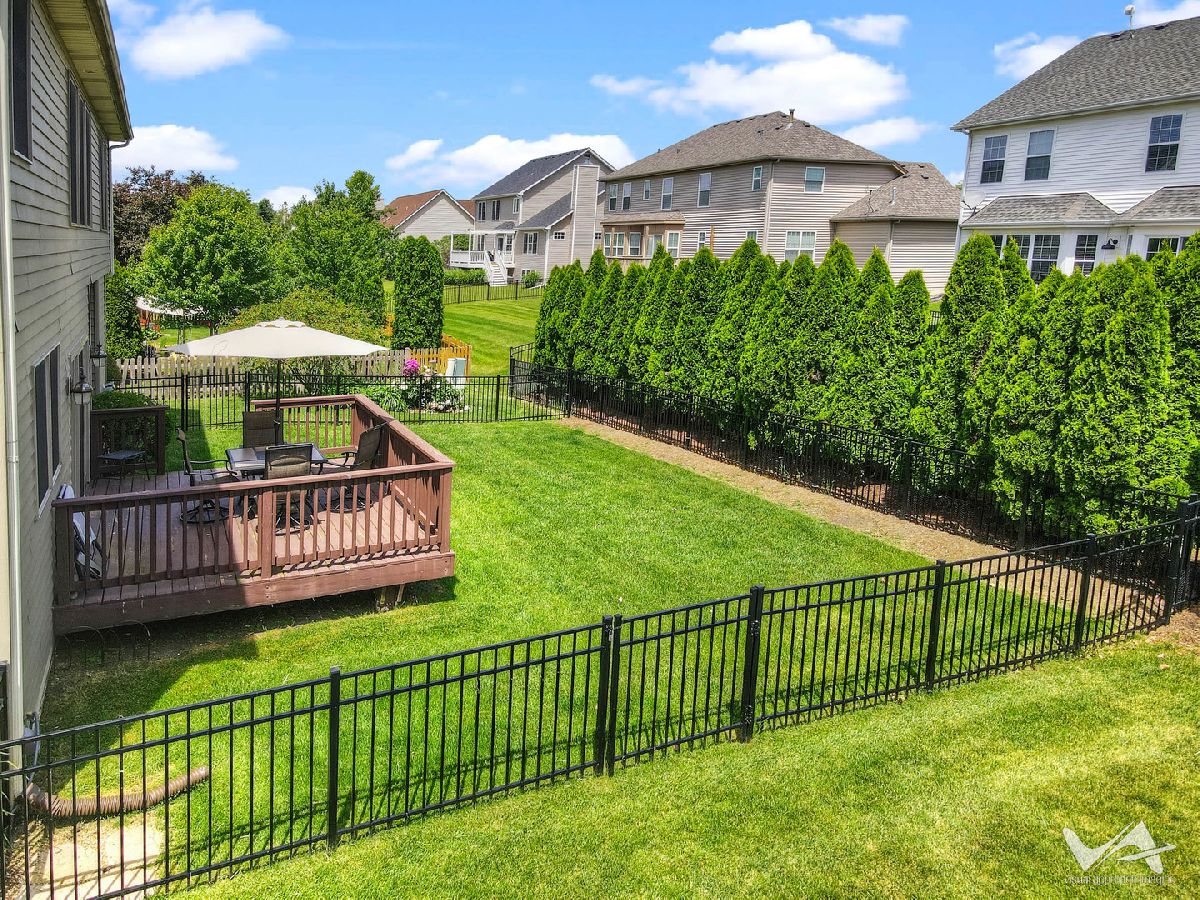 AMAZING CUSTOM BUILT HOME-WALKING DISTANCE TO BLACKBERRY CREEK ELEMENTARY SCHOOL! This lovely home is located in sought after Blackberry Creek boasting over 3500 sq ft! You will be welcomed home with this fabulous wrap around front porch. The main level has gleaming hardwood floors. The kitchen is a chef's dream with stainless steel appliances, breakfast island, planning desk, walk in pantry and granite countertops. Convenient first floor den off family room. Open floor plan with neutral decor. Spacious primary suite w/luxurious bath. Finished basement with large rec room and exercise room. Plenty of storage. Updates include: beautiful California Closets throughout, New Marvin sliding door, newer washer/dryer and finished basement. 2 car deep garage with side door. Basement is roughed in for bath. Brick paver driveway & walkway. Private fenced in yard with great deck. Minutes from METRA, I-88 Interchange, shopping, dining, tennis courts, parks, etc. Just move in and enjoy!