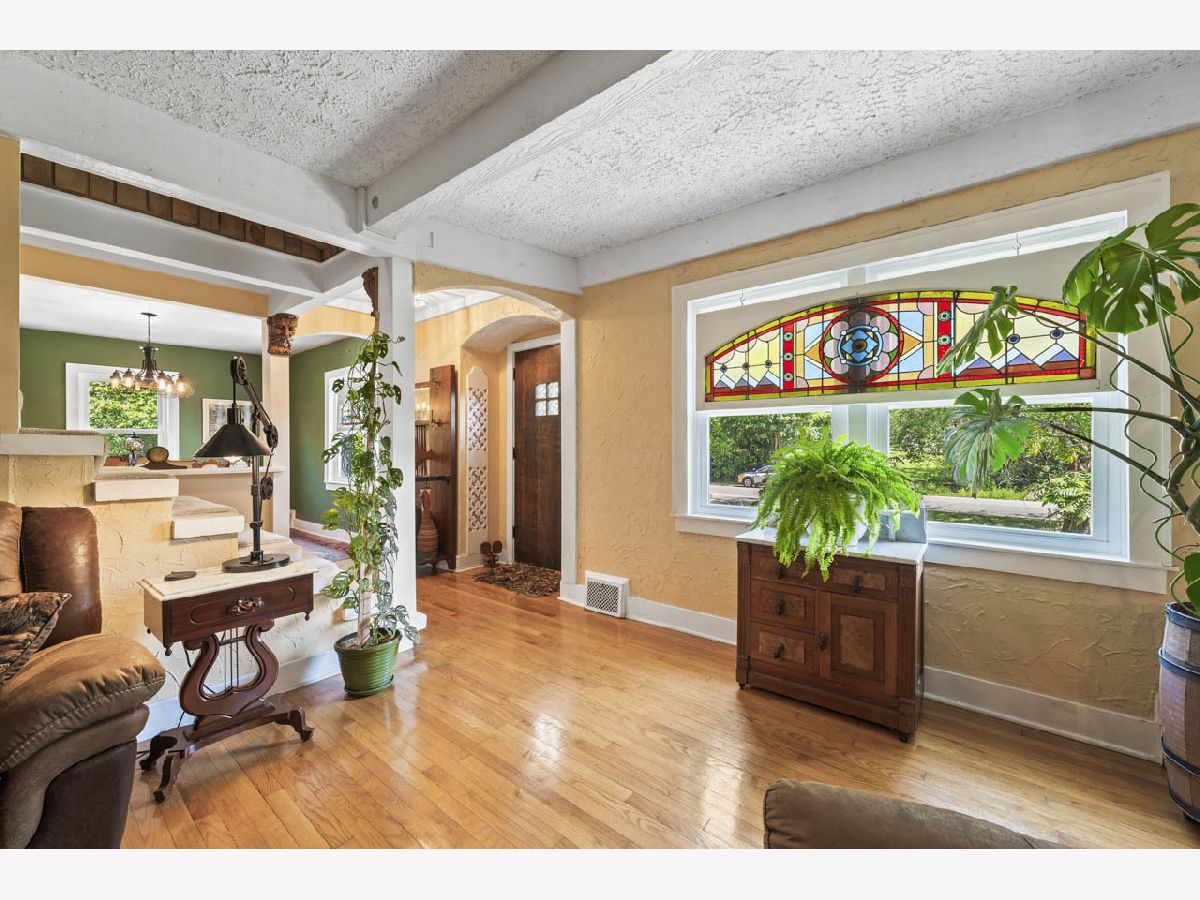 This unique and hidden ALL brick gem has been meticulously maintained by the long time owner and is situated perfectly on almost a 1/2 acre lot in the heart of Palatine. The beautiful lush green landscape offers plenty of mature trees and perennials that add to the beauty of the landscape. The minute you step inside you will fall in love with the charm of this beauty! Original and gleaming hardwood flooring flows throughout most of the main level. The inviting living room exudes warmth and features a gorgeous stone front gas log fireplace and beamed ceiling which is the ideal space to relax with your family and friends. The separate dining room is light and bright and flows seamlessly into the kitchen area. The eat-in kitchen offers ample cabinet and countertop space, stainless steel appliances and a pantry. Whether you are preparing a gourmet meal or a quick snack, the kitchen is sure to inspire your culinary creativity. The room at the back of the home offers versatile space for a family room, office or can serve as an additional bedroom. The choice is yours. Convenient half bath on the main level with a statement piece vanity. Head upstairs and find two spacious bedrooms with ceiling fans and an abundance of closet and storage space. There are hardwood floors under the carpeting. The full bathroom has a corner vanity providing optimum usable space and a tub/shower combination. The full, unfinished basement allows for plenty of storage space and houses the laundry area with utility sink - washer & dryer stay with the home. The outdoor space is like resort style living. The expansive side wood deck with cable railing and a gazebo is the perfect spot to enjoy your morning cup of coffee or relax and unwind in the evening after a long day. The detached brick 3 car tandem garage offers so much space to park your vehicles, toys, etc... There is an entire second floor above the garage accessible by a staircase behind the garage for storage space or can be finished out to serve as a man-cave, recreation room or teenagers hangout spot! You will also enjoy the screened in porch on the side of the garage - furniture can stay. Public sewer and water but well is still in place for watering the yard. New water heater in 2024 and new windows on the main level in 2020. This home truly has it ALL and the property itself offers peace and serenity. The lot next door is not part of the property. Such an ideal location close to Northwest Highway with plenty of shopping, dining and entertainment options. Excellent school system and close to the Robert "Dutch" Schultz Recreation Area the 20 acre park with a trail system, outdoor basketball, tennis and picnic spots, Palatine Hills Golf Course and more! Schedule your showing today!
