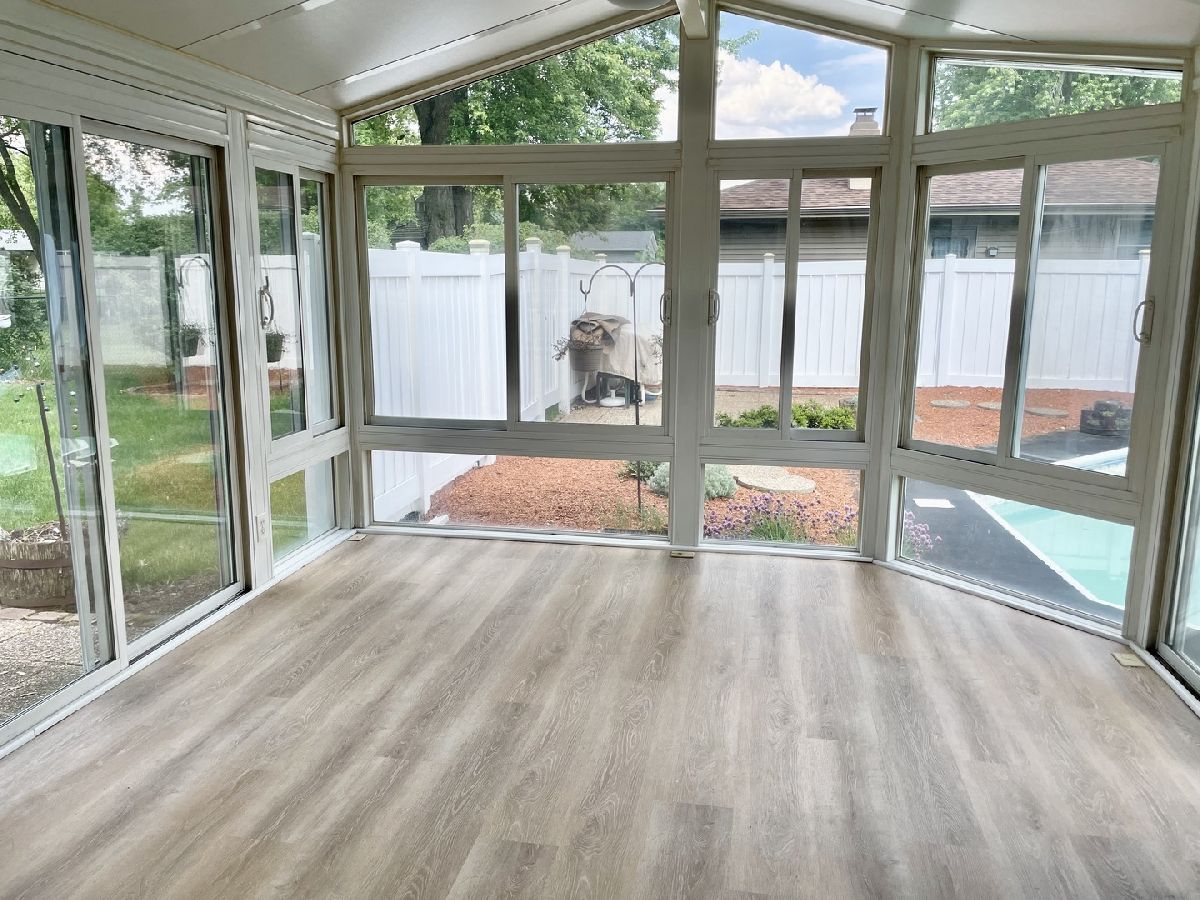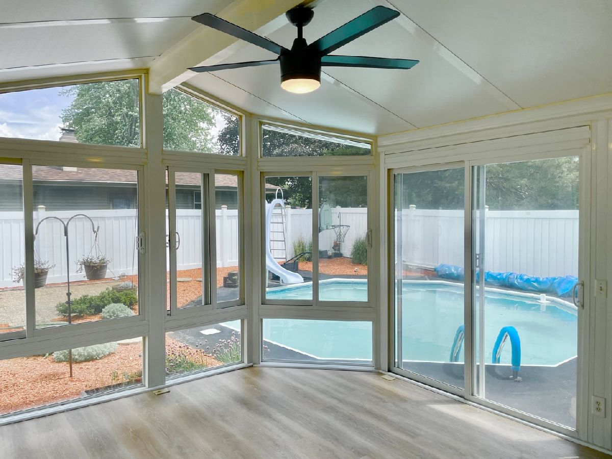 This 3 bed, 2.5 bath house is fully updated and ready for you to make your home! Enjoy a family room with bay window, eat-in kitchen w/ quartz countertops, brand new stainless steel appliances, and white cabinets that leads to a beautiful 4 four season room (heat and AC unit for this room), a primary bedroom w/ attached half bath, 2 additional bedrooms on the main floor w/ full bath w/ quartz counters. The finished basement includes a large rec space, 2nd full bathroom, and additional flex room. Outside enjoy an in-ground pool w/ privacy fence and additional fenced yard space for tons of fun! Agent owned.