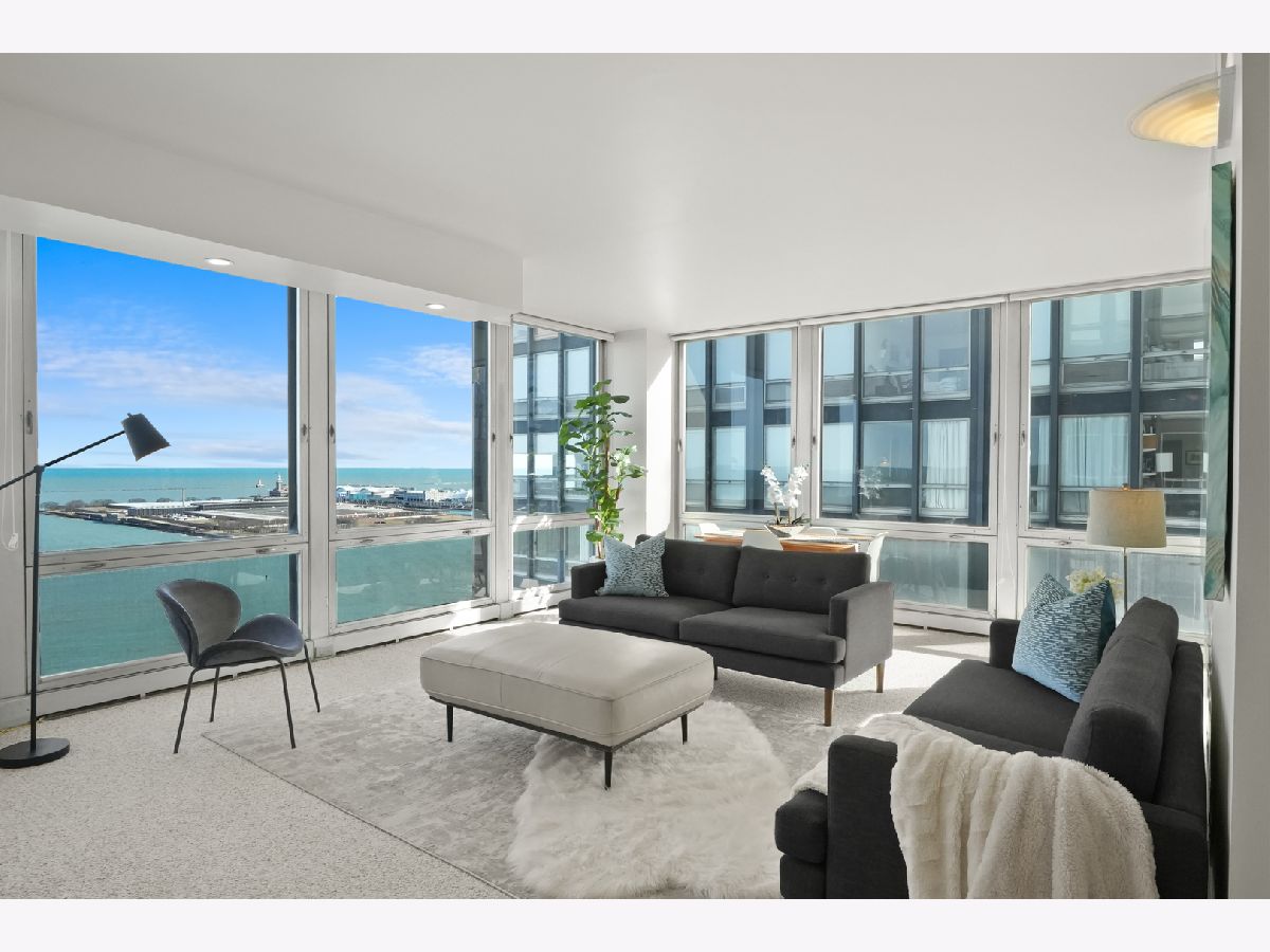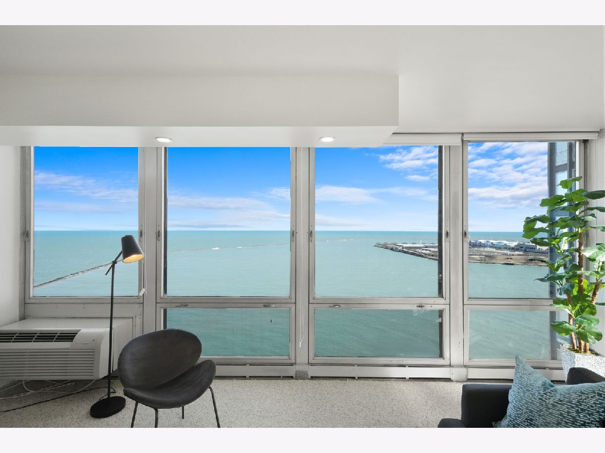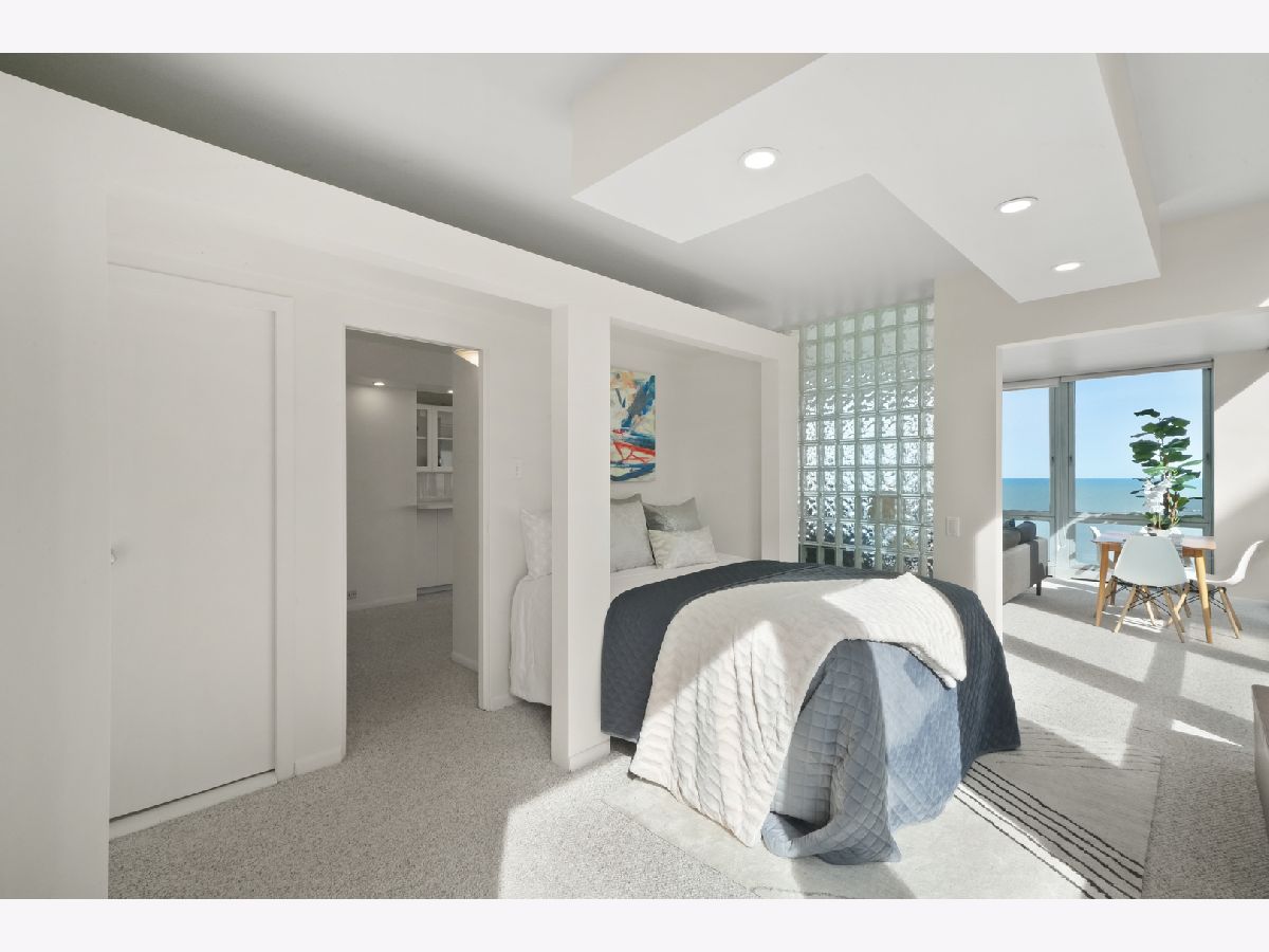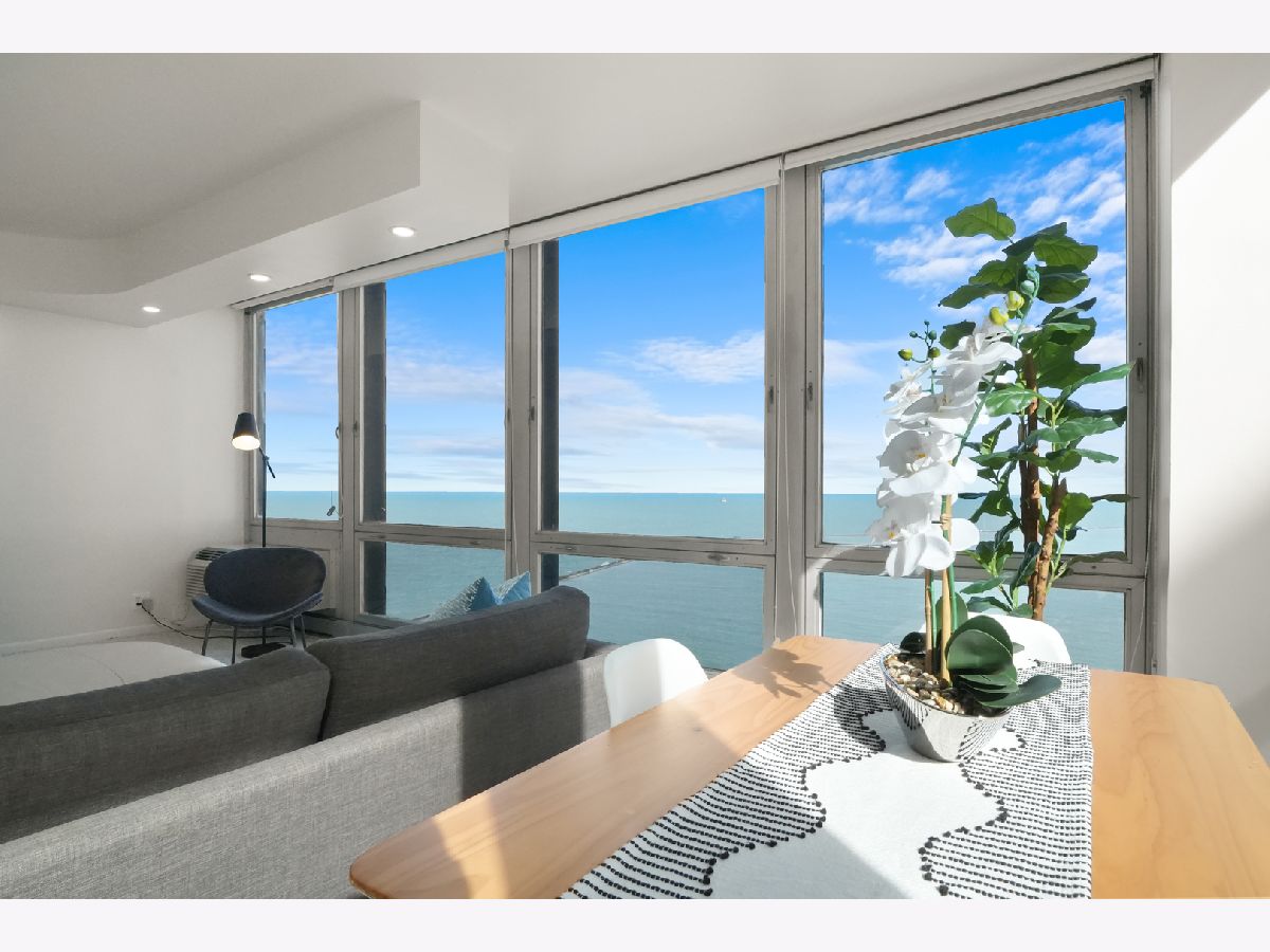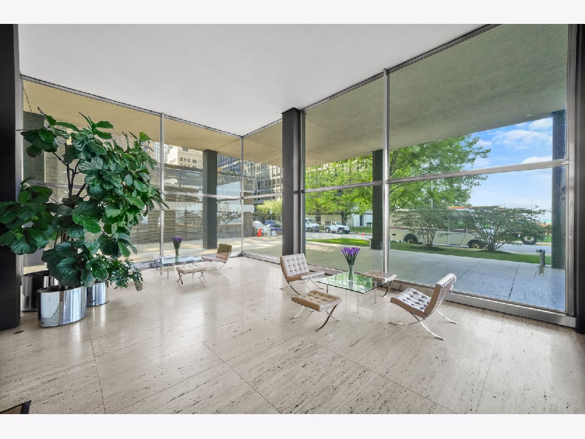 Experience this prime southeast corner 1-bedroom, 1-bathroom residence in a landmark co-op designed by Mies van der Rohe. With breathtaking wraparound views of Lake Michigan, Navy Pier, and the Chicago skyline, this sun-filled home is a rare find. The spacious living room features floor-to-ceiling windows and elegant glass block accent walls, creating an open and airy ambiance. The bright white kitchen and sleek bathroom, complete with a jetted tub and thick glass door, add a touch of luxury. Additional highlights include solar blinds throughout, custom recessed lighting, ample closet space, high-end Berber carpeting, and entire unit freshly painted (March 2025) Located in the prestigious Streeterville neighborhood, you'll be just steps from fine dining, luxury shopping, cultural attractions, and renowned educational and medical institutions. This mid-century modern masterpiece offers timeless elegance-with taxes included in the assessments.