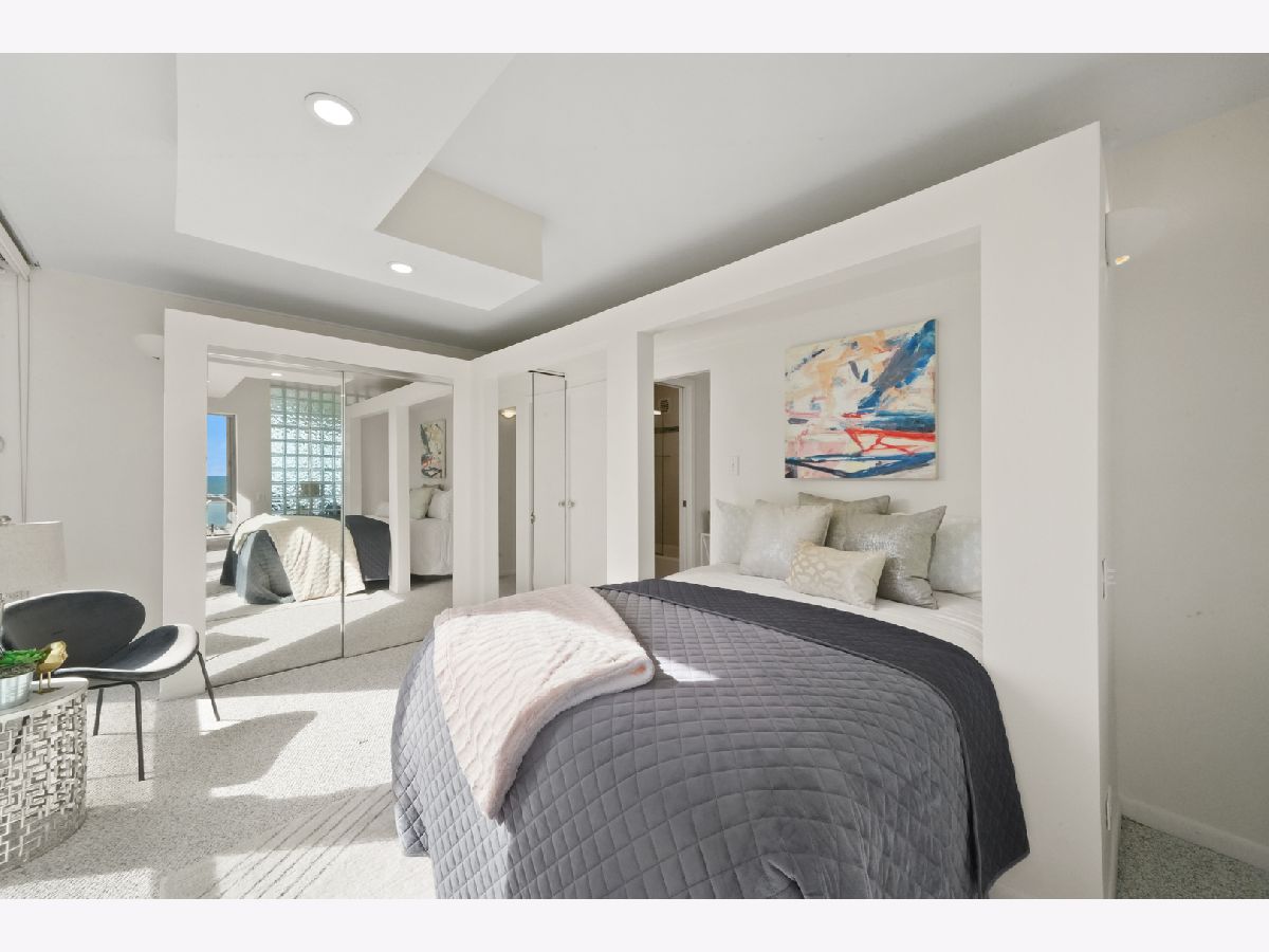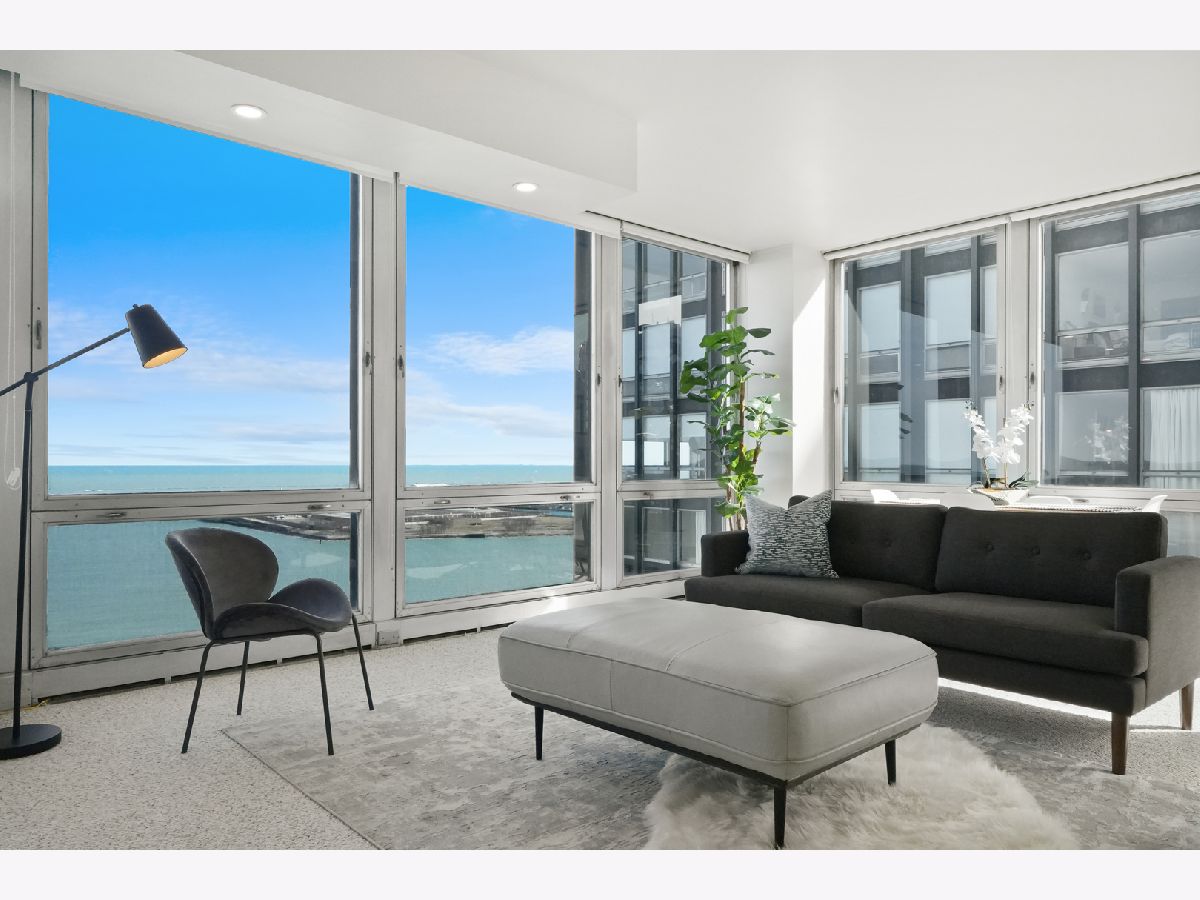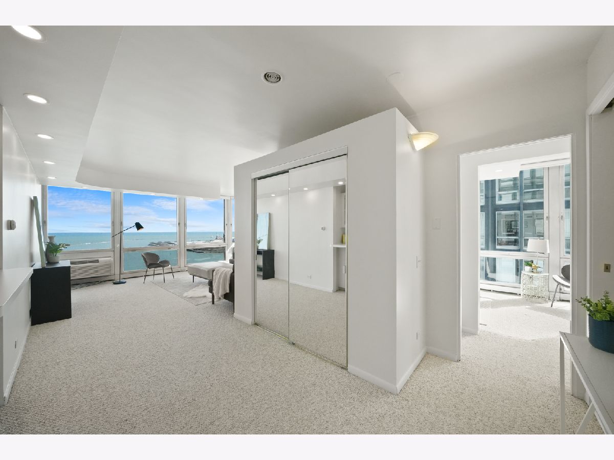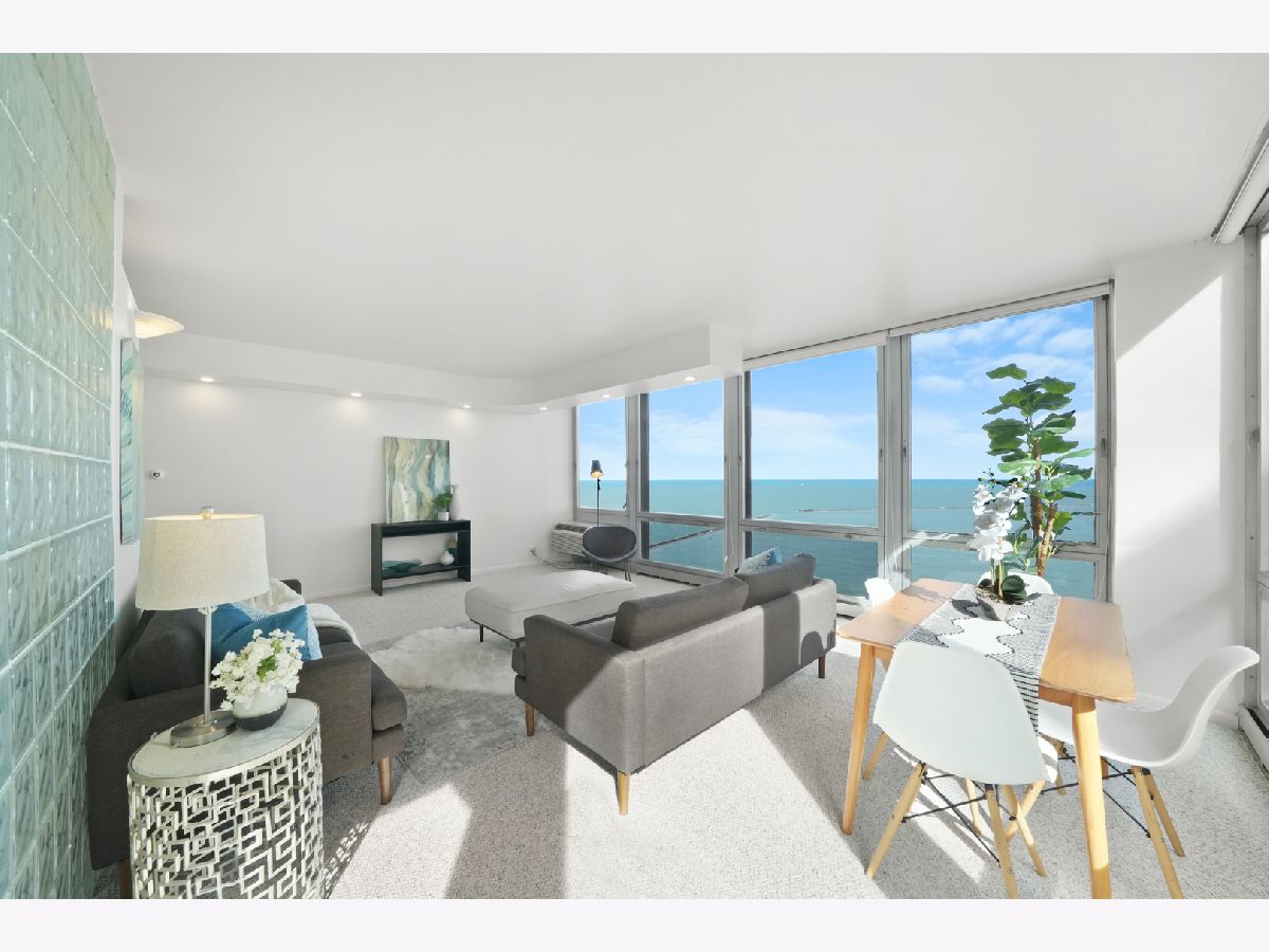 Experience this prime southeast corner 1-bedroom, 1-bathroom residence in a landmark co-op designed by Mies van der Rohe. With breathtaking wraparound views of Lake Michigan, Navy Pier, and the Chicago skyline, this sun-filled home is a rare find. The spacious living room features floor-to-ceiling windows and elegant glass block accent walls, creating an open and airy ambiance. The bright white kitchen and sleek bathroom, complete with a jetted tub and thick glass door, add a touch of luxury. Additional highlights include solar blinds throughout, custom recessed lighting, ample closet space, high-end Berber carpeting, and entire unit freshly painted (March 2025) Located in the prestigious Streeterville neighborhood, you'll be just steps from fine dining, luxury shopping, cultural attractions, and renowned educational and medical institutions. This mid-century modern masterpiece offers timeless elegance-with taxes included in the assessments.