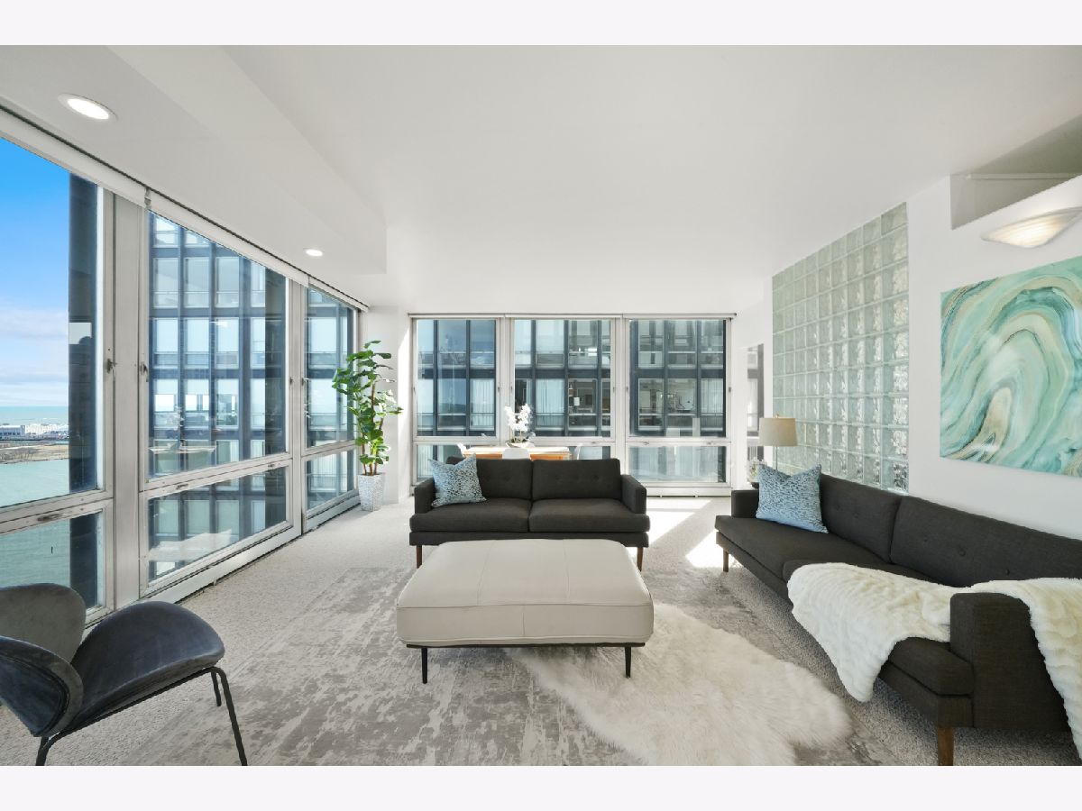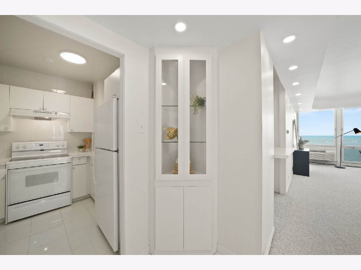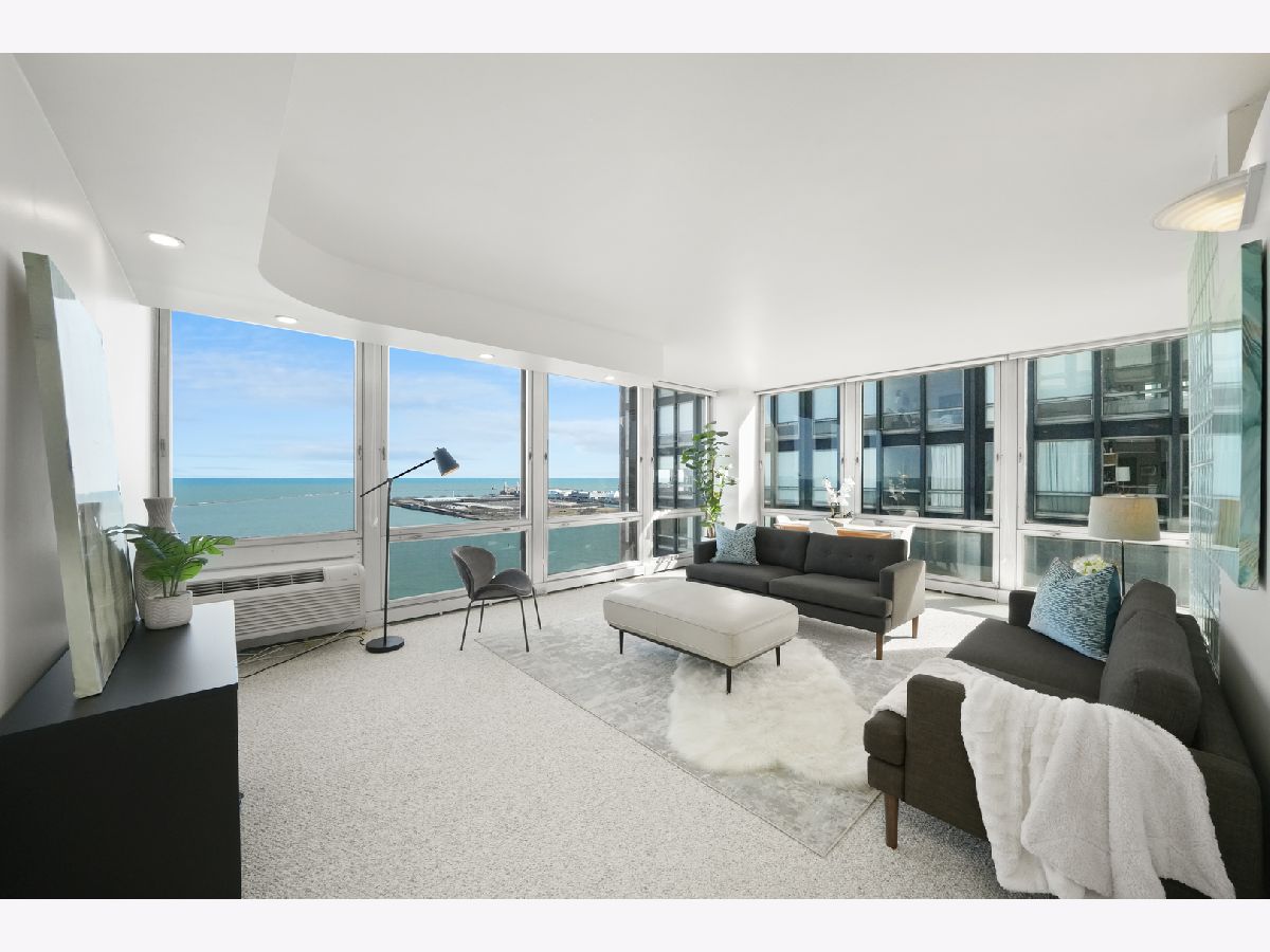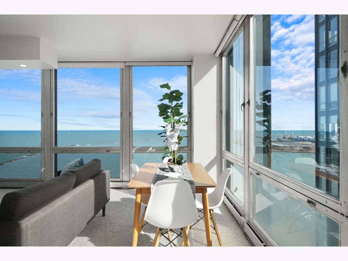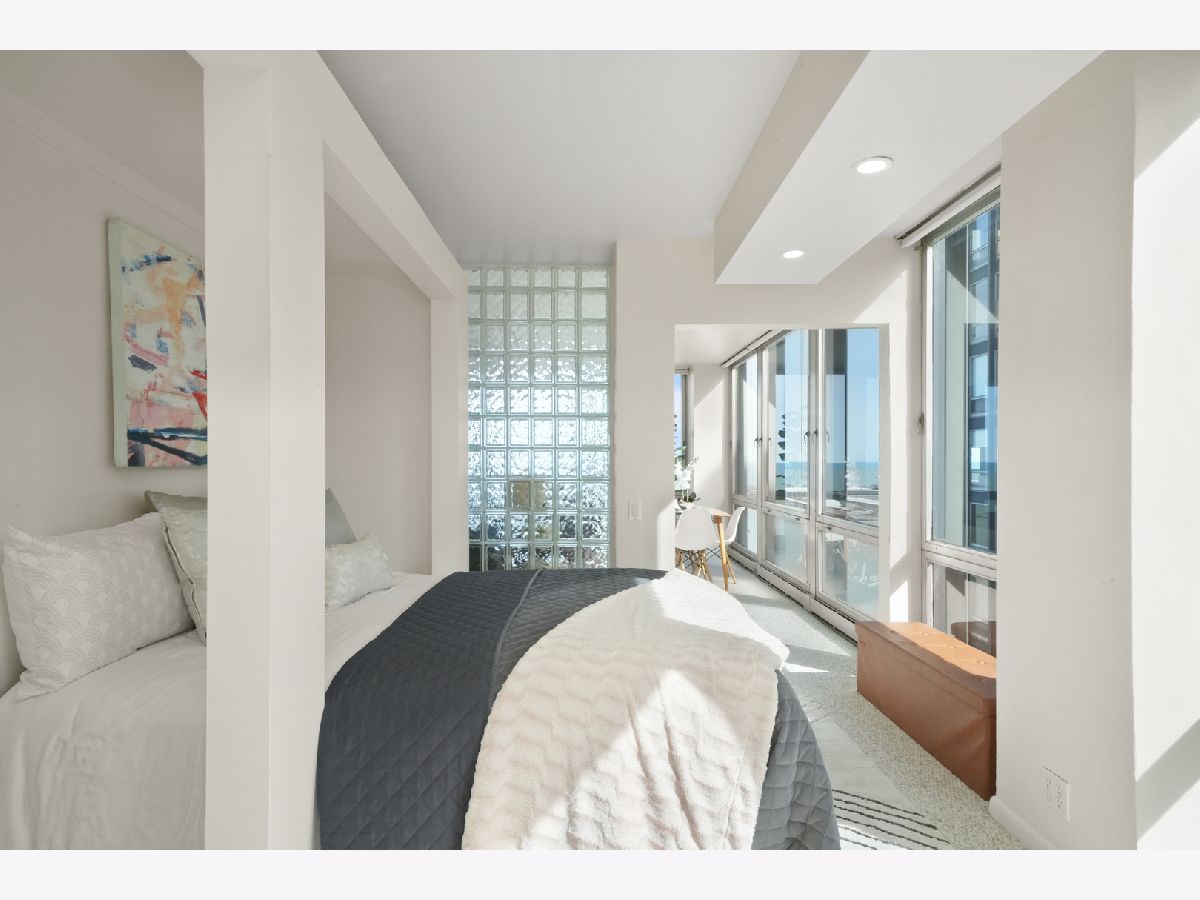 Experience this prime southeast corner 1-bedroom, 1-bathroom residence in a landmark co-op designed by Mies van der Rohe. With breathtaking wraparound views of Lake Michigan, Navy Pier, and the Chicago skyline, this sun-filled home is a rare find. The spacious living room features floor-to-ceiling windows and elegant glass block accent walls, creating an open and airy ambiance. The bright white kitchen and sleek bathroom, complete with a jetted tub and thick glass door, add a touch of luxury. Additional highlights include solar blinds throughout, custom recessed lighting, ample closet space, high-end Berber carpeting, and entire unit freshly painted (March 2025) Located in the prestigious Streeterville neighborhood, you'll be just steps from fine dining, luxury shopping, cultural attractions, and renowned educational and medical institutions. This mid-century modern masterpiece offers timeless elegance-with taxes included in the assessments.