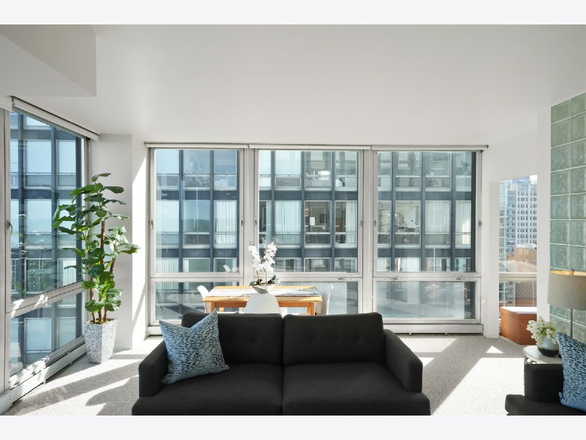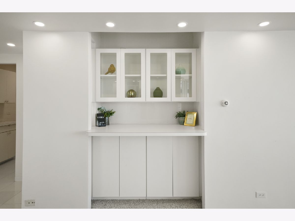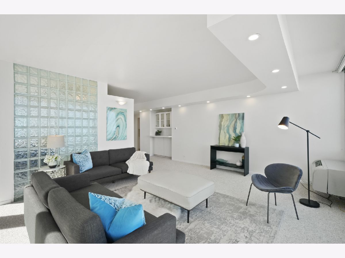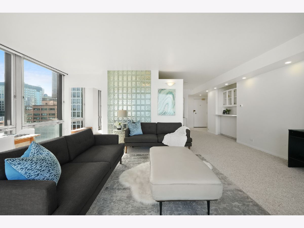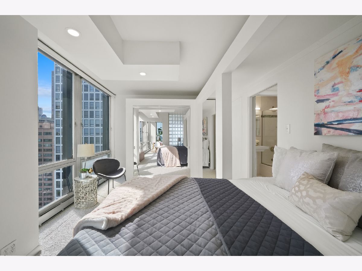 Experience this prime southeast corner 1-bedroom, 1-bathroom residence in a landmark co-op designed by Mies van der Rohe. With breathtaking wraparound views of Lake Michigan, Navy Pier, and the Chicago skyline, this sun-filled home is a rare find. The spacious living room features floor-to-ceiling windows and elegant glass block accent walls, creating an open and airy ambiance. The bright white kitchen and sleek bathroom, complete with a jetted tub and thick glass door, add a touch of luxury. Additional highlights include solar blinds throughout, custom recessed lighting, ample closet space, high-end Berber carpeting, and entire unit freshly painted (March 2025) Located in the prestigious Streeterville neighborhood, you'll be just steps from fine dining, luxury shopping, cultural attractions, and renowned educational and medical institutions. This mid-century modern masterpiece offers timeless elegance-with taxes included in the assessments.