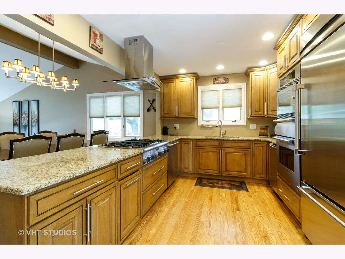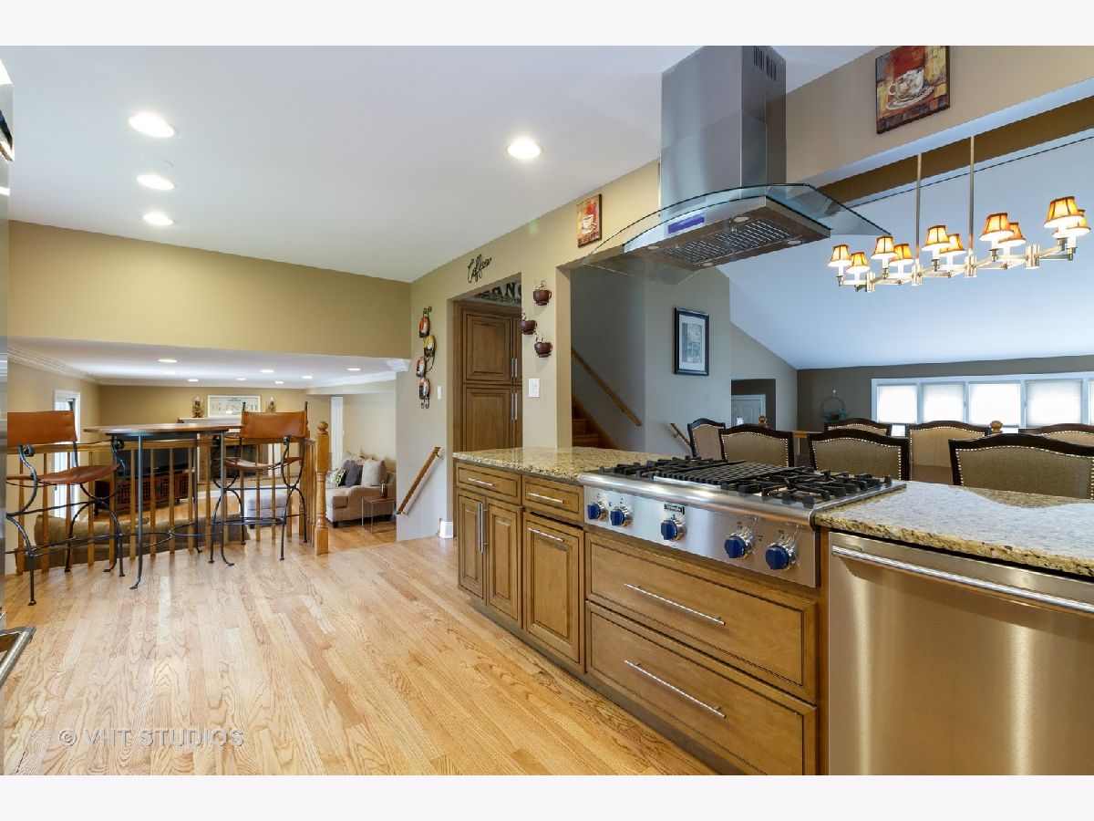 Updated Throughout! Beautiful 4 bed, 3 full baths, on a 1/3 acre lot in beautiful Palos Hills. Home features plenty of natural light and plenty of living space. BRAND NEW Hardwood floors in Dining, Family Room and Kitchen. Open Concept, with updated Chefs kitchen that features stainless steel appliances, custom cabinets, granite counters with cook top and range hood, island that is shared between kitchen and dining room. Hot Water Heater, AC and Furnace all 2018! Massive family with fireplace, overhead canned lighting, that can fit most any layout desired. Master Suite has plenty of closet space, updated shower and vanity with quartz counters. Spacious bedrooms with good closet space, tastefully done newer wood laminate flooring. Updated Hall bath with double sink, updated vanity and quartz counters. First floor full bath with updated vanity and good storage. Separate Laundry with Newer washer and Dryer. Finished basement with great size recreation room, as well as separate storage room too. Concrete crawl for additional storage space. Huge deck off of the family room that leads out to spacious fenced yard.