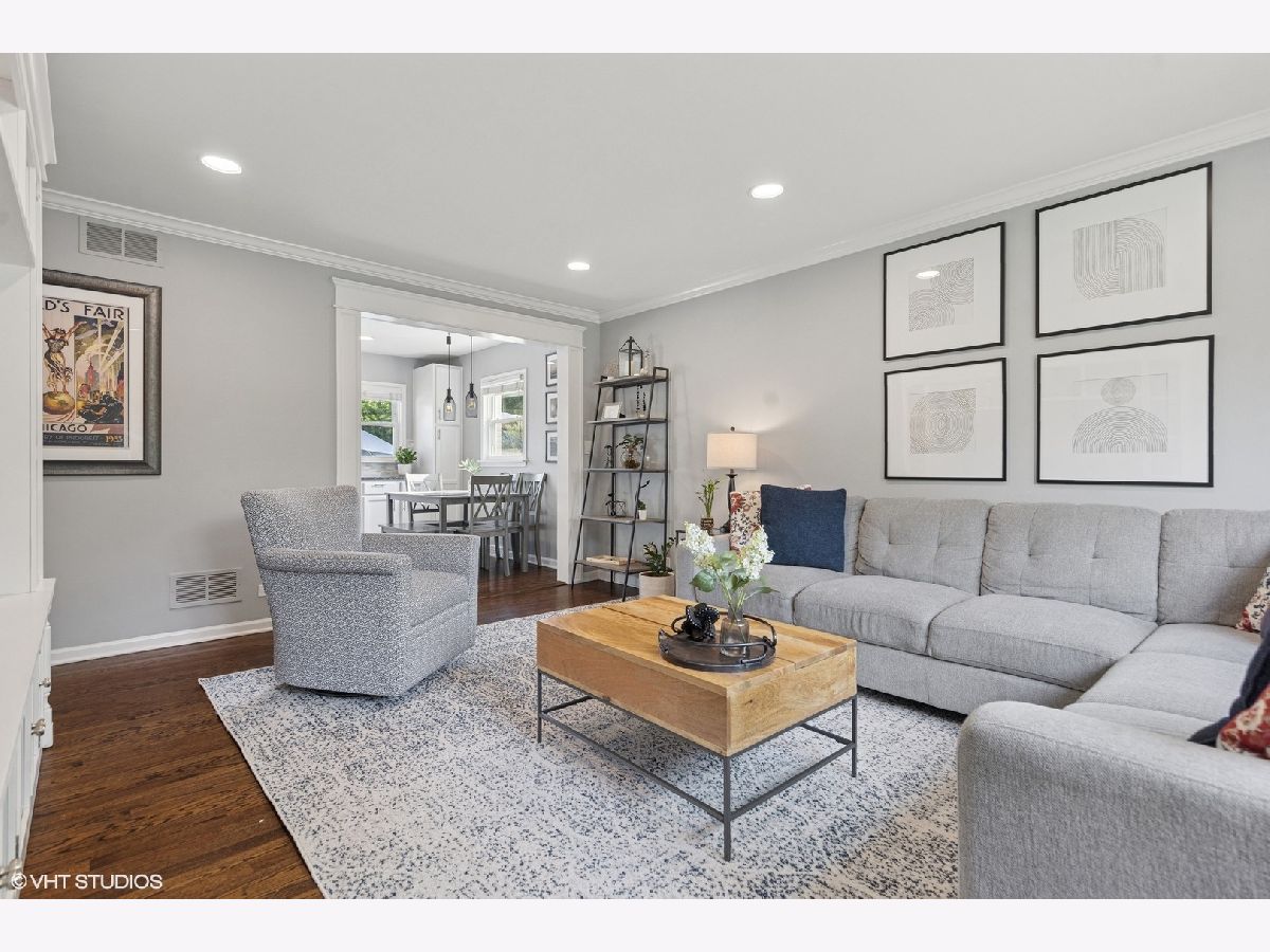 Don't miss this beautifully updated in-town ranch, just a short stroll to the heart of downtown Glen Ellyn and Lake Ellyn Park. With over 1,900 square feet of finished living space, this home is all about comfort and style. The living room is super bright and welcoming due to lots of natural light, crown molding and hardwood floors. The kitchen is fully updated with granite countertops, new stainless steel appliances and hardwood flooring, plenty of cabinets- plus, there's a cozy spot for dining. Completing the first floor are three good-sized bedrooms and a remodeled full bath. Venture to the lower level to find a high quality finished space that includes a family room with accent wall, second updated full bathroom, dedicated office area, laundry room and plentiful storage options. The oversized yard with white picket fencing and 2.5 car garage are not to be missed! Additional updates include newer roof, siding, landscaping, closet organizers, tankless hot water heater, can lights, carpeting and more! Whether you're looking for modern upgrades or a prime location within blocks of town and Ben Franklin elementary and Glenbard West high school, this home is a great pick for enjoying everything Glen Ellyn has to offer! Pictures available Monday June 9.