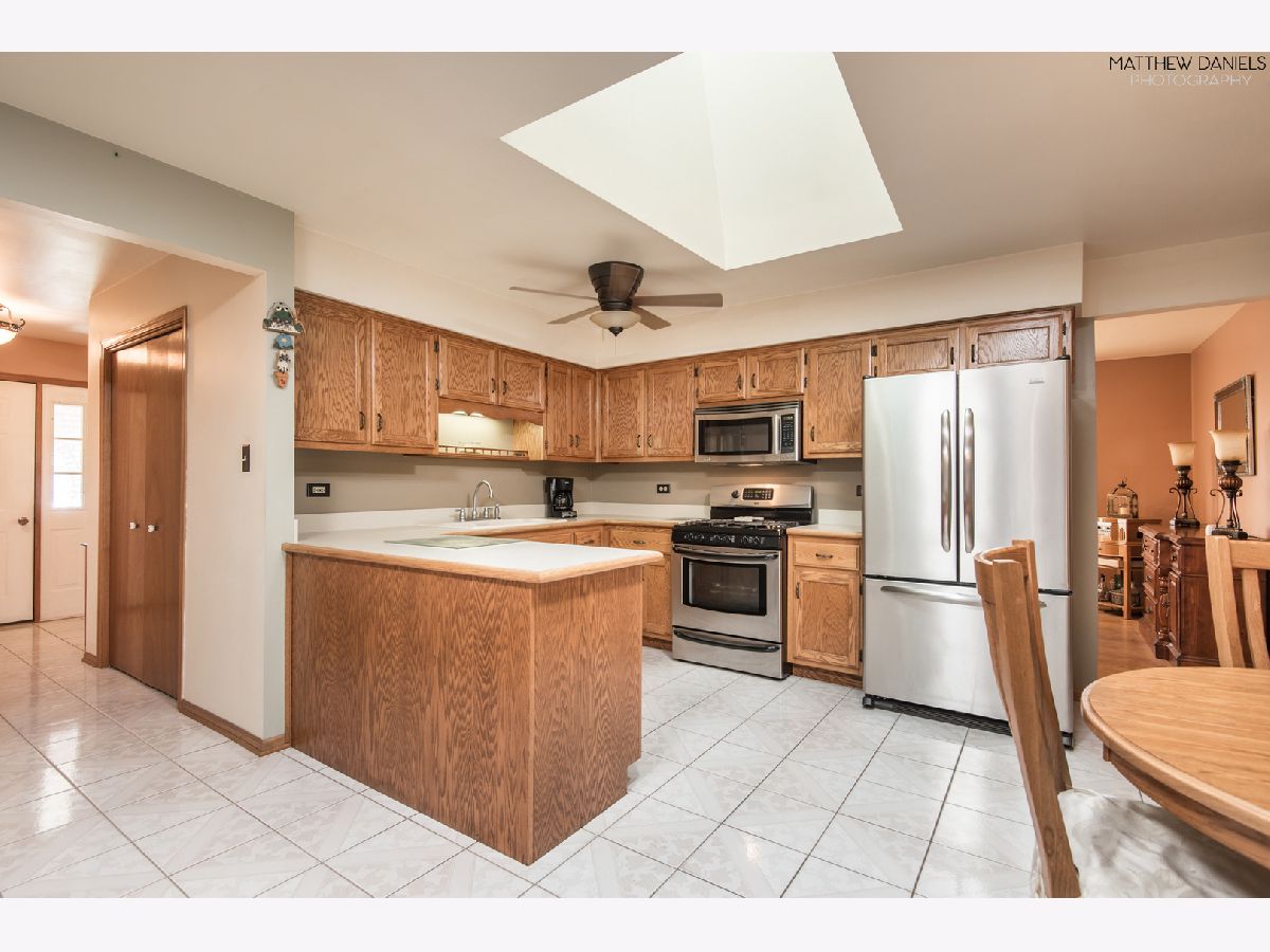 Beautiful 3-step ranch home very well maintained by original owners! Located within sought after Orland School District 135 & District 230 (Carl Sandburg High School). Main level welcomes you into sunny L-shaped living room and dining room. Kitchen w/ skylight, stainless steel appliances & large 4'x4' walk-in pantry opens up to family room w/ brick fireplace (features outside cleanout). Upper level offers 3 generous sized bedrooms with lots of closet space and 2 full bathrooms (one with a Whirlpool tub). Basement is partially finished with oversized laundry room and a custom dry bar - perfect for entertaining! Spacious backyard has patio & shed. 2 car attached garage. Updates over the past few years include: Windows (2017), Roof (2015), Hardwood Floors (2012). Seller is including up to a $500 Home Warranty! This prime location is near plenty of shopping, restaurants & entertainment! Move-In Ready!