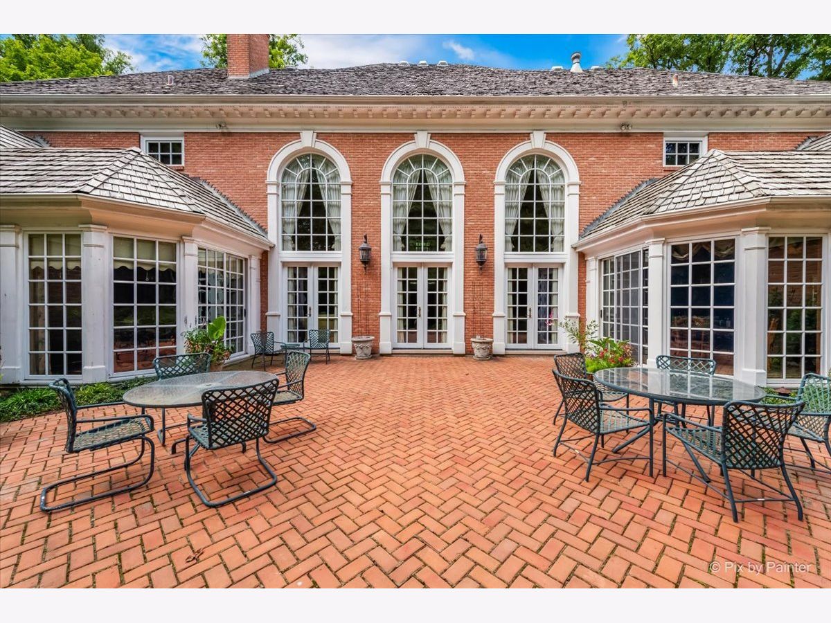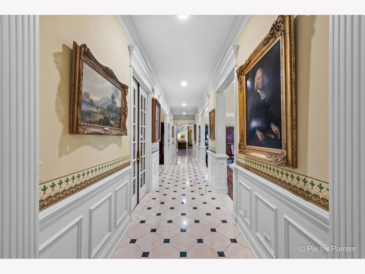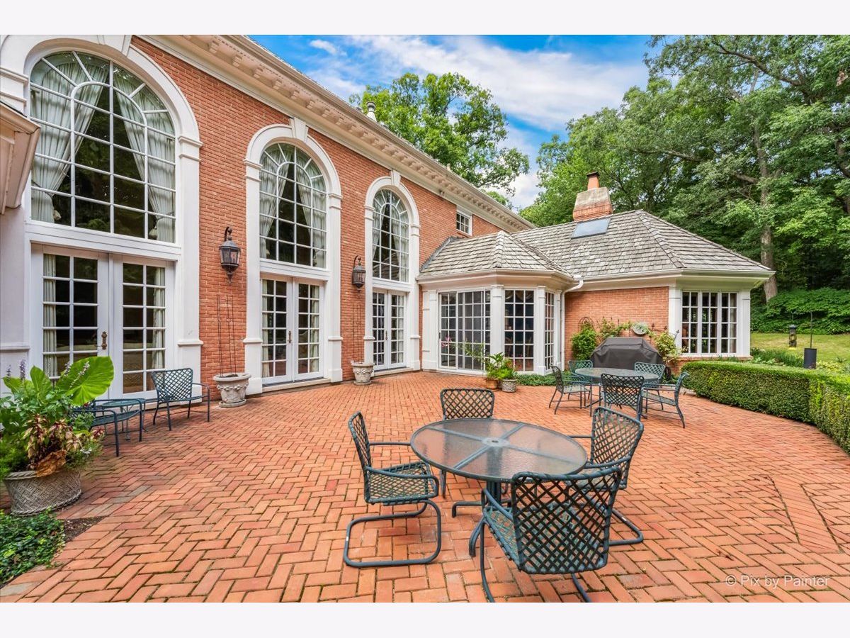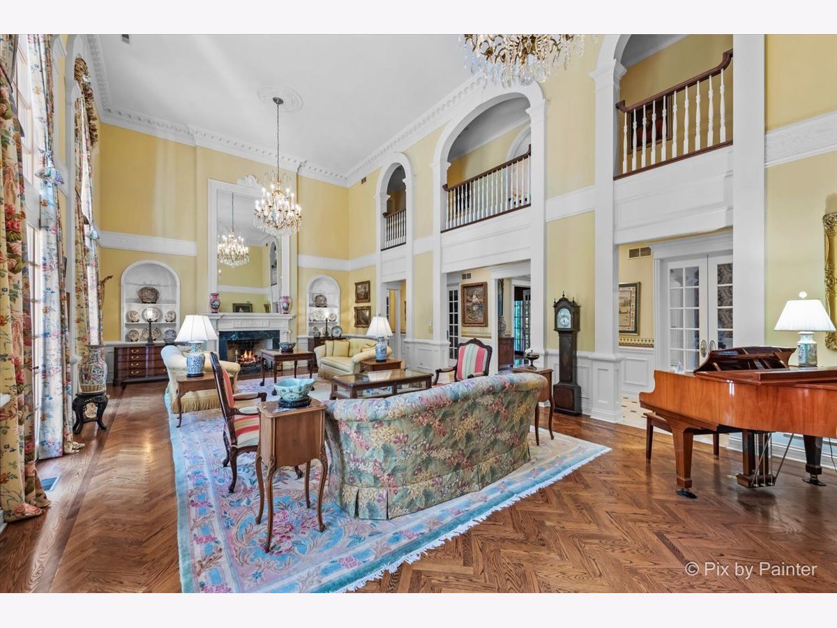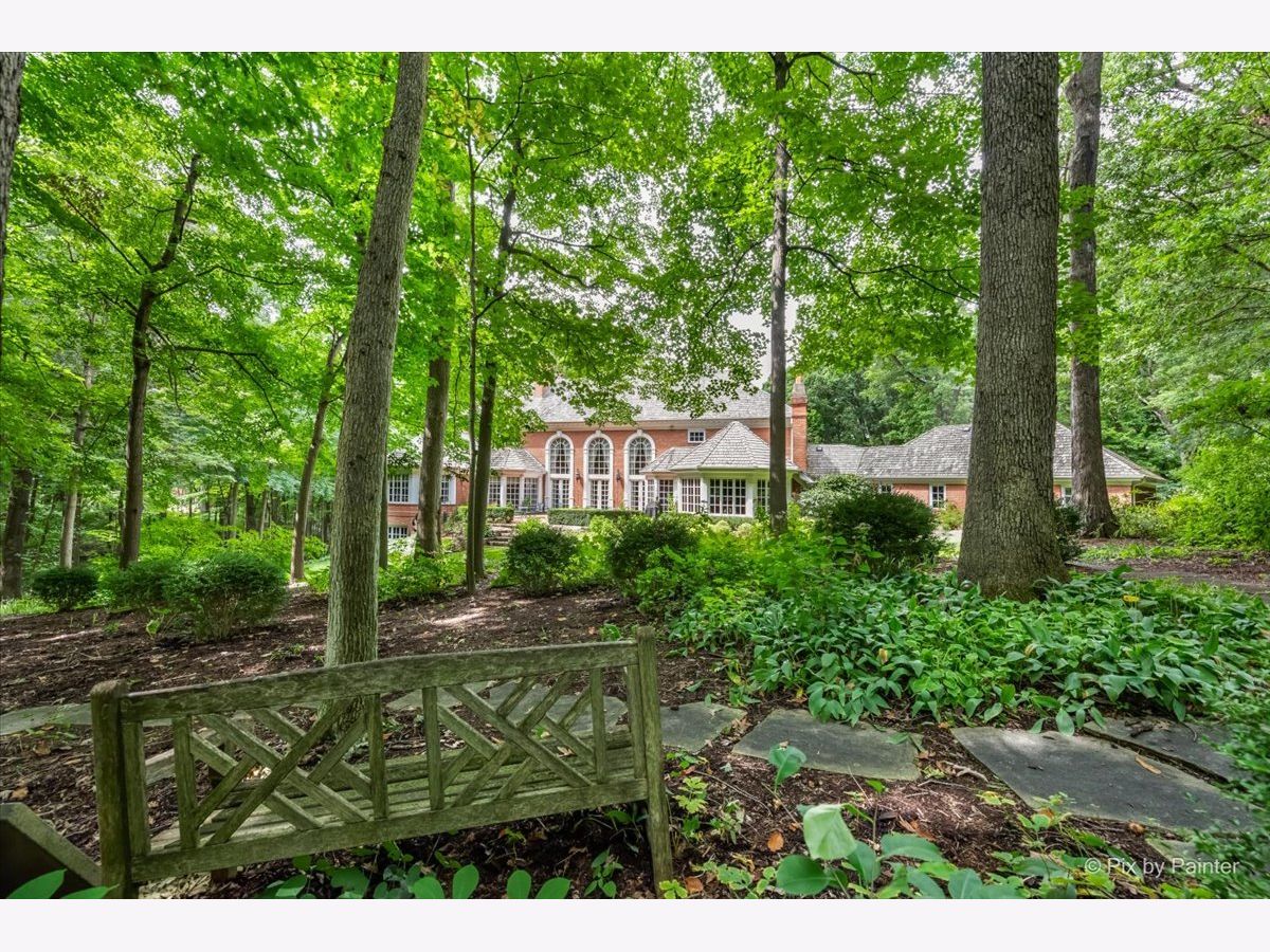 This exquisite Georgian estate, crafted by Harrison Construction in collaboration with architects Spitzmiller and Norris, is nestled on a remarkable 4.47-acre lot in the prestigious Woods of Fox Glen. Handpicked by Harrison, the visionary behind the community, this residence offers unparalleled privacy, enhanced by a picturesque 1/4-mile driveway that welcomes you into a serene landscape surrounded by mature trees. As you approach the home, the classic Georgian architecture captivates with its elegant brick facade, intricate cornices, stately columns, and finely detailed plinth bases. Step inside to a grand two-story foyer adorned with marble flooring, setting the tone for the stunning interior that showcases the hallmark features of high Georgian design, emphasizing symmetry and proportion. The home boasts nearly 10,000 square feet of luxurious living space, with ornate wood mouldings and trim throughout, soaring 10-foot ceilings on the main level, and two elegantly crafted staircases. The private library is a standout, featuring a coffered ceiling, rich cherry wood accents, and a mantel imported from England, complemented by custom built-in bookshelves. The formal dining room is designed for hosting, with floor-to-ceiling windows and a cozy fireplace, seamlessly connecting to the gourmet kitchen through tasteful dividing doors for effortless entertaining. The grand two-story living room exudes sophistication, showcasing herringbone wood floors, dramatic chandeliers, and a stunning array of windows that bathe the space in natural light. Three sets of French doors lead to a charming brick paver patio, perfect for outdoor gatherings. Culinary enthusiasts will delight in the gourmet kitchen, complete with expansive granite countertops, a custom pantry, 42-inch cherry cabinets, and a peninsula with a prep sink. A cozy family room adjacent to the kitchen features a custom skylight inspired by Victor Hugo's Parisian home, along with bay windows and a fireplace framed by built-in shelves. The tranquil main-level master suite offers a serene retreat, complete with a sitting area, abundant natural light, his and hers walk-in closets, and a luxurious ensuite bath featuring dual vanities, a whirlpool tub, and a separate shower. Upstairs, four generously sized bedrooms each boast private ensuite baths, while the walk-out basement offers additional living space, including a family room with a double-sided fireplace, a full kitchen, a game room, two bedrooms, and ample storage. Outdoors, nature lovers will find a paradise with expansive patios, lush greenspaces adjacent to scenic walking paths, and enchanting English gardens, perfect for peaceful strolls and relaxation. This estate combines luxury living with the beauty of nature, creating an unparalleled sanctuary. *Please do not enter the property without a confirmed appointment*