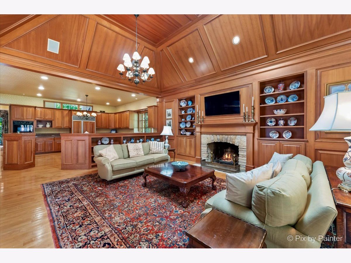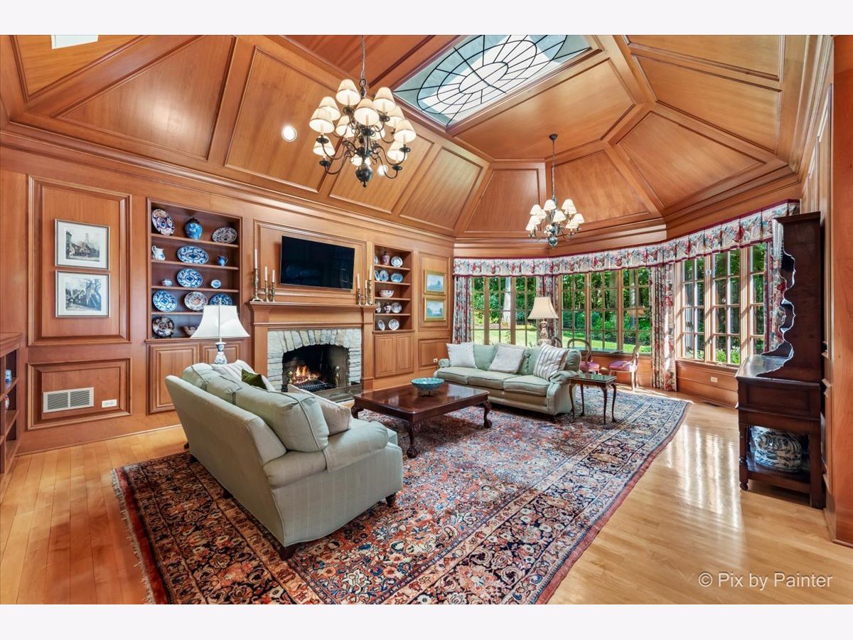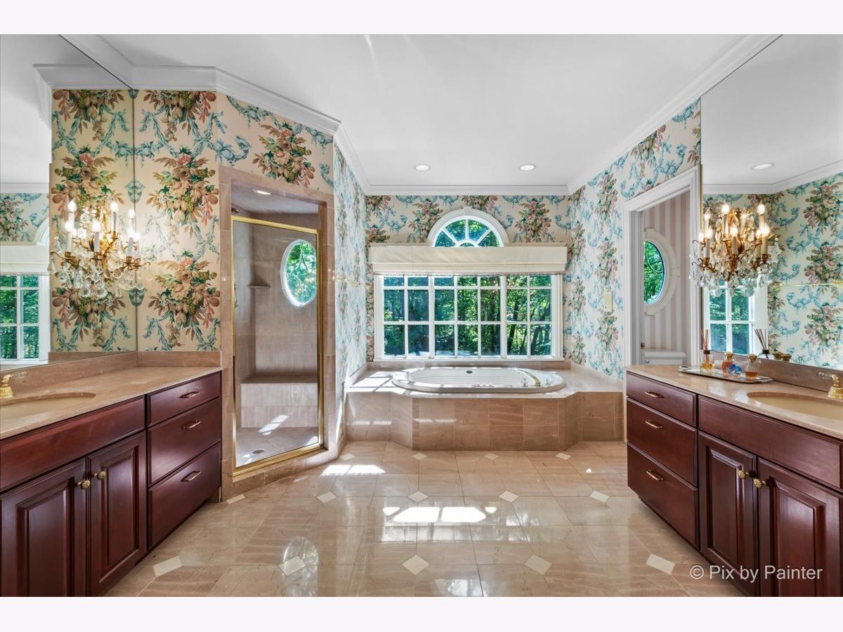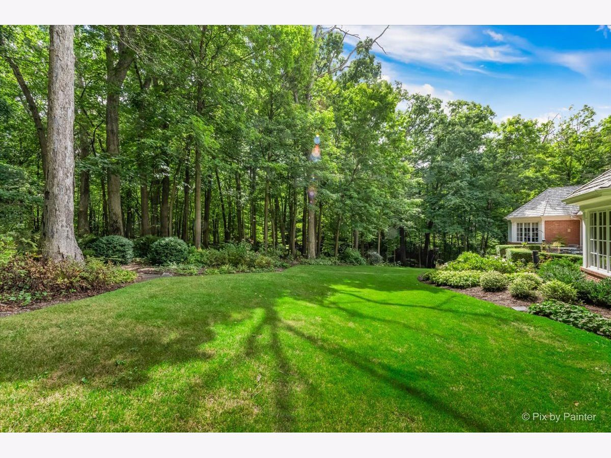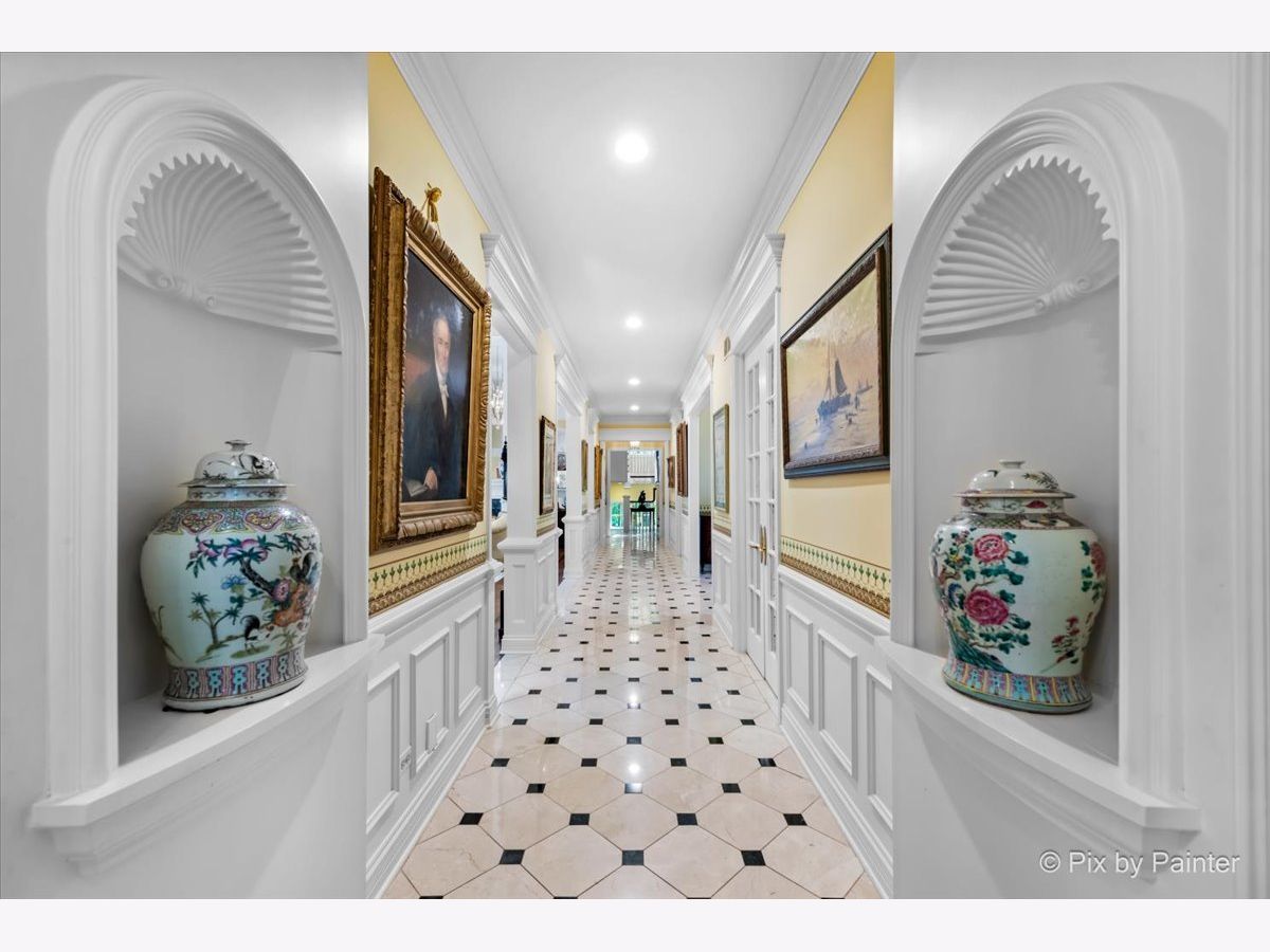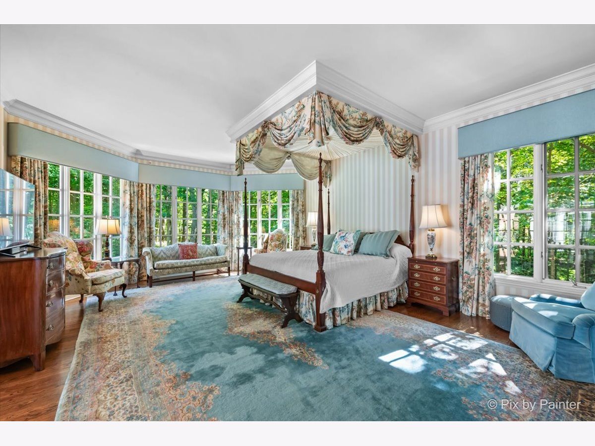 This exquisite Georgian estate, crafted by Harrison Construction in collaboration with architects Spitzmiller and Norris, is nestled on a remarkable 4.47-acre lot in the prestigious Woods of Fox Glen. Handpicked by Harrison, the visionary behind the community, this residence offers unparalleled privacy, enhanced by a picturesque 1/4-mile driveway that welcomes you into a serene landscape surrounded by mature trees. As you approach the home, the classic Georgian architecture captivates with its elegant brick facade, intricate cornices, stately columns, and finely detailed plinth bases. Step inside to a grand two-story foyer adorned with marble flooring, setting the tone for the stunning interior that showcases the hallmark features of high Georgian design, emphasizing symmetry and proportion. The home boasts nearly 10,000 square feet of luxurious living space, with ornate wood mouldings and trim throughout, soaring 10-foot ceilings on the main level, and two elegantly crafted staircases. The private library is a standout, featuring a coffered ceiling, rich cherry wood accents, and a mantel imported from England, complemented by custom built-in bookshelves. The formal dining room is designed for hosting, with floor-to-ceiling windows and a cozy fireplace, seamlessly connecting to the gourmet kitchen through tasteful dividing doors for effortless entertaining. The grand two-story living room exudes sophistication, showcasing herringbone wood floors, dramatic chandeliers, and a stunning array of windows that bathe the space in natural light. Three sets of French doors lead to a charming brick paver patio, perfect for outdoor gatherings. Culinary enthusiasts will delight in the gourmet kitchen, complete with expansive granite countertops, a custom pantry, 42-inch cherry cabinets, and a peninsula with a prep sink. A cozy family room adjacent to the kitchen features a custom skylight inspired by Victor Hugo's Parisian home, along with bay windows and a fireplace framed by built-in shelves. The tranquil main-level master suite offers a serene retreat, complete with a sitting area, abundant natural light, his and hers walk-in closets, and a luxurious ensuite bath featuring dual vanities, a whirlpool tub, and a separate shower. Upstairs, four generously sized bedrooms each boast private ensuite baths, while the walk-out basement offers additional living space, including a family room with a double-sided fireplace, a full kitchen, a game room, two bedrooms, and ample storage. Outdoors, nature lovers will find a paradise with expansive patios, lush greenspaces adjacent to scenic walking paths, and enchanting English gardens, perfect for peaceful strolls and relaxation. This estate combines luxury living with the beauty of nature, creating an unparalleled sanctuary. *Please do not enter the property without a confirmed appointment*