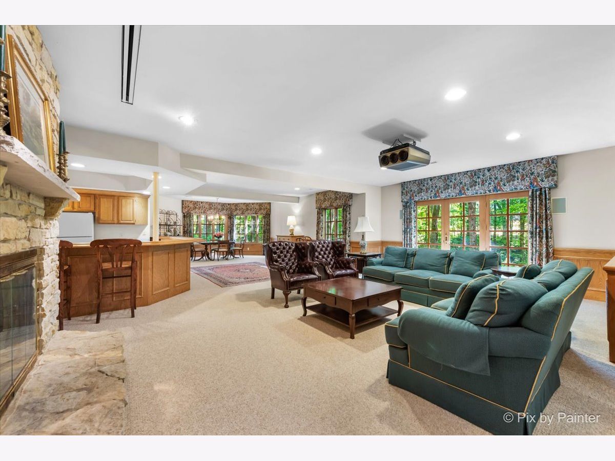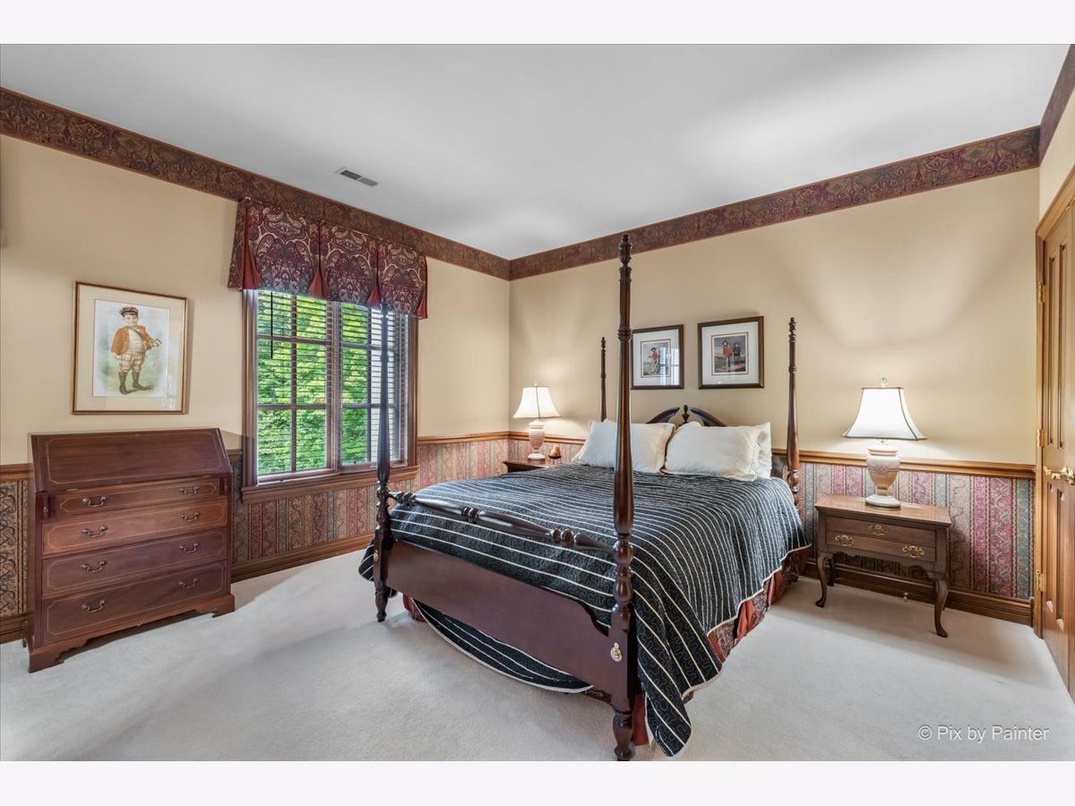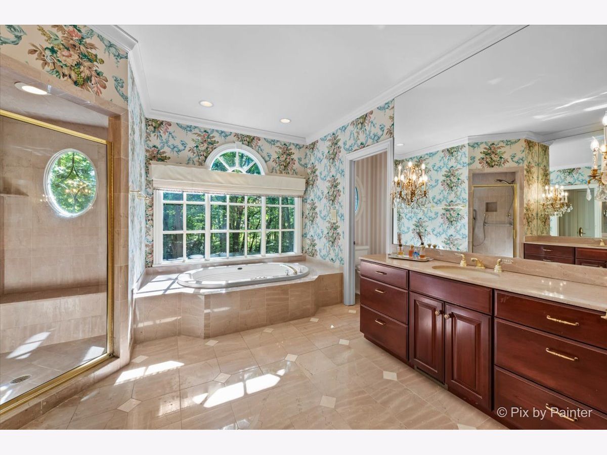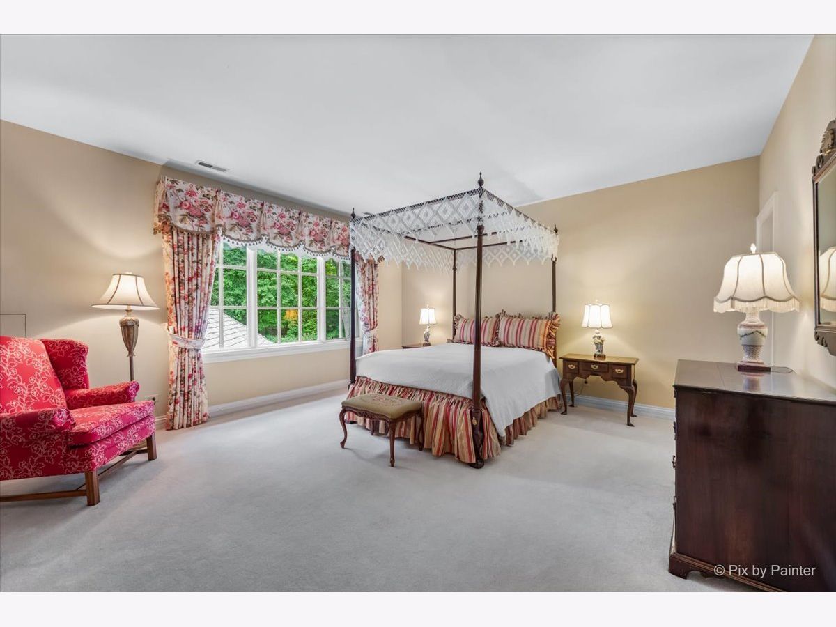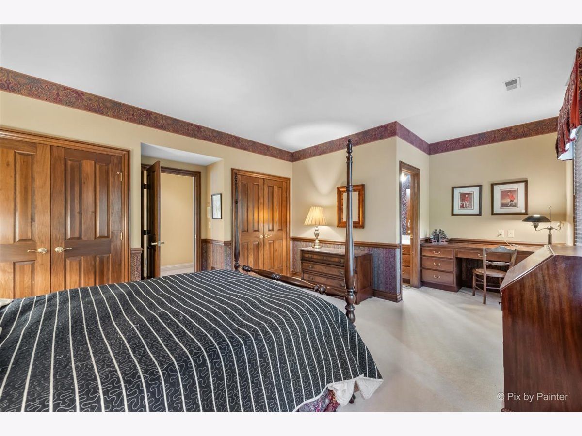 This exquisite Georgian estate, crafted by Harrison Construction in collaboration with architects Spitzmiller and Norris, is nestled on a remarkable 4.47-acre lot in the prestigious Woods of Fox Glen. Handpicked by Harrison, the visionary behind the community, this residence offers unparalleled privacy, enhanced by a picturesque 1/4-mile driveway that welcomes you into a serene landscape surrounded by mature trees. As you approach the home, the classic Georgian architecture captivates with its elegant brick facade, intricate cornices, stately columns, and finely detailed plinth bases. Step inside to a grand two-story foyer adorned with marble flooring, setting the tone for the stunning interior that showcases the hallmark features of high Georgian design, emphasizing symmetry and proportion. The home boasts nearly 10,000 square feet of luxurious living space, with ornate wood mouldings and trim throughout, soaring 10-foot ceilings on the main level, and two elegantly crafted staircases. The private library is a standout, featuring a coffered ceiling, rich cherry wood accents, and a mantel imported from England, complemented by custom built-in bookshelves. The formal dining room is designed for hosting, with floor-to-ceiling windows and a cozy fireplace, seamlessly connecting to the gourmet kitchen through tasteful dividing doors for effortless entertaining. The grand two-story living room exudes sophistication, showcasing herringbone wood floors, dramatic chandeliers, and a stunning array of windows that bathe the space in natural light. Three sets of French doors lead to a charming brick paver patio, perfect for outdoor gatherings. Culinary enthusiasts will delight in the gourmet kitchen, complete with expansive granite countertops, a custom pantry, 42-inch cherry cabinets, and a peninsula with a prep sink. A cozy family room adjacent to the kitchen features a custom skylight inspired by Victor Hugo's Parisian home, along with bay windows and a fireplace framed by built-in shelves. The tranquil main-level master suite offers a serene retreat, complete with a sitting area, abundant natural light, his and hers walk-in closets, and a luxurious ensuite bath featuring dual vanities, a whirlpool tub, and a separate shower. Upstairs, four generously sized bedrooms each boast private ensuite baths, while the walk-out basement offers additional living space, including a family room with a double-sided fireplace, a full kitchen, a game room, two bedrooms, and ample storage. Outdoors, nature lovers will find a paradise with expansive patios, lush greenspaces adjacent to scenic walking paths, and enchanting English gardens, perfect for peaceful strolls and relaxation. This estate combines luxury living with the beauty of nature, creating an unparalleled sanctuary. *Please do not enter the property without a confirmed appointment*