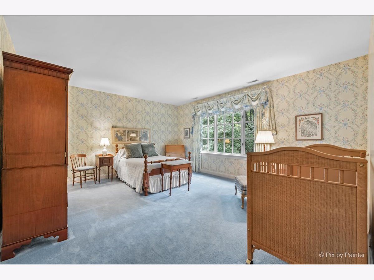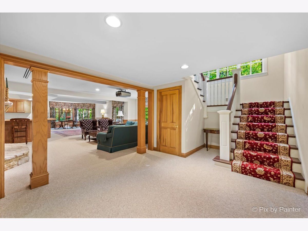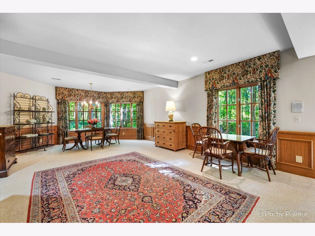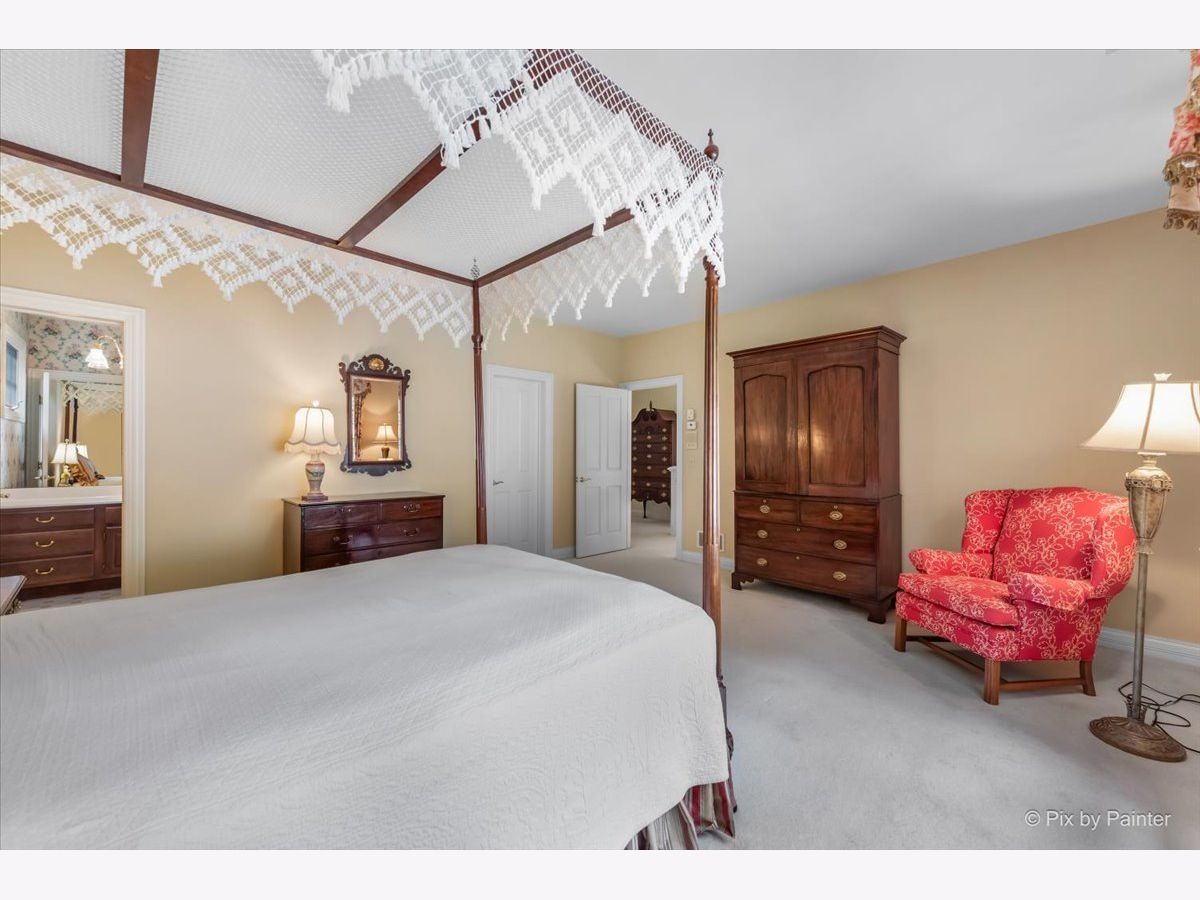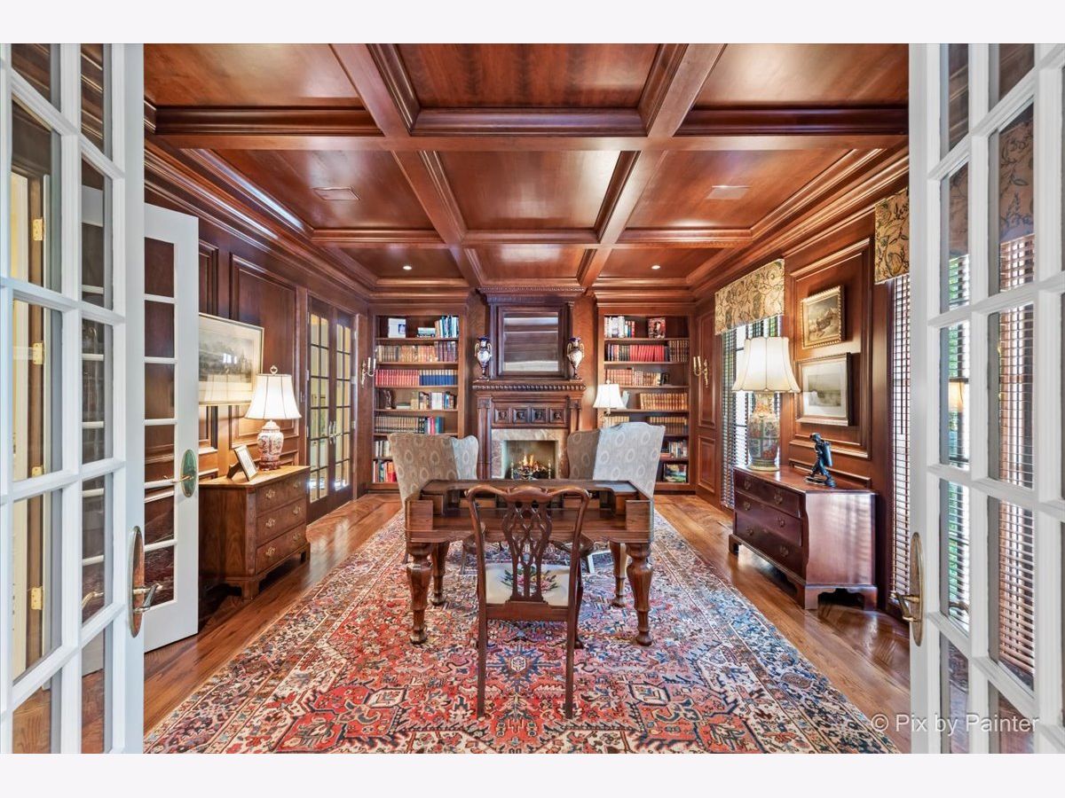 This exquisite Georgian estate, crafted by Harrison Construction in collaboration with architects Spitzmiller and Norris, is nestled on a remarkable 4.47-acre lot in the prestigious Woods of Fox Glen. Handpicked by Harrison, the visionary behind the community, this residence offers unparalleled privacy, enhanced by a picturesque 1/4-mile driveway that welcomes you into a serene landscape surrounded by mature trees. As you approach the home, the classic Georgian architecture captivates with its elegant brick facade, intricate cornices, stately columns, and finely detailed plinth bases. Step inside to a grand two-story foyer adorned with marble flooring, setting the tone for the stunning interior that showcases the hallmark features of high Georgian design, emphasizing symmetry and proportion. The home boasts nearly 10,000 square feet of luxurious living space, with ornate wood mouldings and trim throughout, soaring 10-foot ceilings on the main level, and two elegantly crafted staircases. The private library is a standout, featuring a coffered ceiling, rich cherry wood accents, and a mantel imported from England, complemented by custom built-in bookshelves. The formal dining room is designed for hosting, with floor-to-ceiling windows and a cozy fireplace, seamlessly connecting to the gourmet kitchen through tasteful dividing doors for effortless entertaining. The grand two-story living room exudes sophistication, showcasing herringbone wood floors, dramatic chandeliers, and a stunning array of windows that bathe the space in natural light. Three sets of French doors lead to a charming brick paver patio, perfect for outdoor gatherings. Culinary enthusiasts will delight in the gourmet kitchen, complete with expansive granite countertops, a custom pantry, 42-inch cherry cabinets, and a peninsula with a prep sink. A cozy family room adjacent to the kitchen features a custom skylight inspired by Victor Hugo's Parisian home, along with bay windows and a fireplace framed by built-in shelves. The tranquil main-level master suite offers a serene retreat, complete with a sitting area, abundant natural light, his and hers walk-in closets, and a luxurious ensuite bath featuring dual vanities, a whirlpool tub, and a separate shower. Upstairs, four generously sized bedrooms each boast private ensuite baths, while the walk-out basement offers additional living space, including a family room with a double-sided fireplace, a full kitchen, a game room, two bedrooms, and ample storage. Outdoors, nature lovers will find a paradise with expansive patios, lush greenspaces adjacent to scenic walking paths, and enchanting English gardens, perfect for peaceful strolls and relaxation. This estate combines luxury living with the beauty of nature, creating an unparalleled sanctuary. *Please do not enter the property without a confirmed appointment*