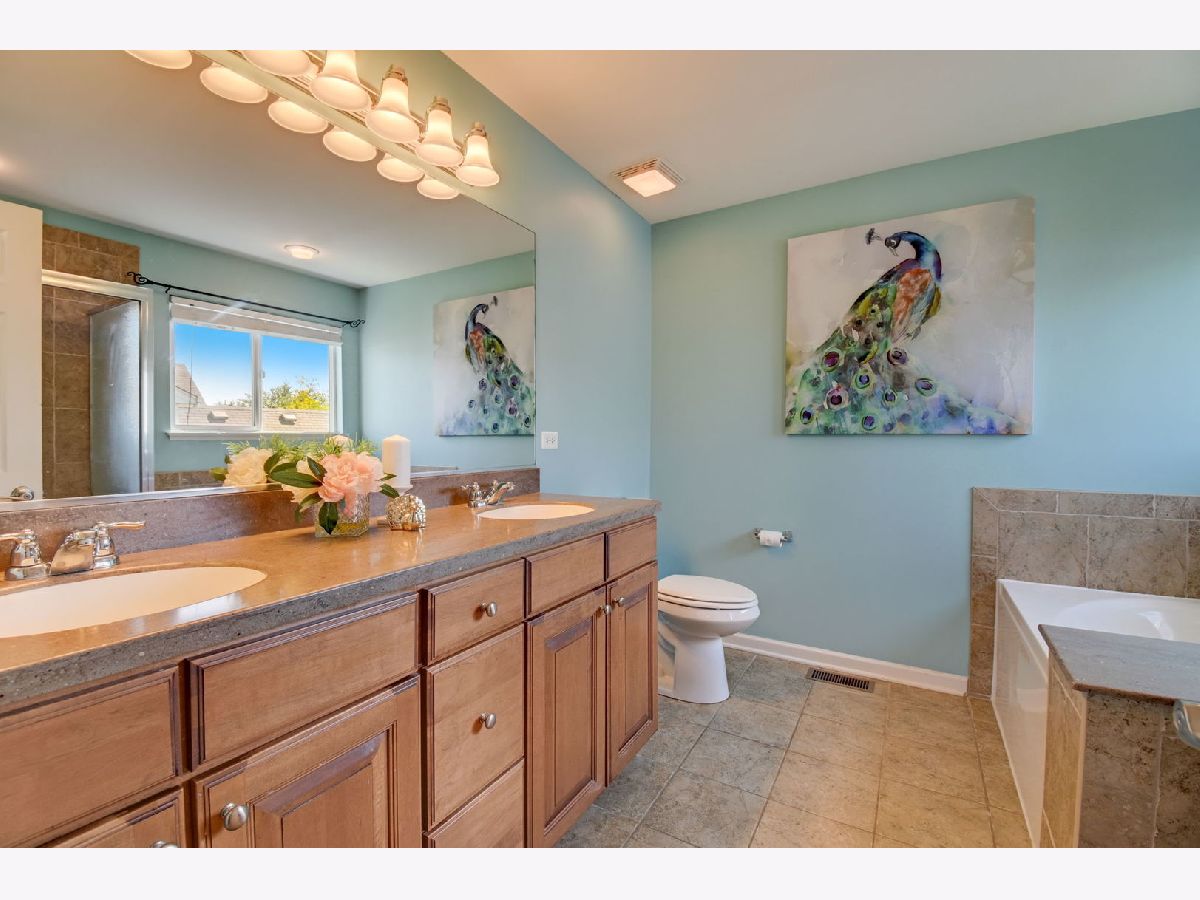Introducing this stunning 4 bedroom, 2.5 bathroom two-story home that effortlessly combines comfort and style. As you step inside, you'll be greeted by a spacious living room, perfect for gatherings and relaxation. The updated kitchen is a true standout, featuring sleek stainless steel appliances, a convenient center island, and an inviting eat-in area that opens up to a charming backyard deck - a fantastic spot for outdoor entertaining. The kitchen's open design seamlessly connects to the family room, where a cozy fireplace and accent wall create a warm and inviting atmosphere. This space is ideal for cozy evenings with loved ones or for hosting friends and family. With four well-appointed bedrooms, including a spacious master suite, there's plenty of room for everyone to unwind. The master suite boasts a private full bath, offering a serene retreat within your own home. The remaining bedrooms share a full hallway bath, ensuring convenience for all. Additional features of this home include a finished basement, perfect for a variety of uses, and ample storage space to keep your belongings organized. The location couldn't be better, situated in a great neighborhood with a park/playground, basketball court and easy access to forest preserve, offering easy access to amenities plus a great sense of community!