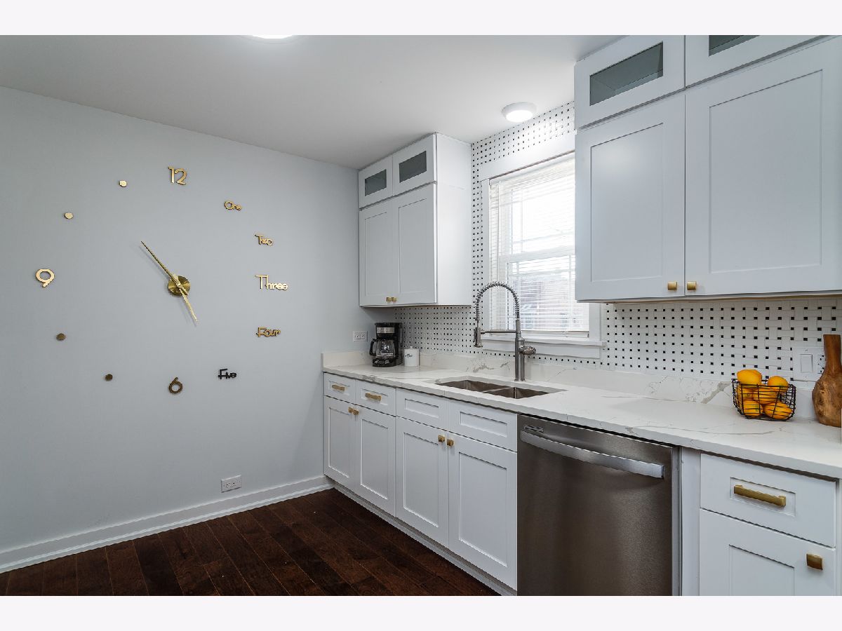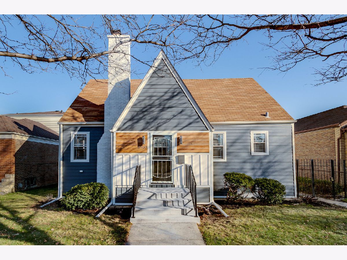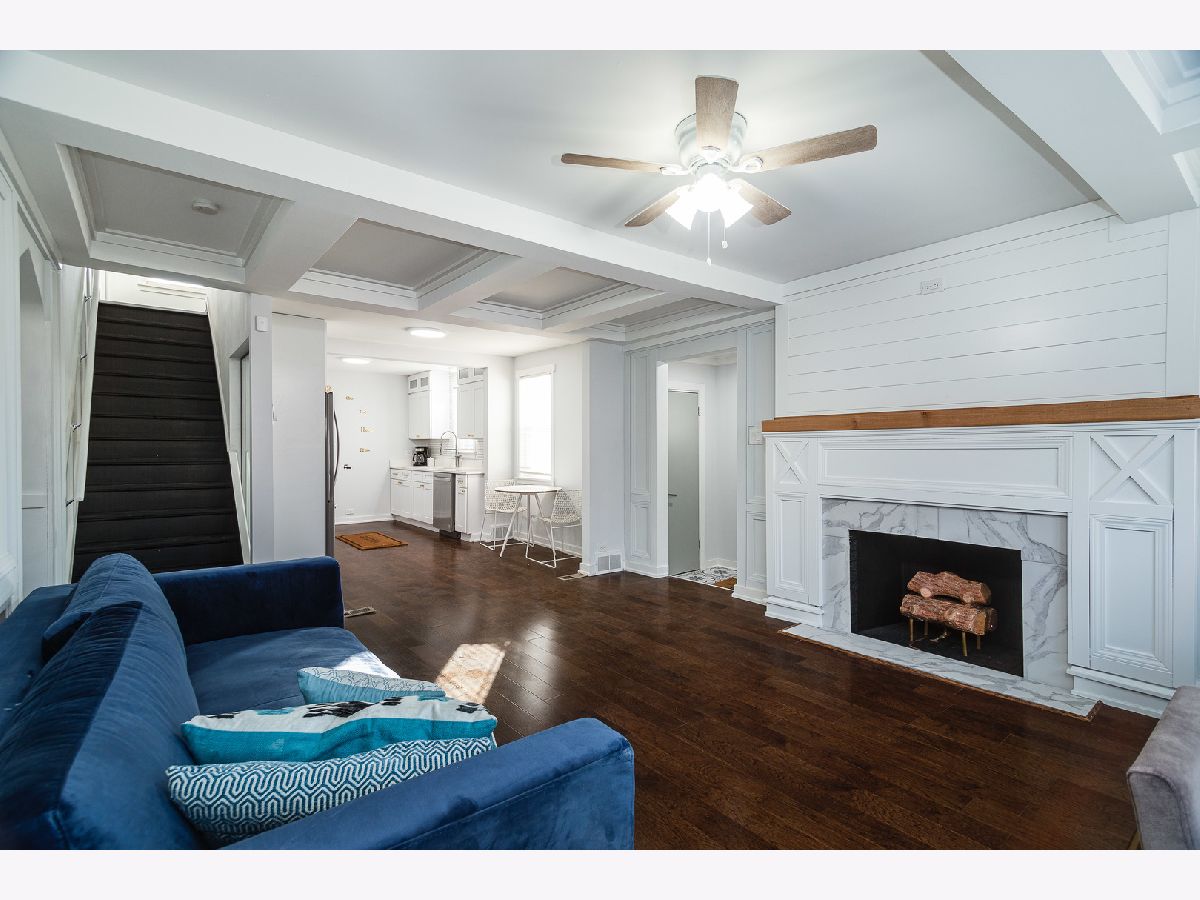 Bright, fresh, rehabbed cottage with tons of character inside and out! Great curb appeal with Hardie lap siding + board & batten detail and new vinyl windows. On trend interior with custom design features throughout. Welcoming living room highlighted by impressive millwork, coffered ceilings, and a wood burning fireplace with custom mantle and surround. All new kitchen features white shaker cabinetry with transoms, quartz countertops, basket weave tile backsplash, modern brass hardware, and stainless Whirlpool appliances. Two main level bedrooms + full bath with tub. Upper level includes master bedroom with private ensuite bath + guest bedroom. Finished lower level features large recreation space, half bath, laundry hookup with cabinetry and sink, and utility room with new water heater. Great outdoor space! Large backyard with detached two-car garage. Easy access to I90/94/57, public transportation and Lake Michigan! Around the corner from Owens Park featuring a field house with gymnasium and fitness center + ball diamonds, a multi-purpose field, tennis courts, an Olympic-themed playground, and picnic groves. Close proximity to restaurants, shopping, conveniences and more!