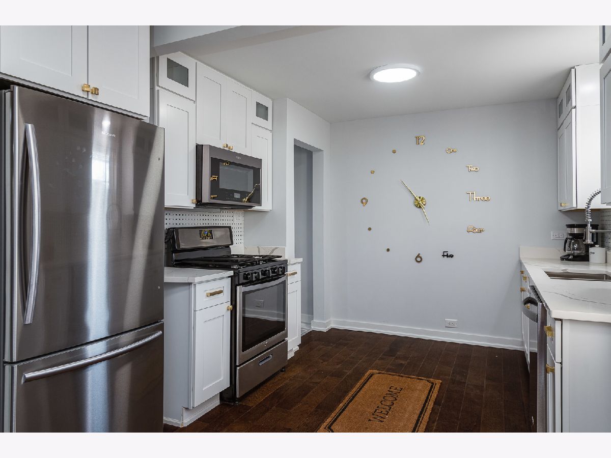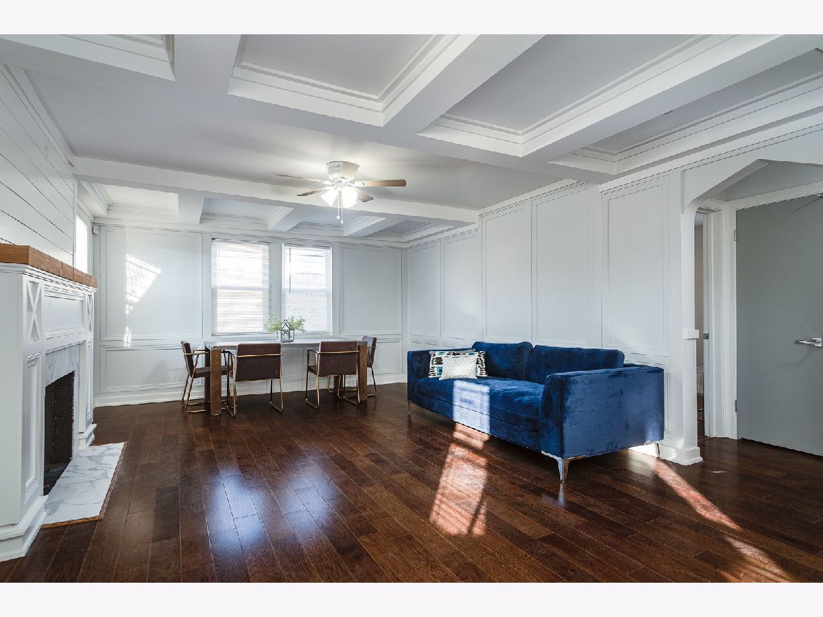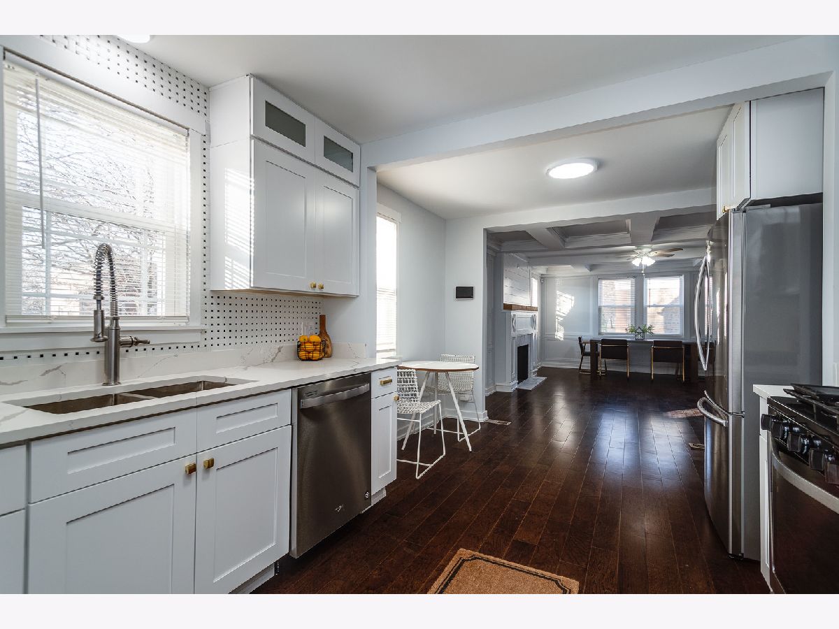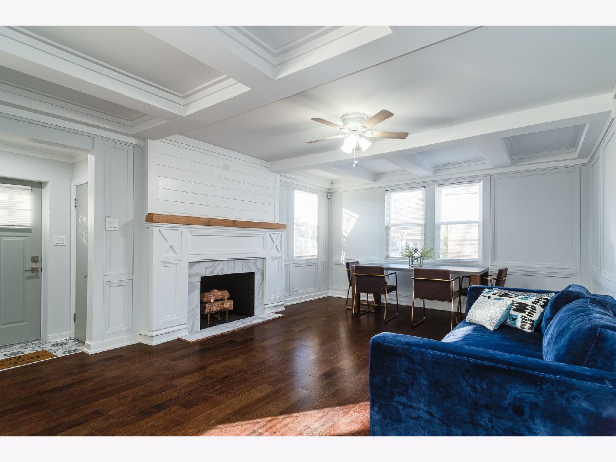 Bright, fresh, rehabbed cottage with tons of character inside and out! Great curb appeal with Hardie lap siding + board & batten detail and new vinyl windows. On trend interior with custom design features throughout. Welcoming living room highlighted by impressive millwork, coffered ceilings, and a wood burning fireplace with custom mantle and surround. All new kitchen features white shaker cabinetry with transoms, quartz countertops, basket weave tile backsplash, modern brass hardware, and stainless Whirlpool appliances. Two main level bedrooms + full bath with tub. Upper level includes master bedroom with private ensuite bath + guest bedroom. Finished lower level features large recreation space, half bath, laundry hookup with cabinetry and sink, and utility room with new water heater. Great outdoor space! Large backyard with detached two-car garage. Easy access to I90/94/57, public transportation and Lake Michigan! Around the corner from Owens Park featuring a field house with gymnasium and fitness center + ball diamonds, a multi-purpose field, tennis courts, an Olympic-themed playground, and picnic groves. Close proximity to restaurants, shopping, conveniences and more!