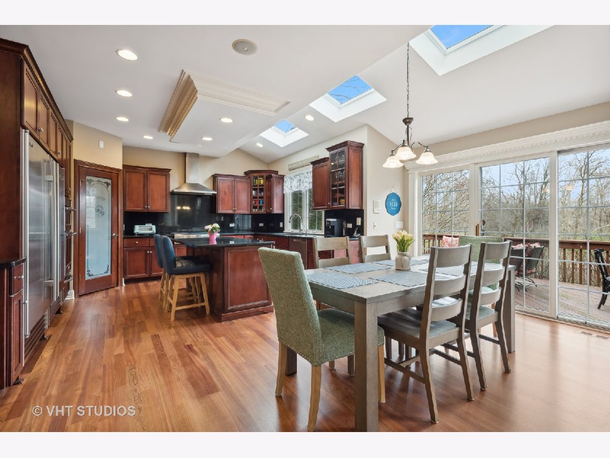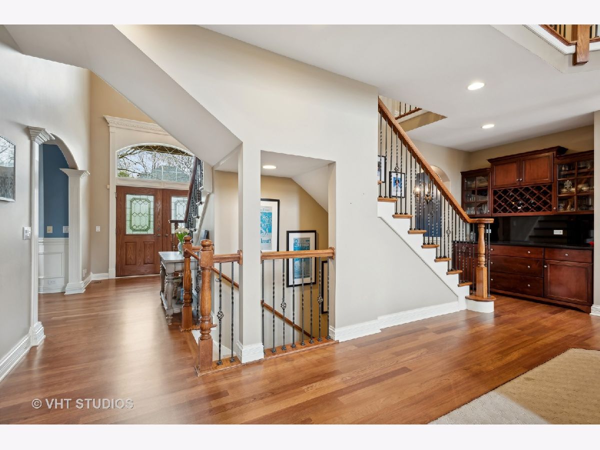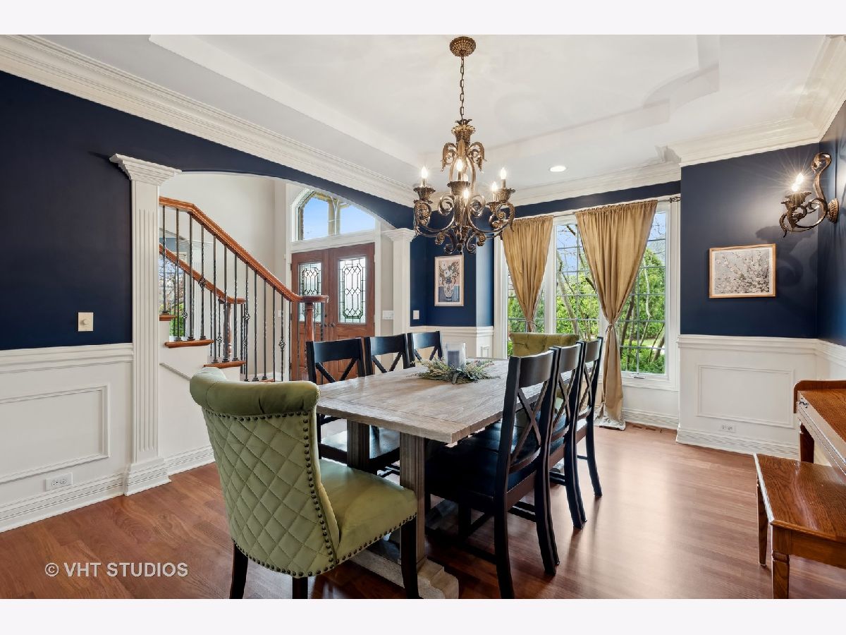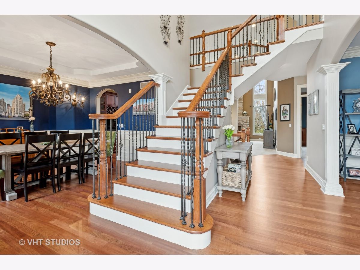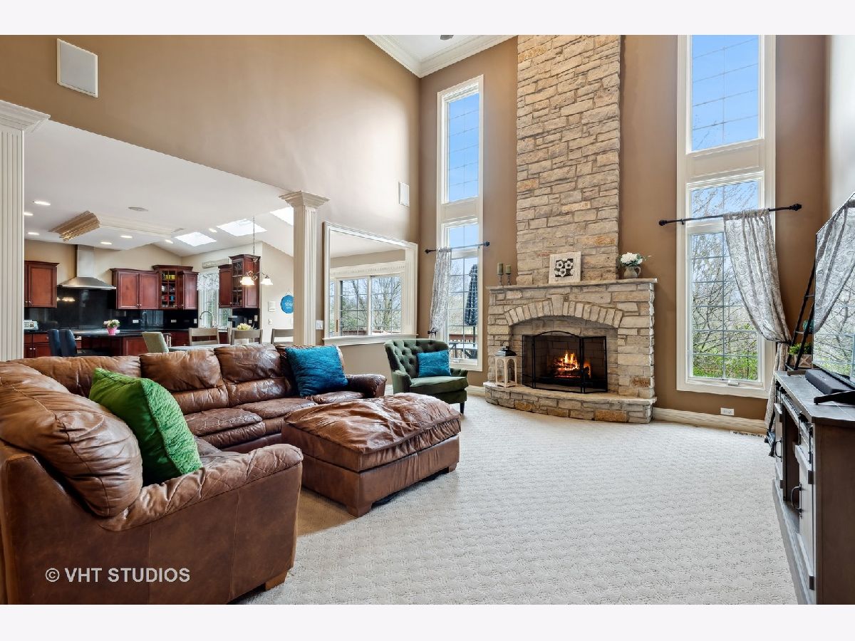 Stunning home in the Reserve of Thornwood in St. Charles School District. Gorgeous two story foyer (with remote controlled chandelier) and family room with stone fireplace. Custom millwork throughout. Large eat in kitchen with cherry cabinets, walk in pantry, high end appliances including Sub Zero refrigerator and freezer. Convenient first floor office with built in bookcases. Newly refinished hardwood floors on first floor. Second floor has spacious primary bedroom with two sided gas fireplace between bedroom and bathroom, and huge walk-in closet. Second bedroom has cathedral ceiling and an attached bathroom and walk-in closet. Bedrooms 3 and 4 are joined by a jack-and-jill bathroom. Finished English basement has tons of natural light, wood burning fireplace, a large recreation room, library, bedroom and a full bathroom. Three car side load garage. Radon mitigation system already installed. Reserve Court is a semi private road of custom homes with a single entrance located just outside of the main subdivision. Enjoy all that Thornwood has to offer including the community clubhouse, pool, and sports core with basketball, tennis, and volleyball courts, as well as miles of biking and walking trails.