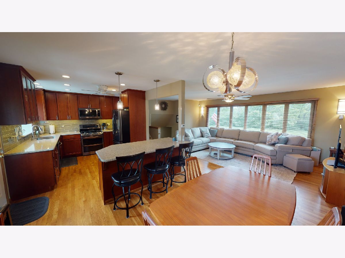 You can't ask for a better front row view of the forest preserve. My sellers will miss the frequent deer viewings & seasonal changes. Enjoy cooking in the newly remodeled kitchen featuring a large island with seating area & convenient drawer storage, cherry cabinets, quartz counter tops, glass tile backsplash & a garden window. The combo dining room & open concept living space has new recessed lighting & nicely finished hardwood floors throughout. Generous size bedrooms & 2 full baths allow for a large family. 4th bedroom is great for office or in law set up, with a full bath and new shower, just outside the door. A family room with new laminate flooring pours into the laundry/storage/HVAC rooms to complete the lower level. 2 car garage is attached with a tiled floor and direct entry into the home. Nicely landscaped, fully fenced side yard with patio to entertain. New tear off roof was done in 2020. Enjoy nearby shopping & dining at new Sawmill Station & new Harrer Park pool. Easy access to 94, I294 & Metra train station.
