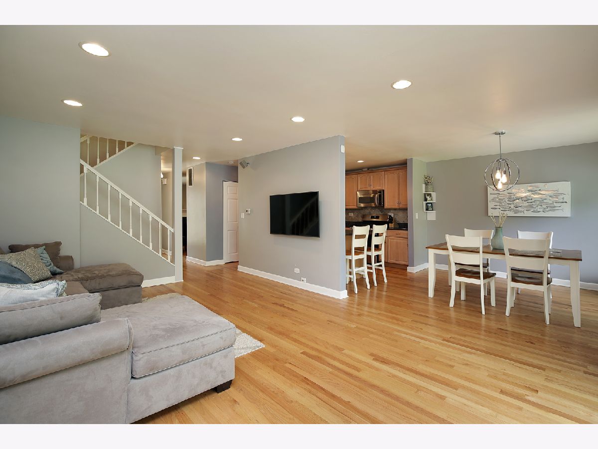 This one eliminates the competition! Sleek, sophisticated & beautifully renovated. Set on a prime location with private wooded view from the extended patio. From the moment you enter this spacious townhome you will be impressed. Beautiful hardwood floor throughout the entire first floor. Open, updated kitchen with 42' cabinets and stainless-steel appliances. Family room with fireplace. Primary bedroom features updated bath and walk-in closet. Additional 3 bedrooms and updated hall bath. Large finished basement with great recreation room. Many recent improvements in the past 4 years: All new windows and sliding door, electrical updated. Nationally ranked Stevenson High School. Enjoy maintenance free living from this great development. Brand new tot park, park, tennis and clubhouse. Exclude washer/dryer and light fixture above dining room table.