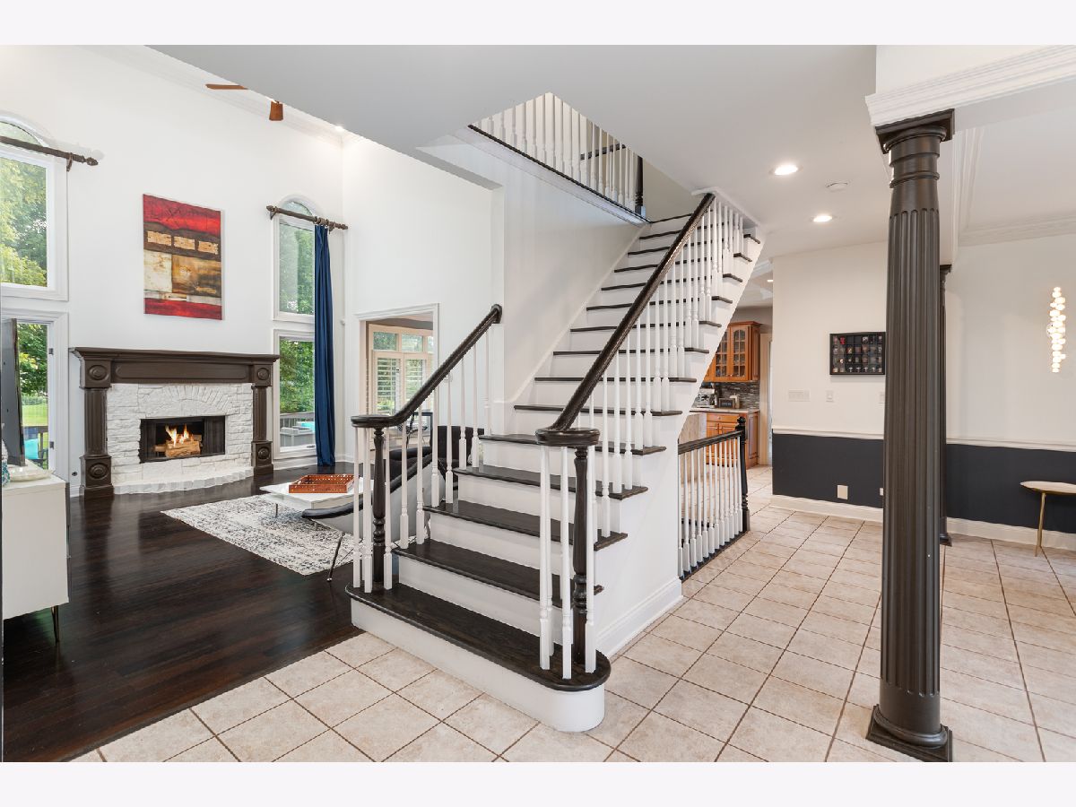 Meticulously maintained cul de sac home in the sought after Stonebridge neighborhood. This gorgeous home has a beautiful front walk way surrounded by mature trees with great curb appeal. Looking for a contemporary feel this home has a fantastic open floor plan with tall ceiling heights on all levels and a two story foyer and family room- a great home to entertain. Wait until you see the recently renovated kitchen! Thermador & Bosch premium appliances including two dishwashers, steam oven, wine fridge, range and a fantastic over sized island with waterfall edges. The windows are a showstopper with floor to ceiling dramatic views of the professional landscaped front and back yards. Lots of privacy with mature trees surrounding this beautiful property. Hardwood has recently been refinished with a dark stain that looks beautiful with the spindles in the dramatic staircase. Fifth bedroom with full bath is perfectly located on the first floor and has a wonderful screened in porch area that opens to the beautiful backyard. Great for in-laws or how its currently being used as a first floor office. Two fireplaces perfectly located in the living room & family room The laundry is also located on the first floor within the large mudroom that has a service door to the side entrance and three car garage. You will not be disappointed when you see the layout on the second floor. Primary suite is private and spacious and opens up to a recently renovated master bath with on trend fixtures, lights and a double vanity with a tiled feature wall. Separate shower/tub and walk in closet that has natural light and built in's. The ensuite has a beautiful updated bath and great closet space. All bedrooms have nice ceiling features and one includes a neat loft space perfect as a reading nook or play space. The finished basement is nice and open with a gorgeous concrete marble finish that sets the stage for a great entertaining spot. Full bar with fridge and sink open up to a great area with a projector for watching your favorite movies. Another big open space could easily be used as a workout room. The storage spaces are amazing in this home. So many updates include, flooring, remodeled kitchen, refinished and painted deck, basement floor, sump pump, battery back-up, roof, gutters and back elevation window sashes. The list goes on and on.... You will be impressed with everything that has been done. Total living square footage totals 4550! You can't beat the location with award winning schools and the popular clubhouse within this fantastic subdivision. WELCOME HOME!