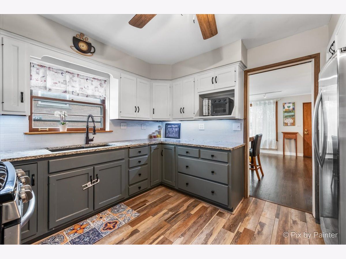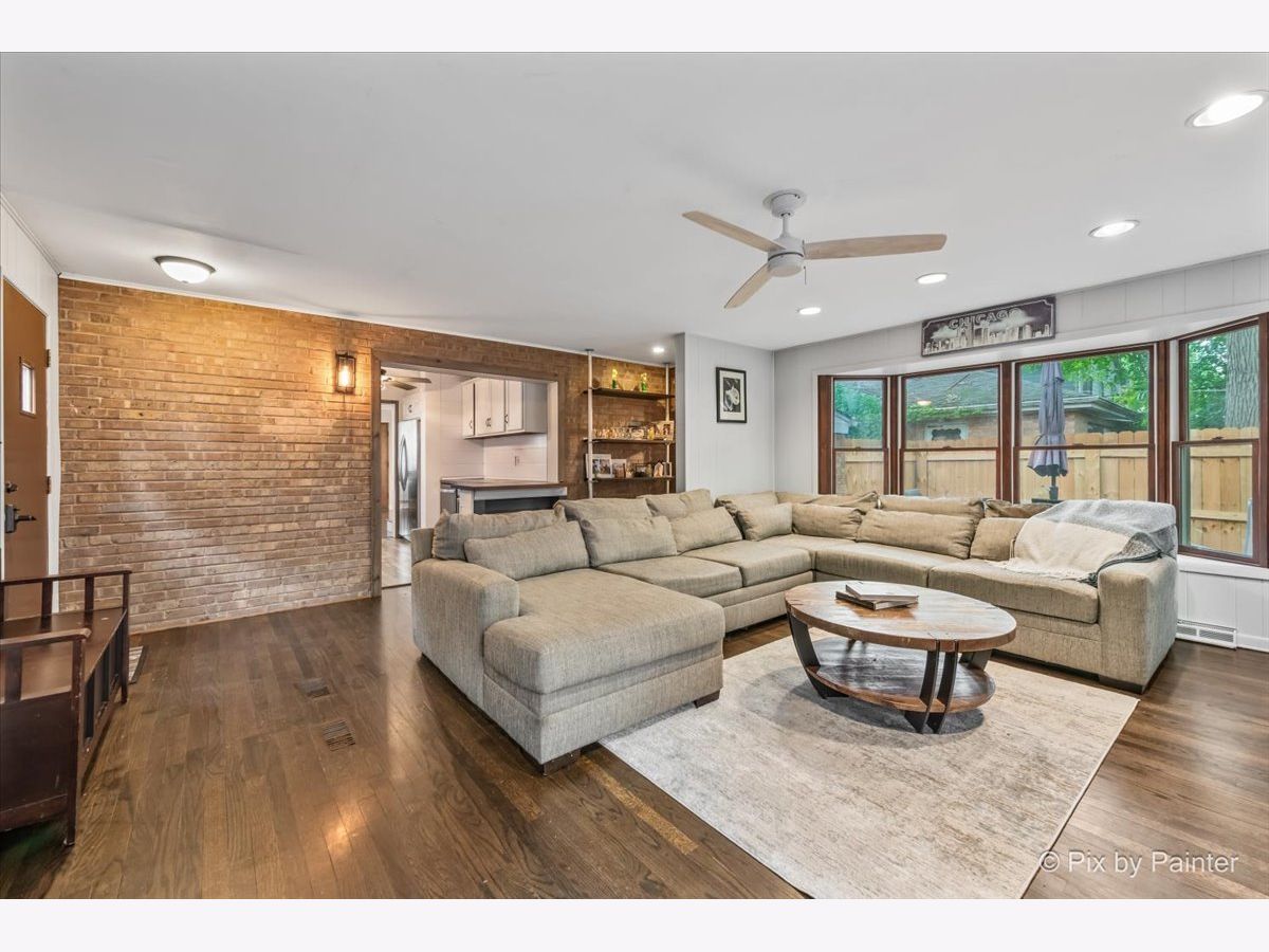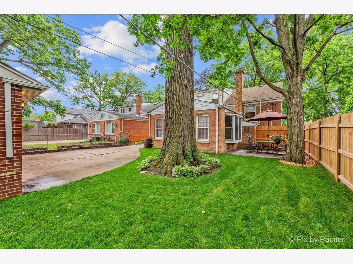 Tucked alongside the peaceful beauty of Linne Woods, this brick charmer surprises at every turn with its blend of warmth, style, and unexpected space. Step through the front door into a welcoming living and dining area with beautifully refinished chocolate-stained hardwood floors that add rich character throughout the main level. The updated kitchen is a standout, featuring sleek stainless steel appliances, a stylish new backsplash, new floors, granite and custom butcher block countertops-perfect for everyday living and entertaining. Discover the true heart of the space: a spacious family room filled with natural light. Anchored by a wood-burning fireplace with a brick facade and a handsome wooden mantel, this room is the perfect place to relax or entertain. An expansive bay window adds charm and frames views of the freshly sodded, graded backyard (2025), complete with a brand-new fence (2024). Upstairs offers two comfortable bedrooms and a full bath, while at the top level you'll find a private retreat: the spacious primary suite with a newly renovated en-suite bath (2021) complete with a walk-in shower and double vanity. Closet space is generous throughout the home including the primary with a walk-up attic space great, for any purpose! Just some of many additional updates include high-efficiency central air and furnace (2023), water heater (2023), new carpet upstairs (2021), and in the basement (2022). The finished basement offers versatile bonus space-perfect for a home office, playroom, or media room. The utility room/laundry room has ample storage with a new washer and dryer (2025). Outside find the lush green yard and new brick patio that makes outdoor living easy and enjoyable. The expansive detached garage comfortably fits two vehicles with room to spare, offering the flexibility for additional storage, seasonal gear, or even a workshop for your next passion project. Located within the sought-after Park View Elementary and Niles West High School districts, this home offers not just charm and space, but thoughtful updates that make it truly move-in ready. Don't miss your chance to make this Morton Grove gem your own!